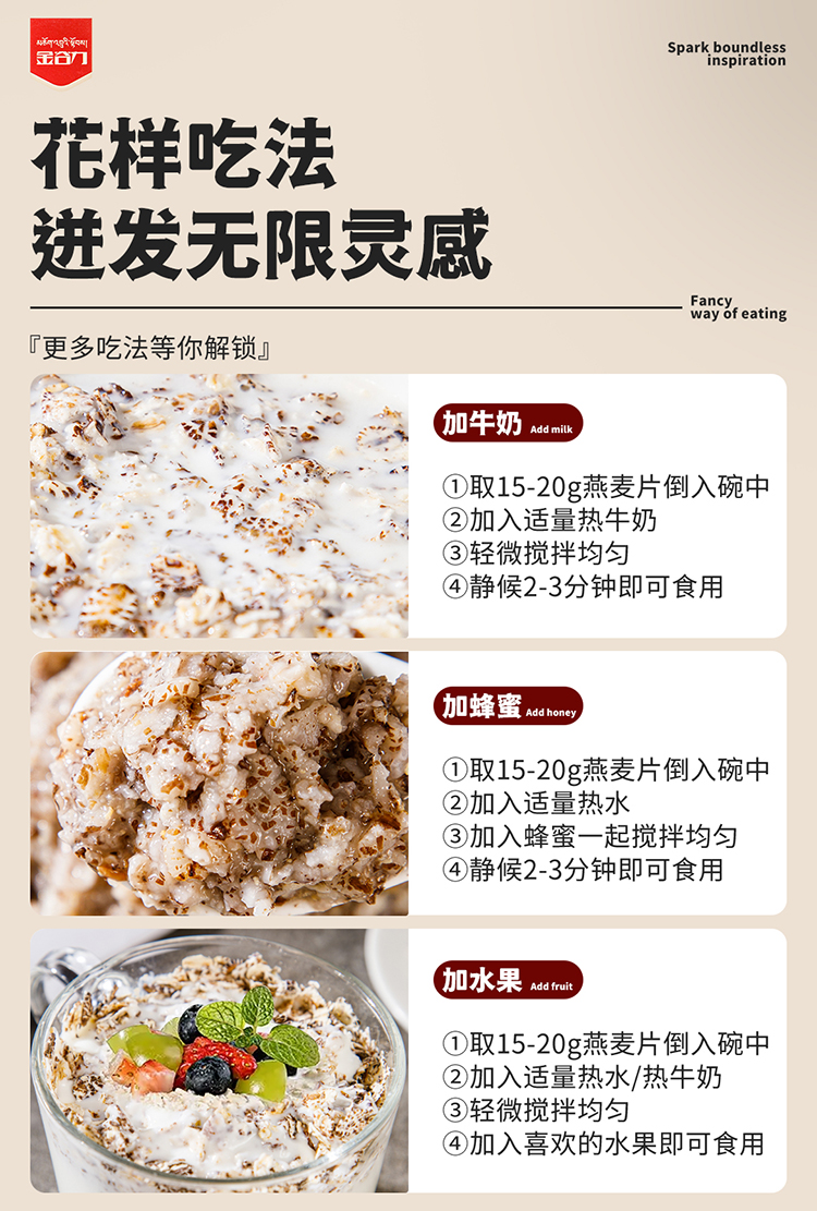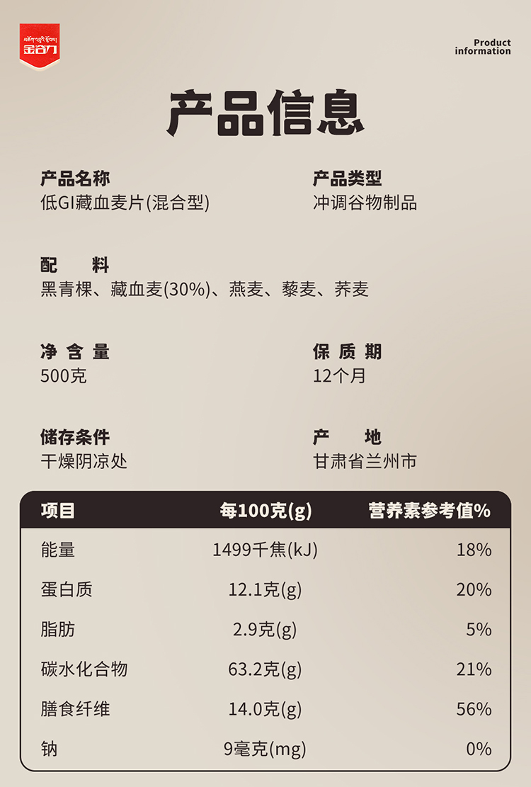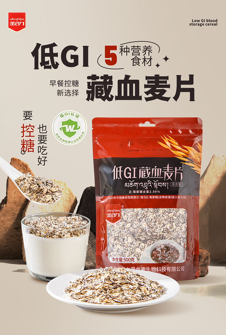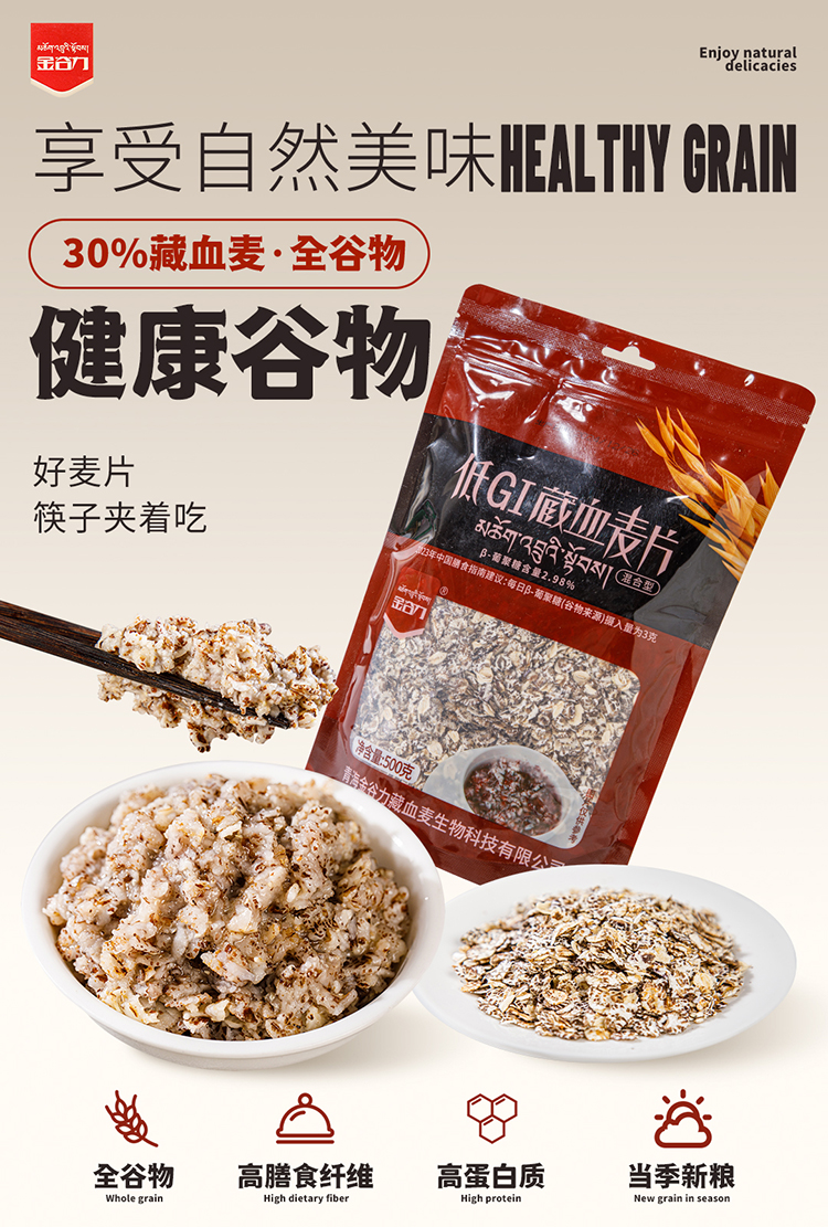 金谷力低GI藏血麦片富含膳食纤维代餐冲泡黑青稞荞麦粗粮麦片500g