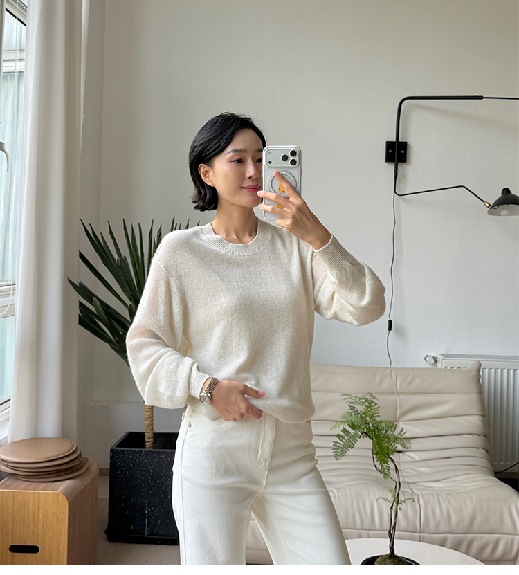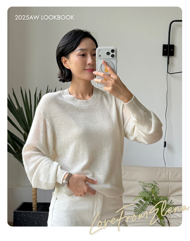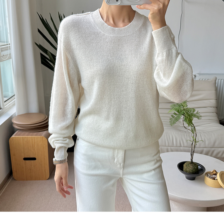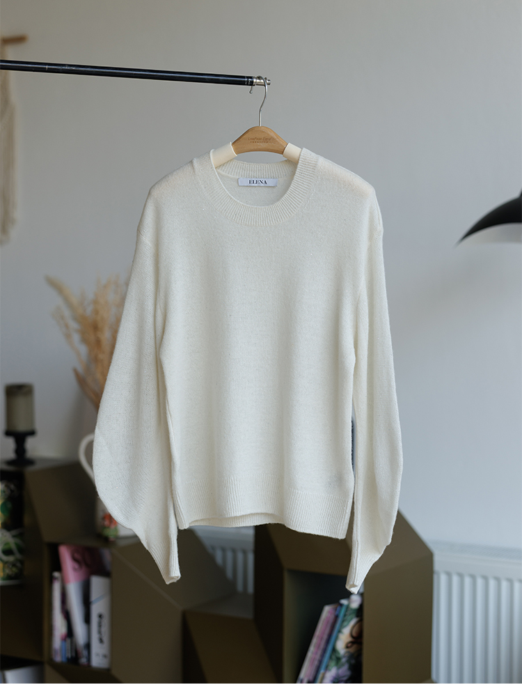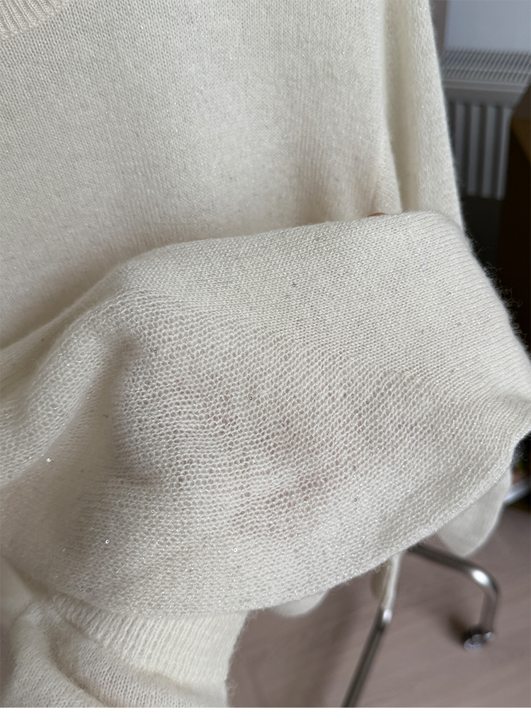 星河亮片 全羊绒弯刀袖 针织圆领毛衣