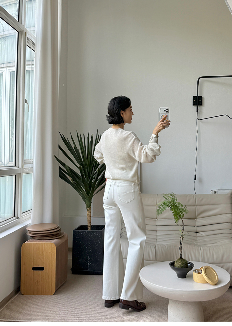 高腰阔腿牛仔裤