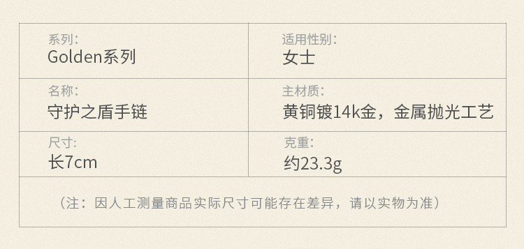 【歌手李佳薇&演员周放同款】Golden黄金系列|守护之盾手链
