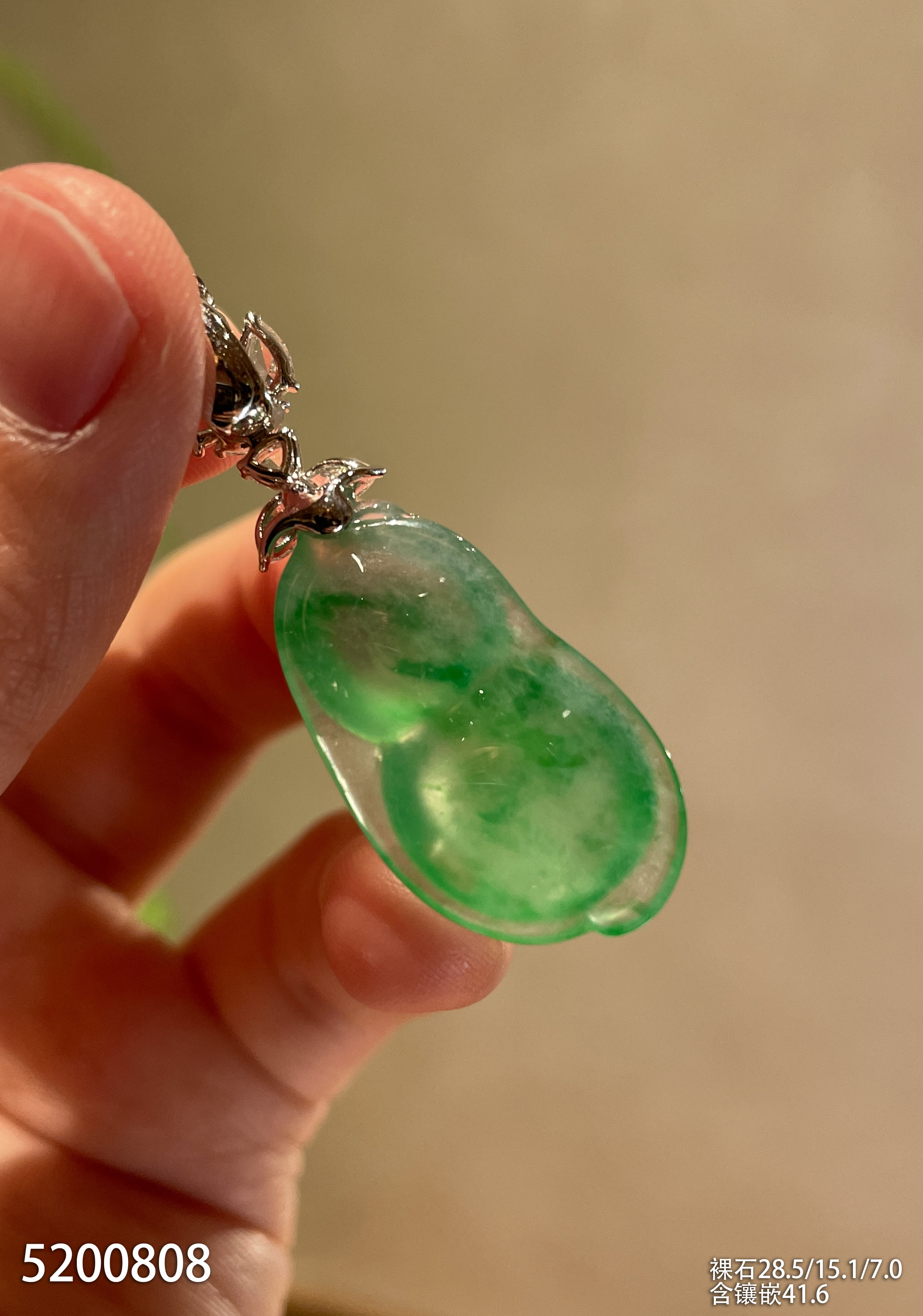 高冰种飘翠福豆吊坠【5200808】具体价格微信咨询