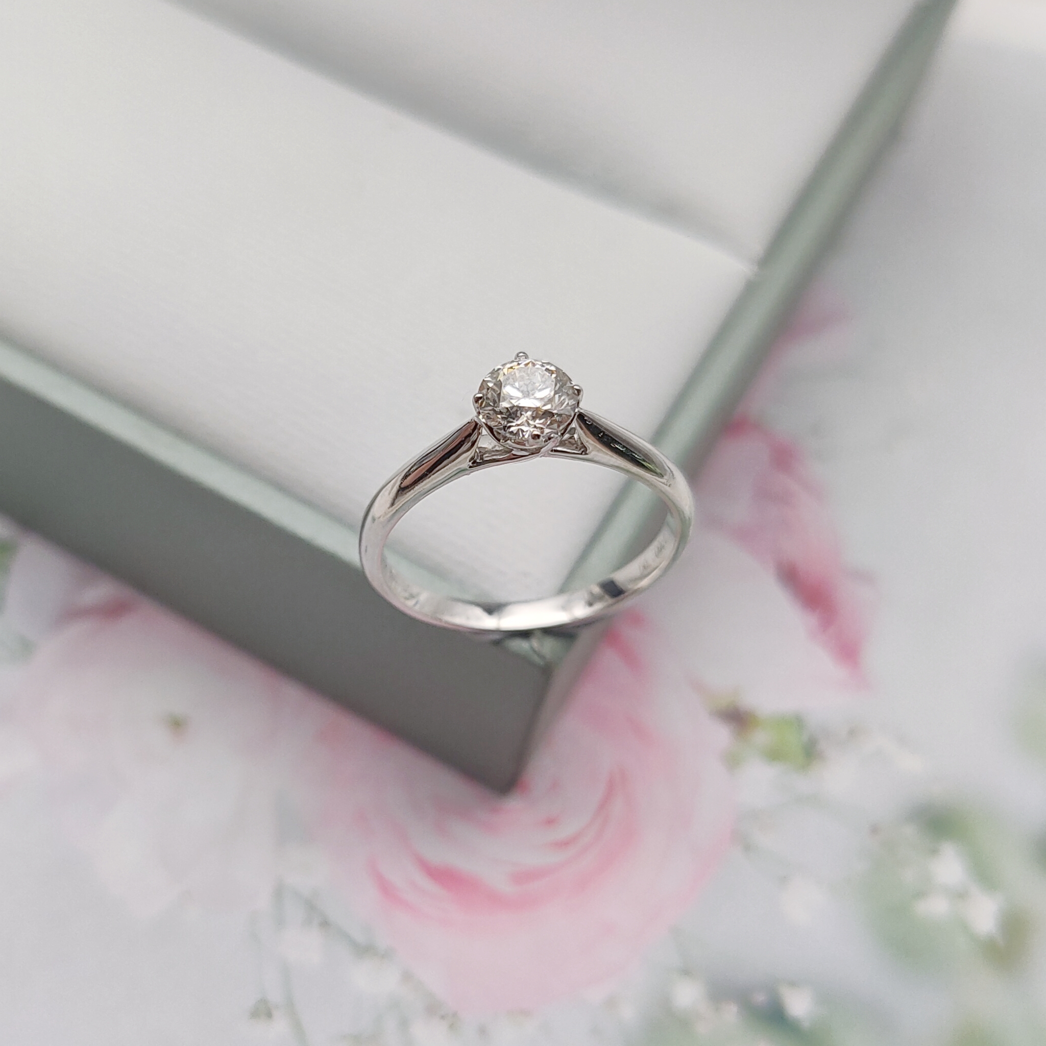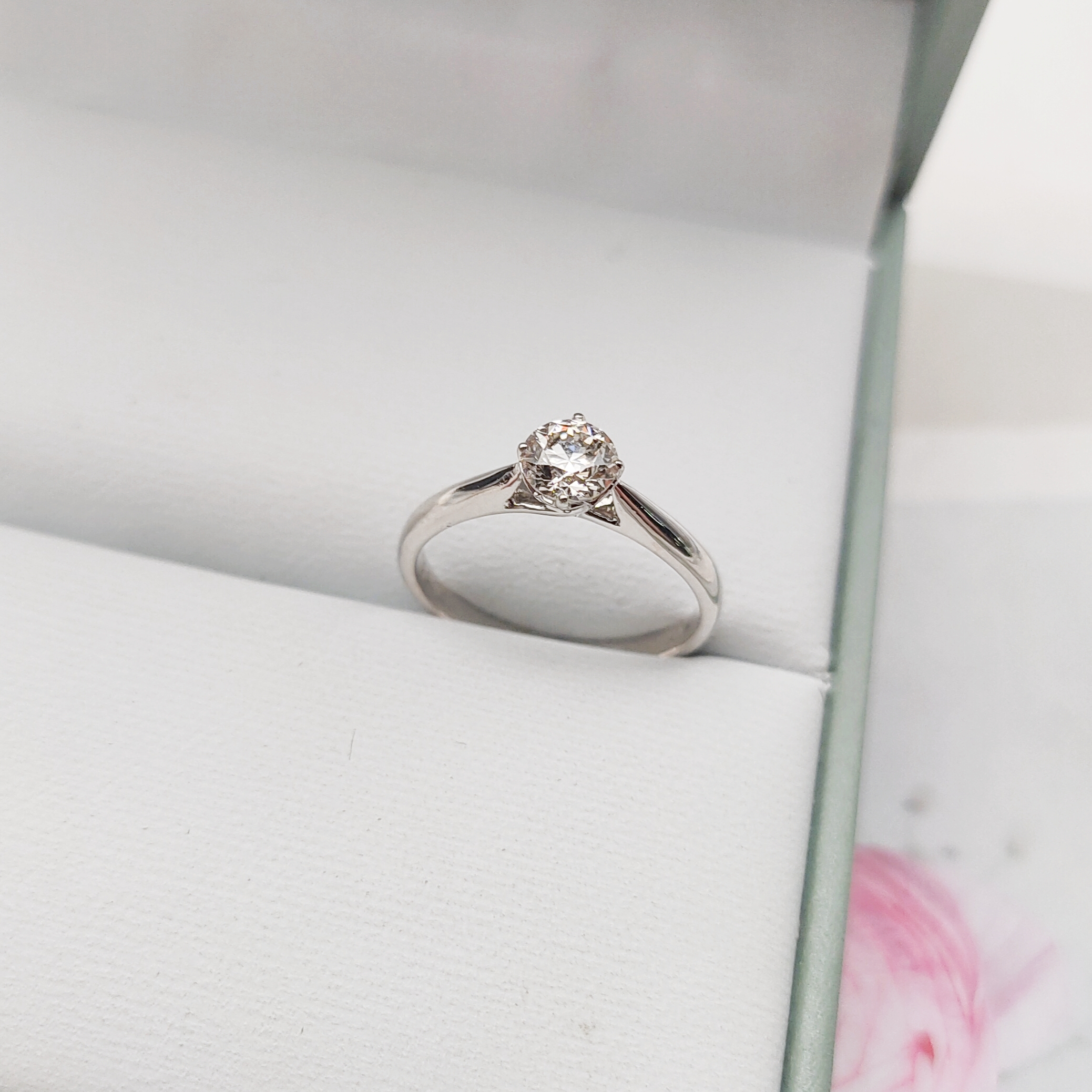 18K钻石戒指,金重:2.36克,主石:0.52ct,颜色:H,净度:SI, 圈口:12#,火彩一流,耀眼夺目, 经典百搭 , 超级好看,现货超低价