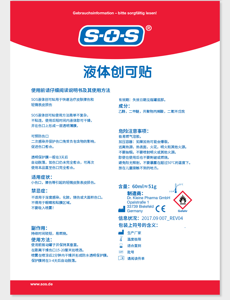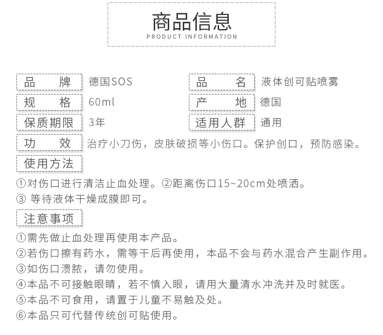 德国SOS液体创可贴凝胶隐形喷雾60ml