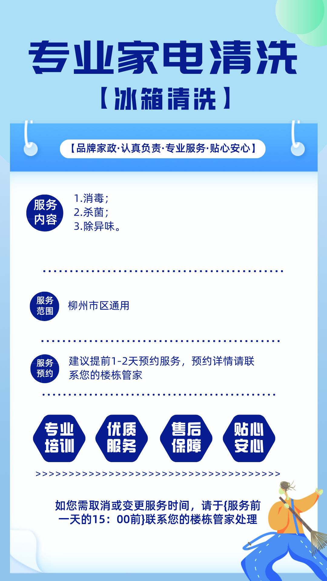 服务说明:临近春节期间库存较满,请提前安排您的保洁服务,若因库存问题导致无法服务,请您谅解!