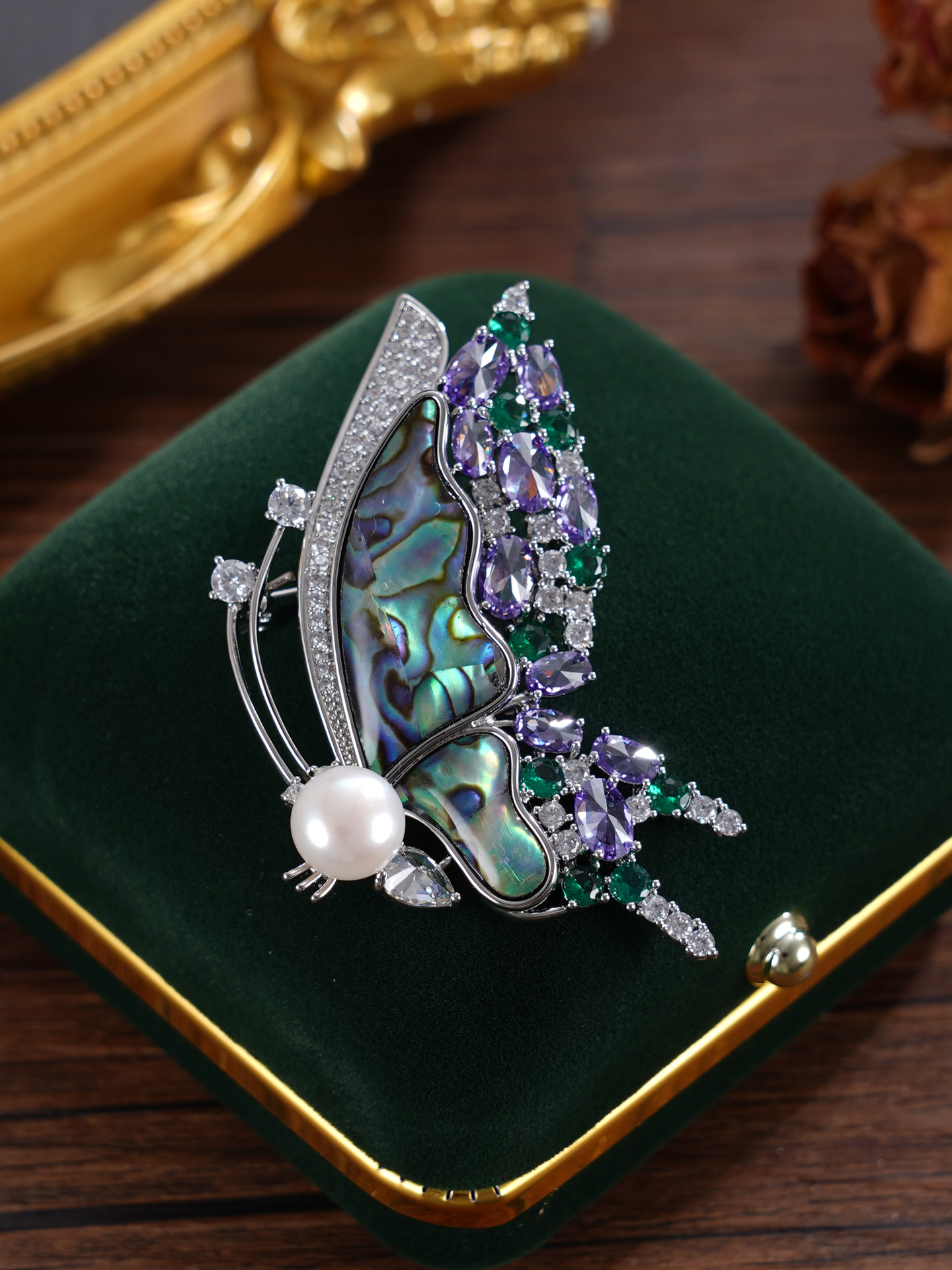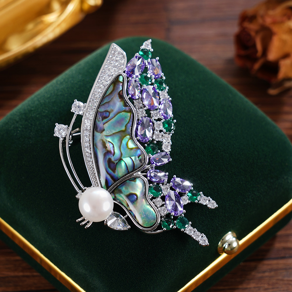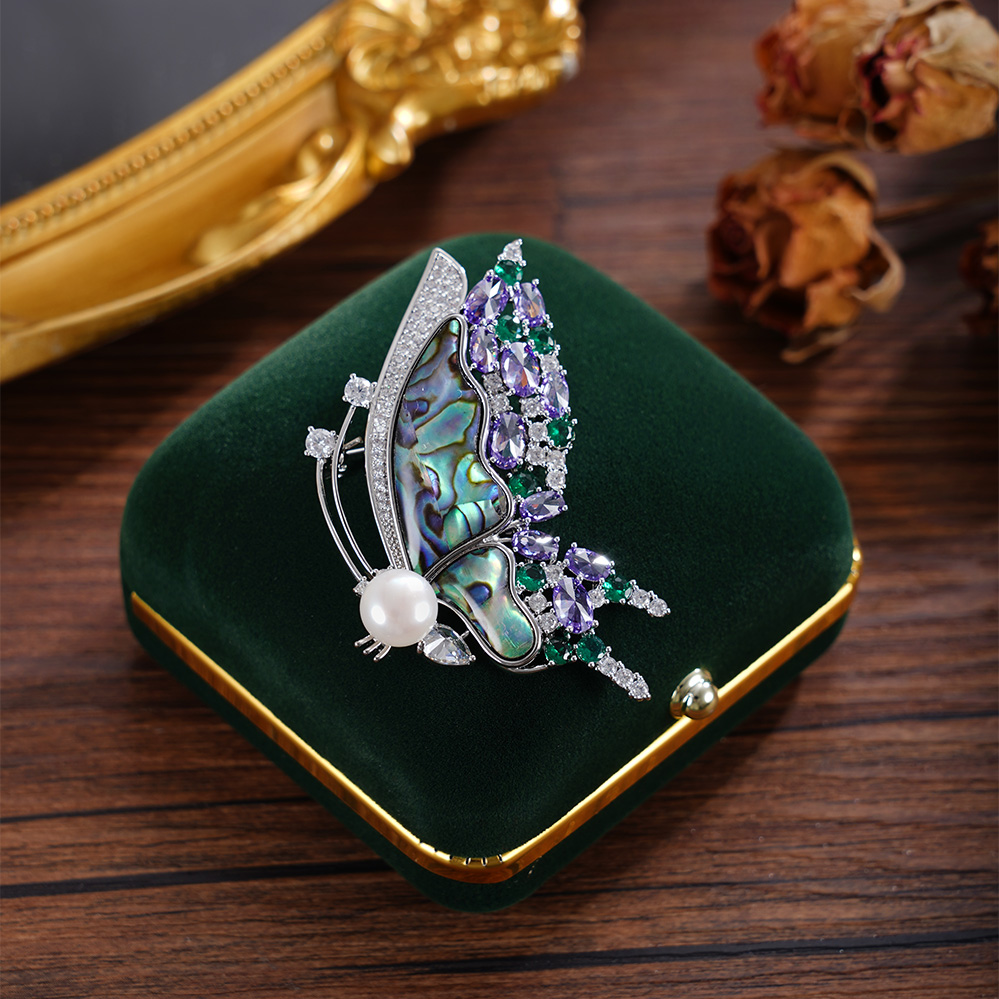 子佩集【海蝶翩跹】珍珠惜王妃胸针【XXXZ242】8mm珠螺钿蝴蝶2601