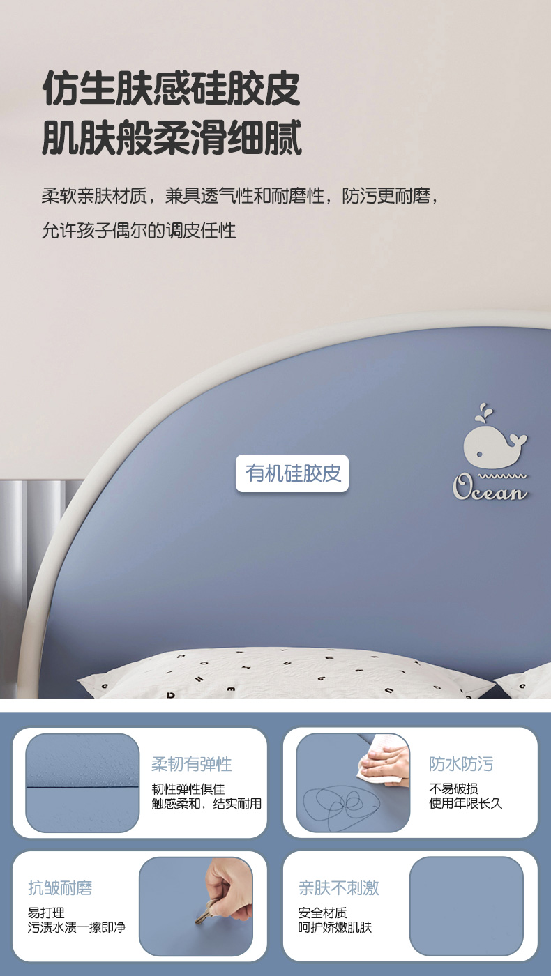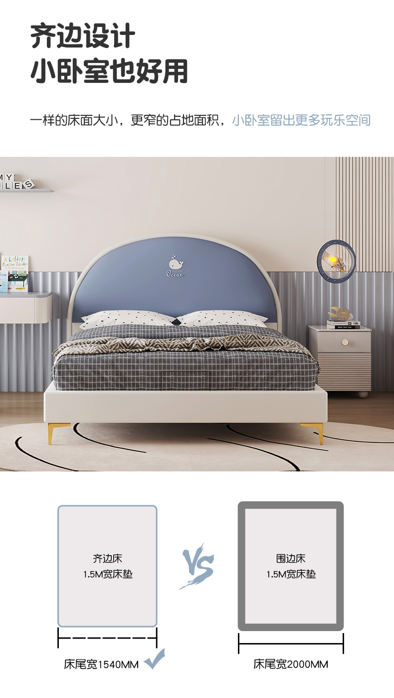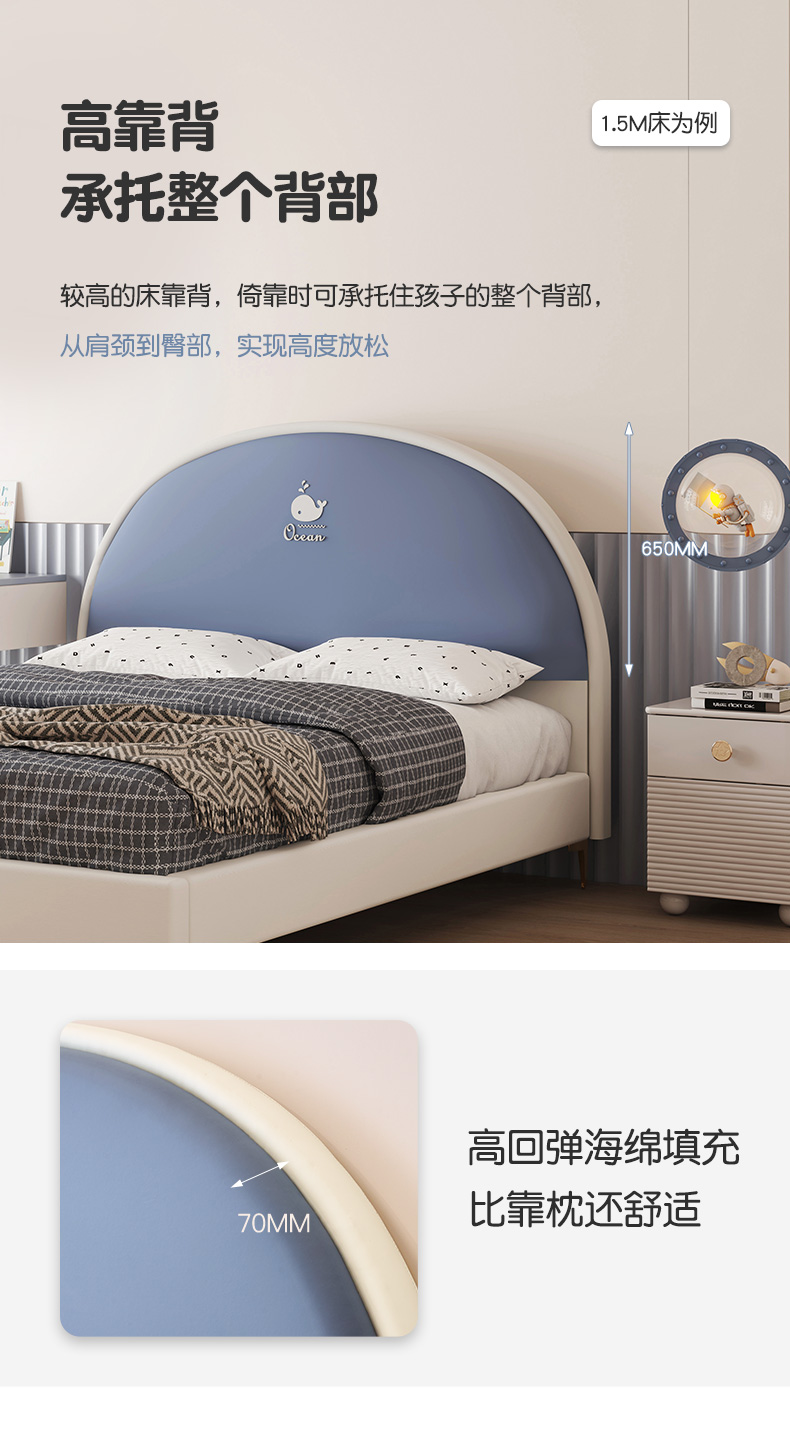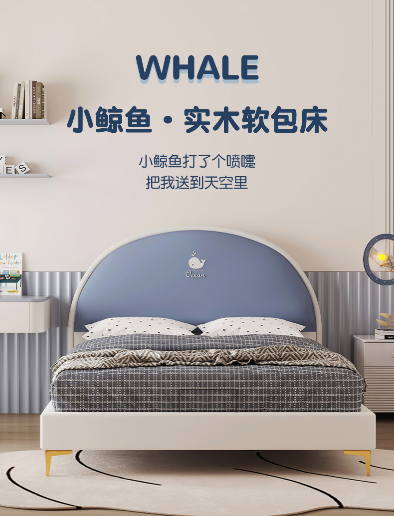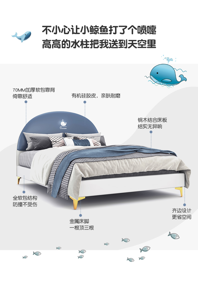 喜梦宝软包床儿童床现代简约海洋创意床男孩青少年软床单人床 小鲸鱼