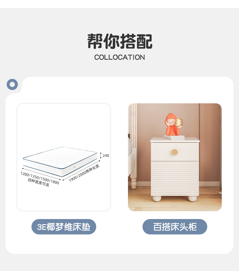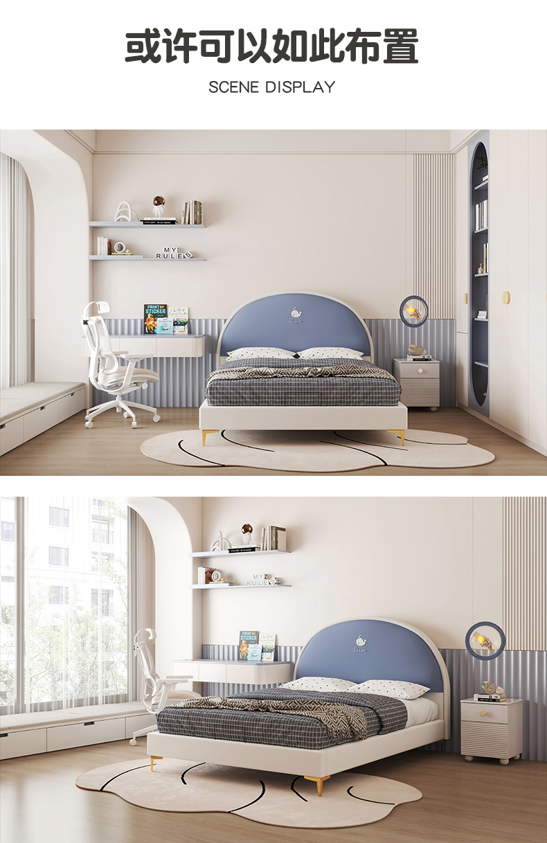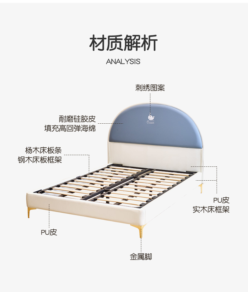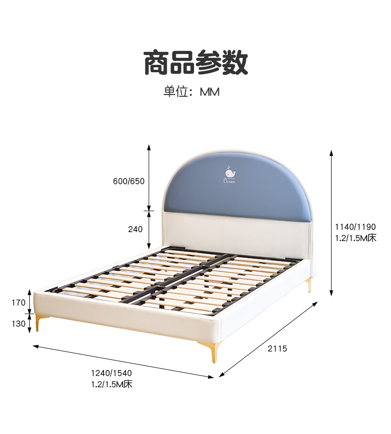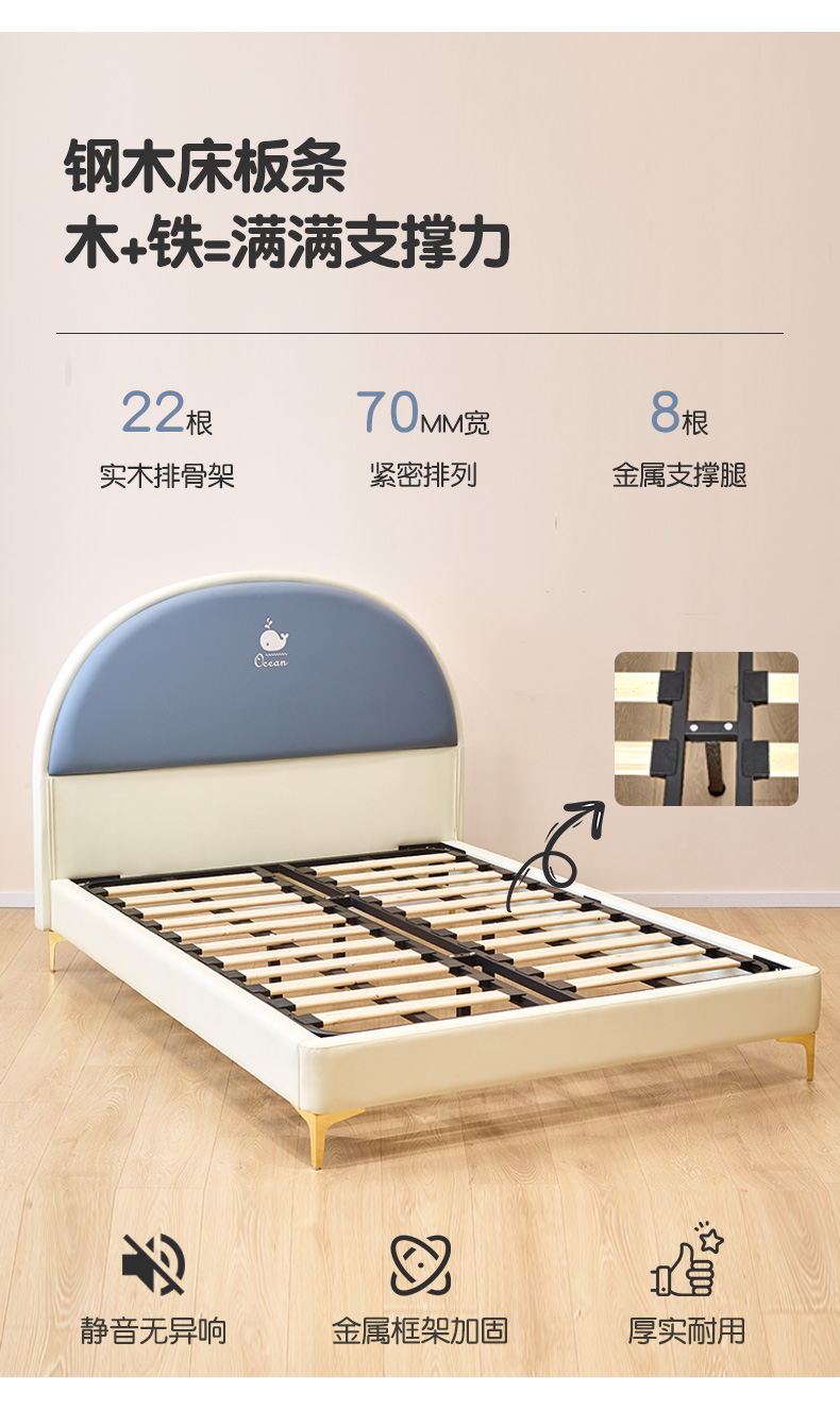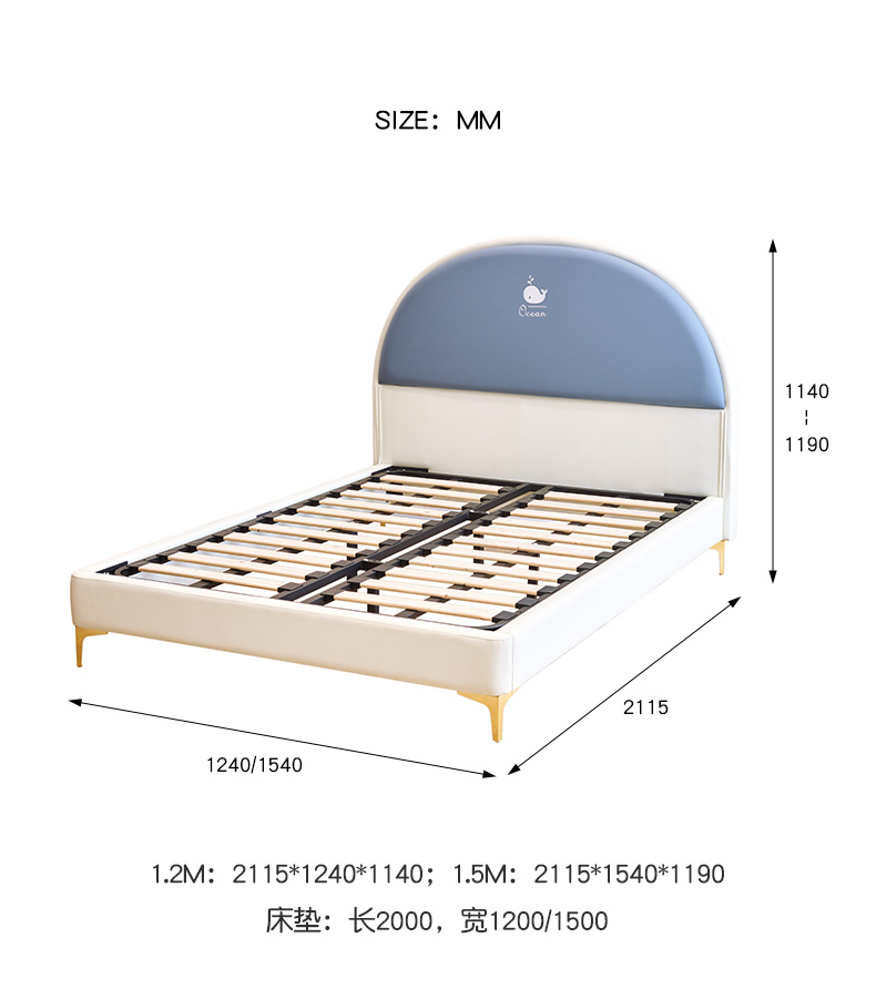 喜梦宝软包床儿童床现代简约海洋创意床男孩青少年软床单人床 小鲸鱼