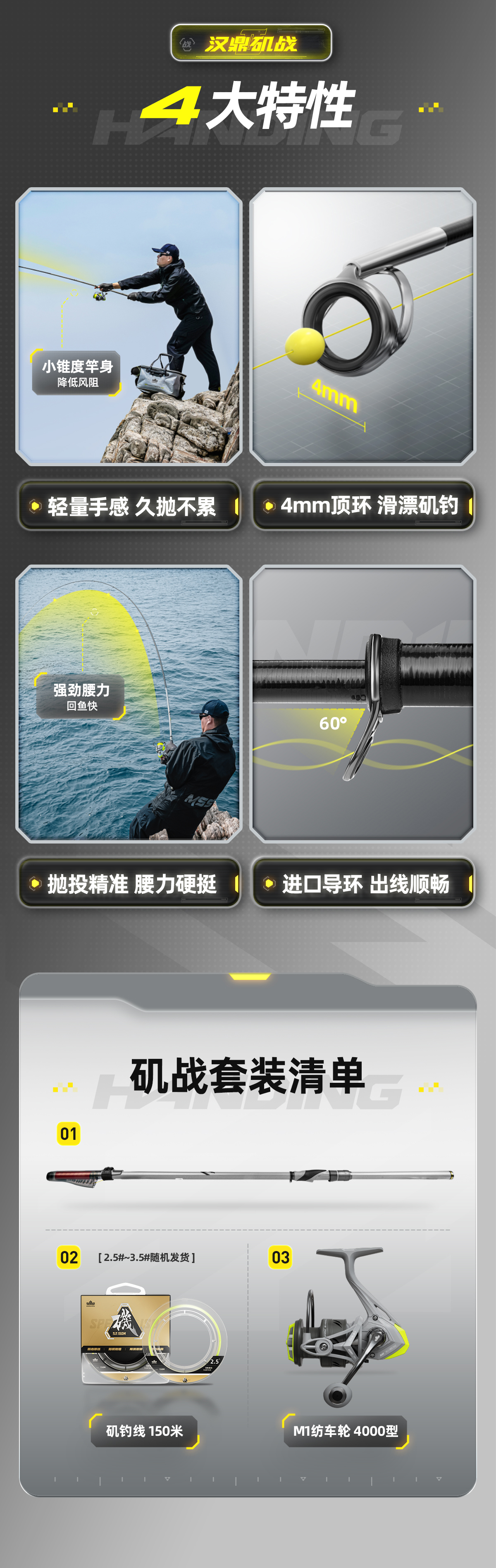 汉鼎矶战矶二代钓竿超轻超硬海竿鱼竿海杆轻量舒适轻硬好抛竿手感