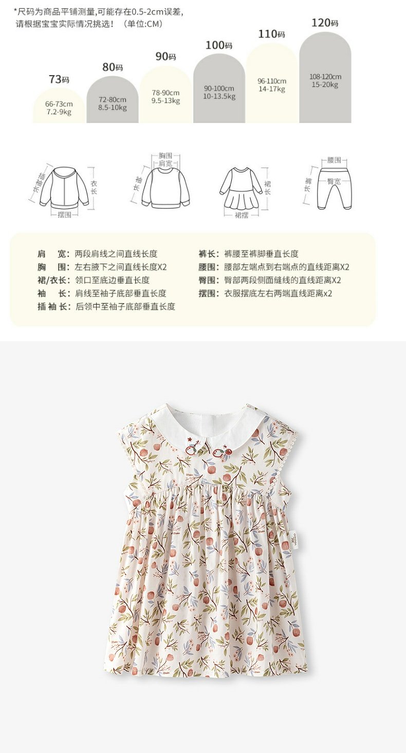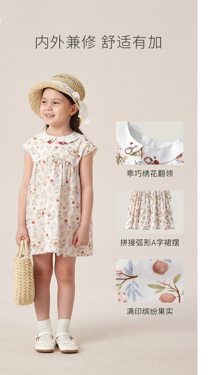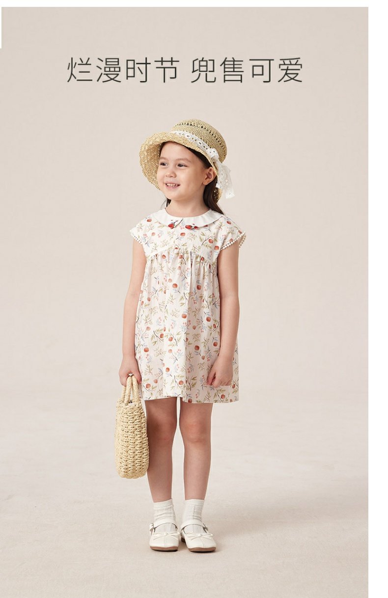 英氏纯棉短袖连衣裙23夏季新款无袖碎花长裙宝宝裙子YRLCJ2P387A