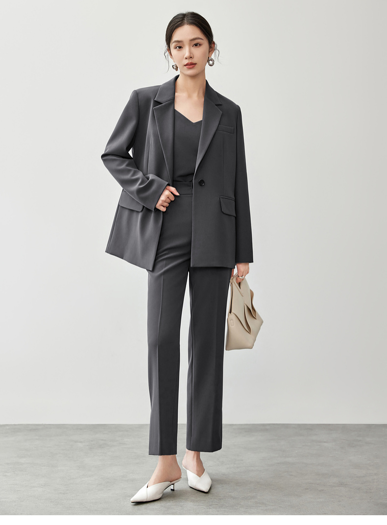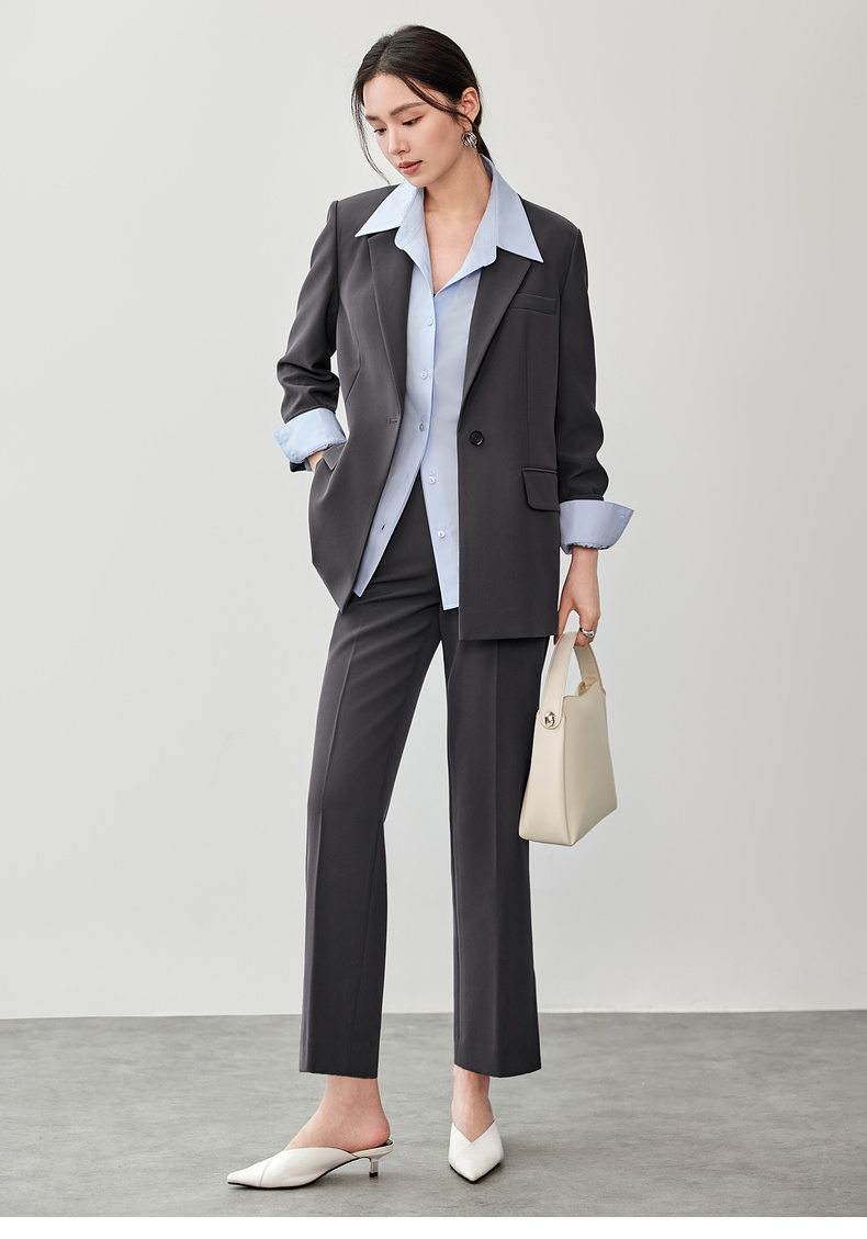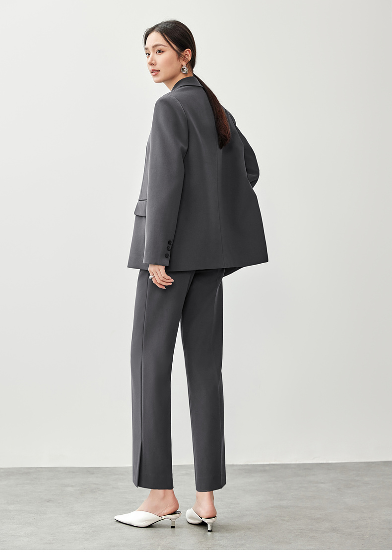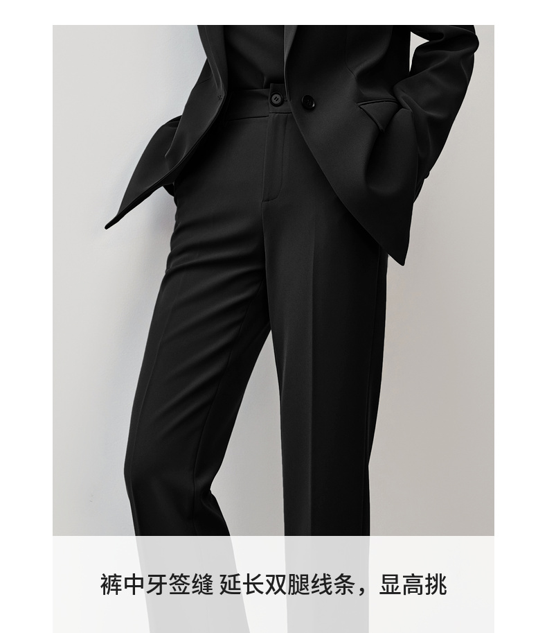 【内购】气质通勤带肩垫西装外套裤脚开衩直筒九分裤套装-151Z80558