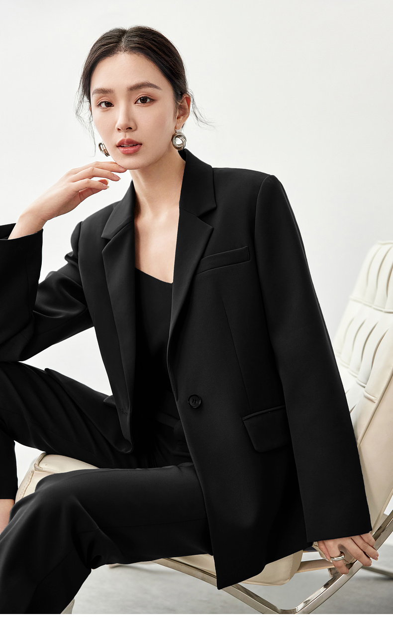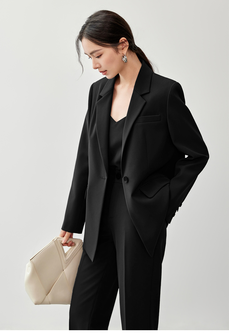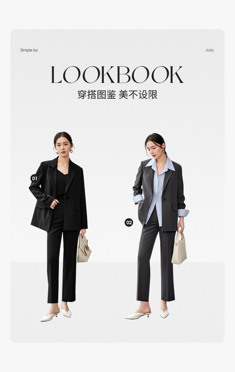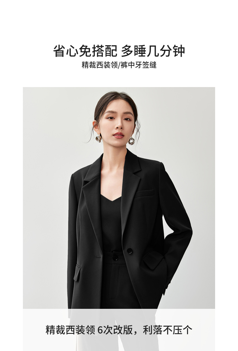 【内购】气质通勤带肩垫西装外套裤脚开衩直筒九分裤套装-151Z80558