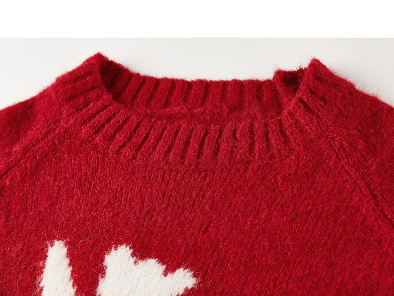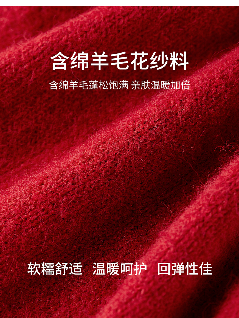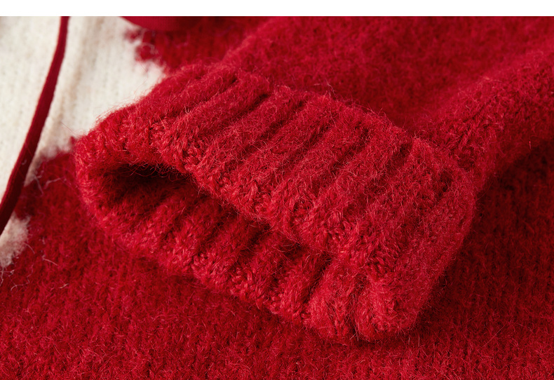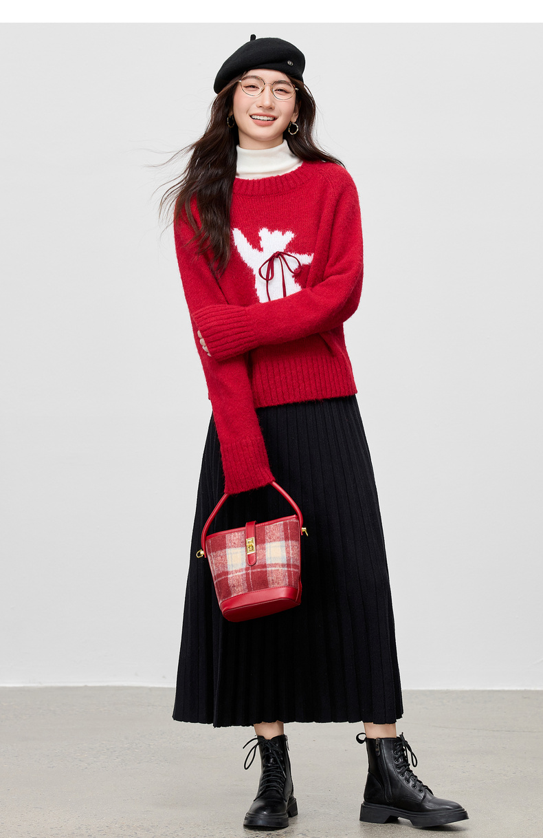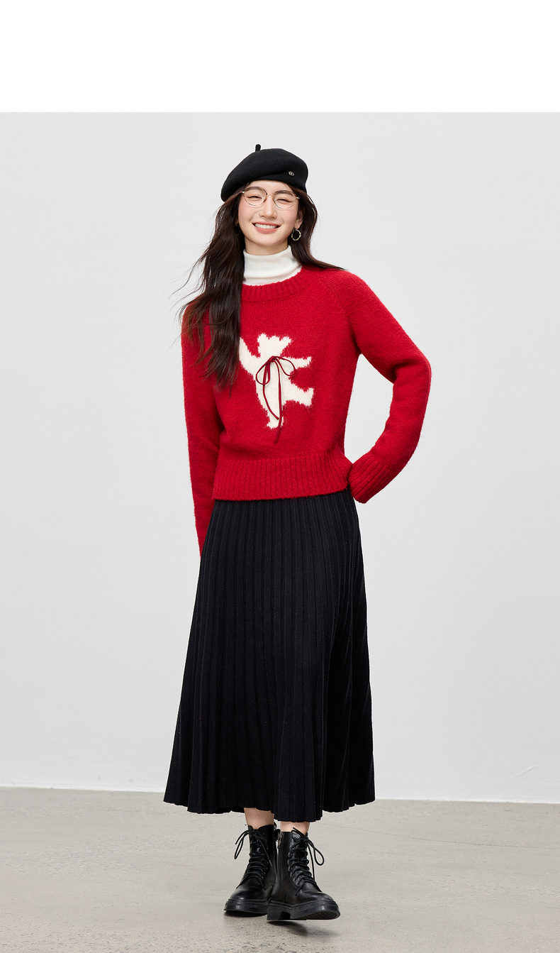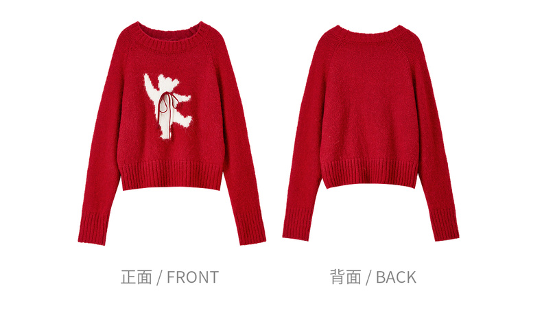 【内购】【雪妮熊】简约通勤圆领撞色蝴蝶结小熊图案宽松含绵羊毛花纱毛衣-W53EE3423
