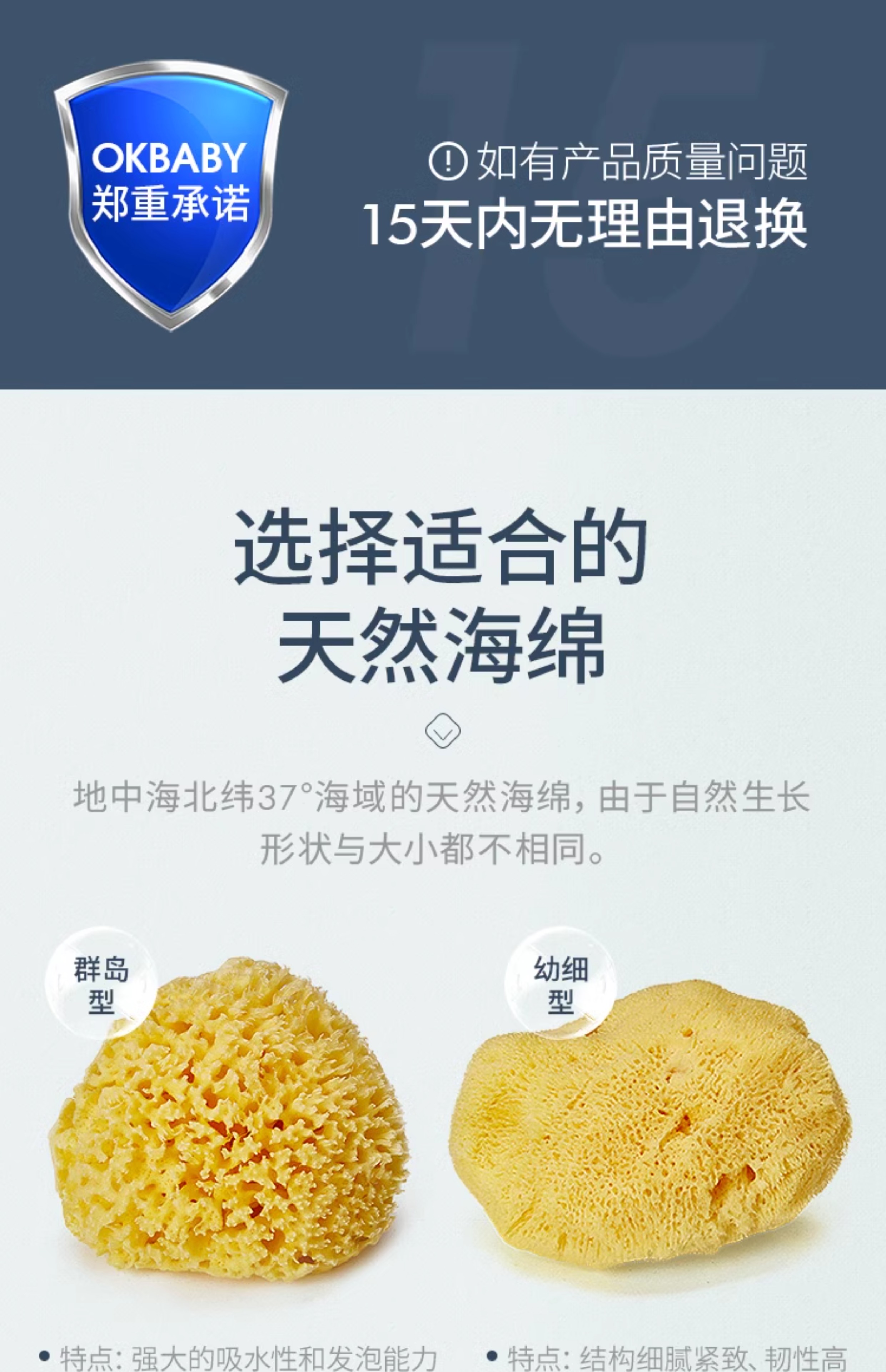 okbaby婴儿专用低敏洗澡海绵扑天然蜂窝搓澡海绵沐浴球婴幼儿宝宝3847-128