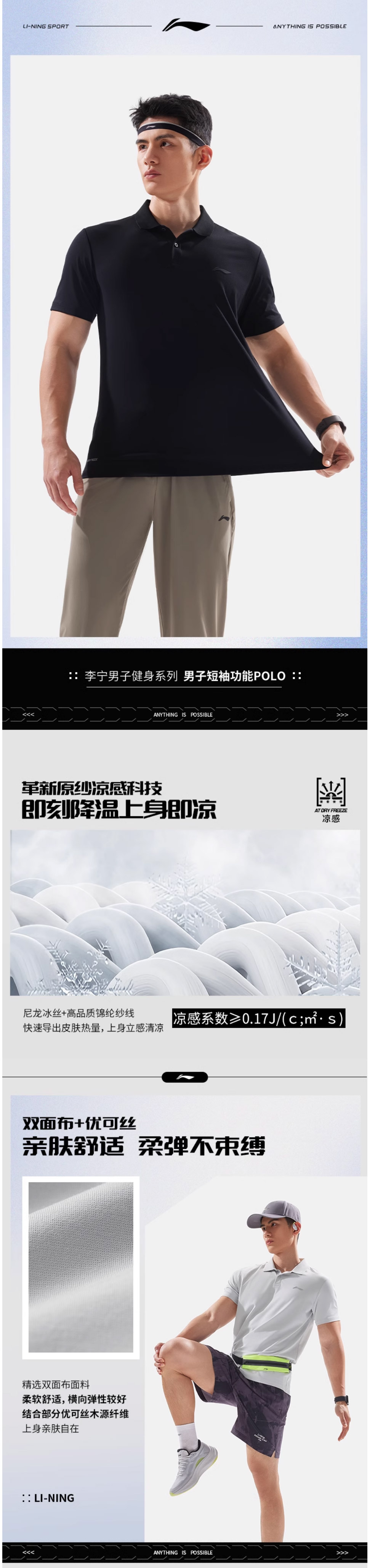 李宁男士夏季短袖POLO衫新款冰感T恤运动服APLV037