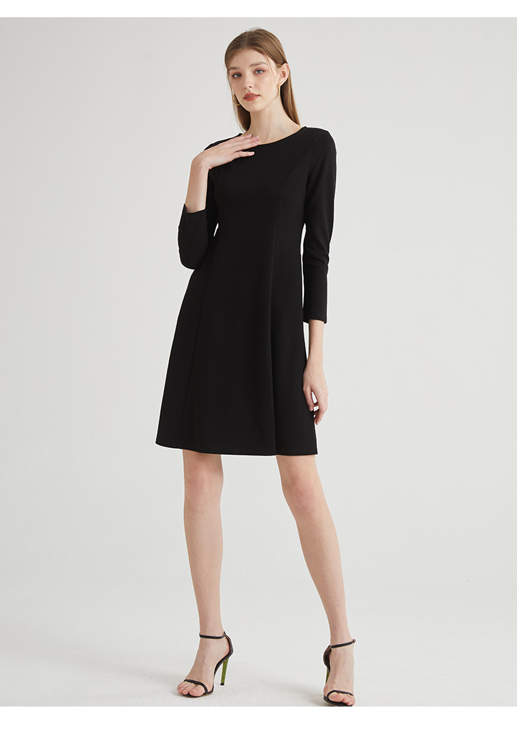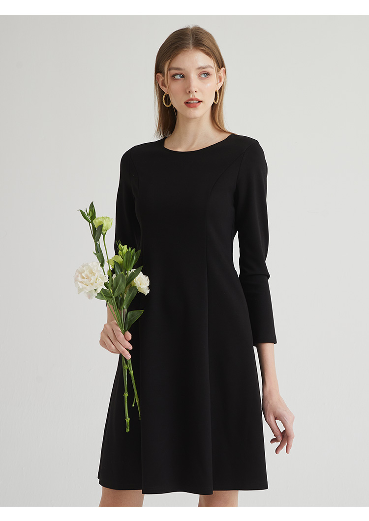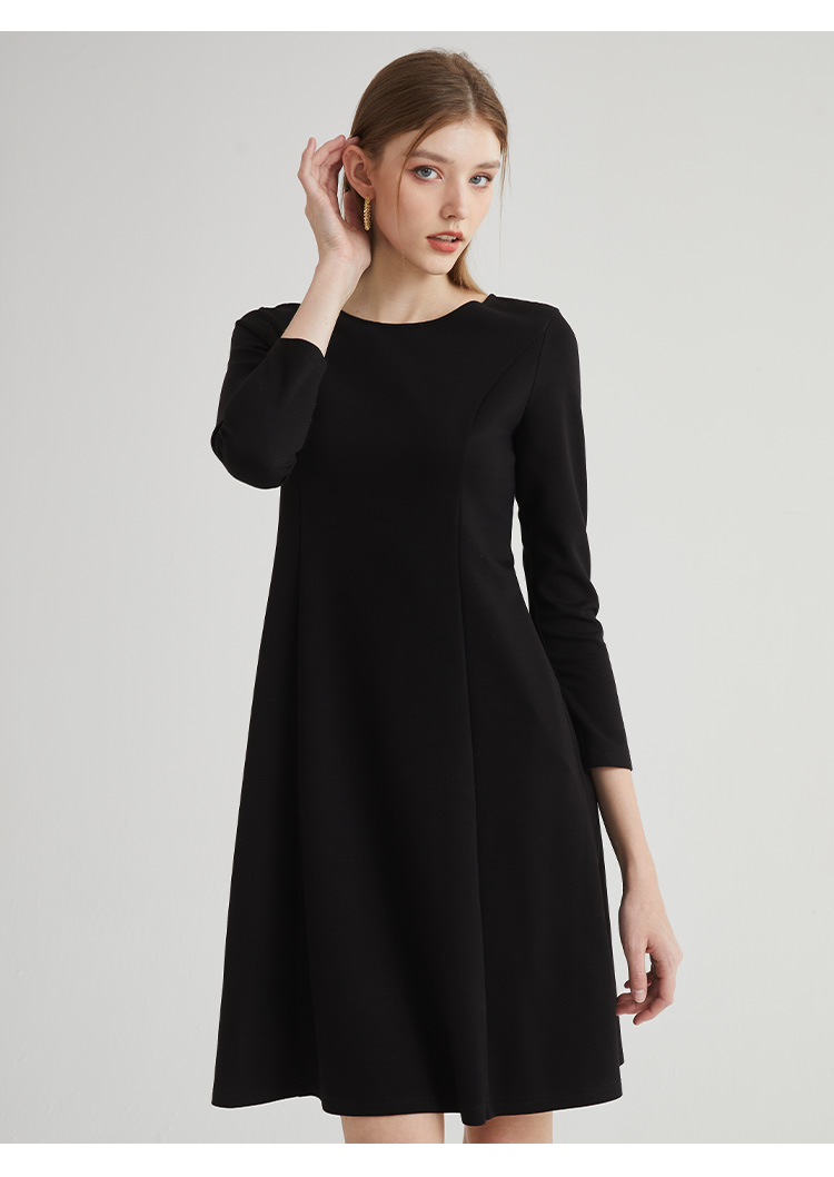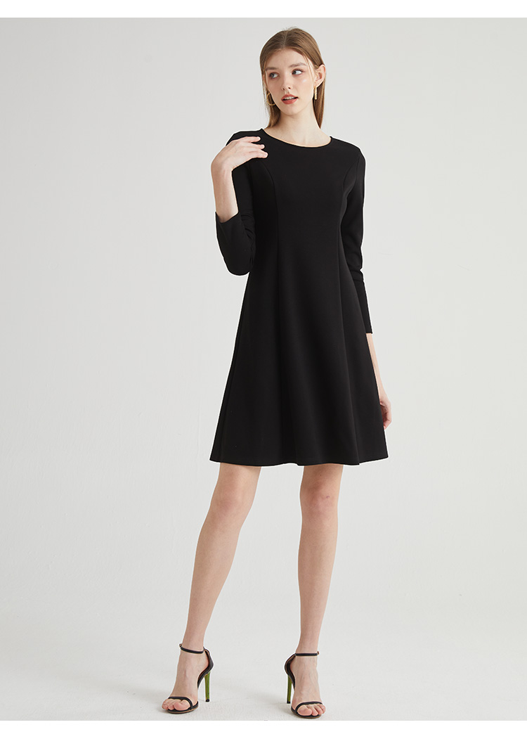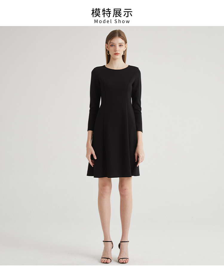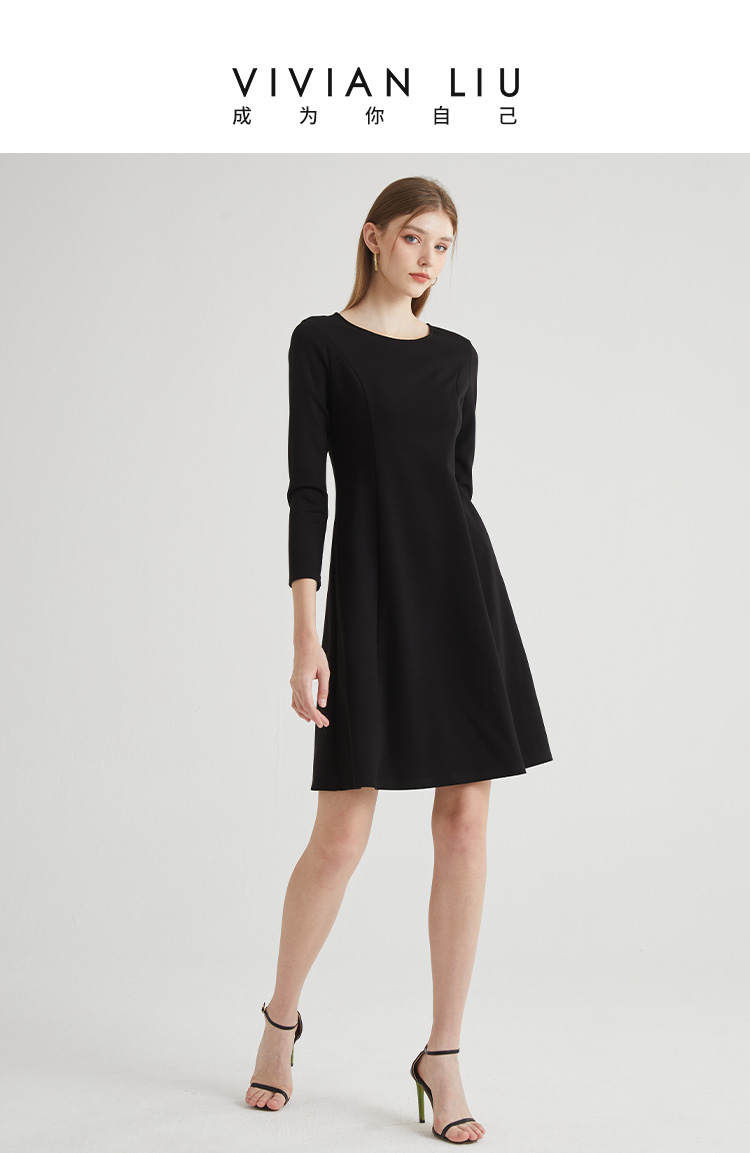 VIVIAN LIU R2317403春新款女装弹力圆领修身优雅长袖连衣裙