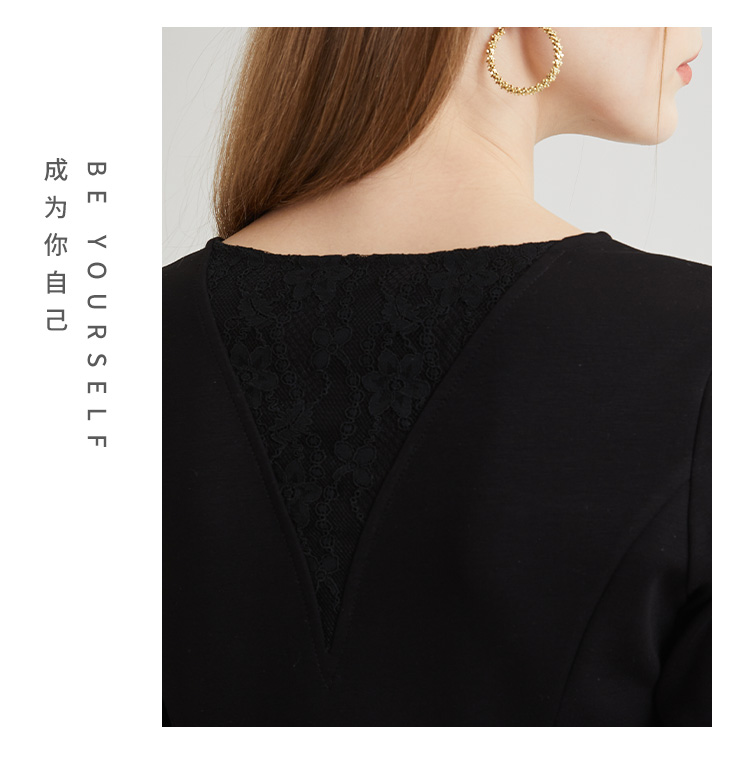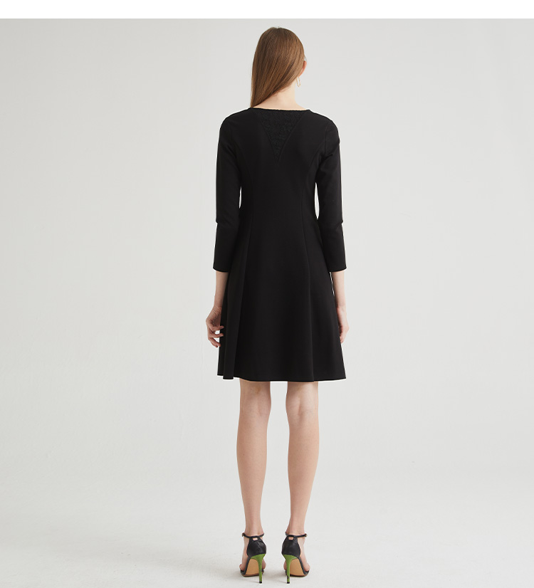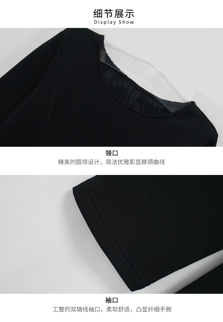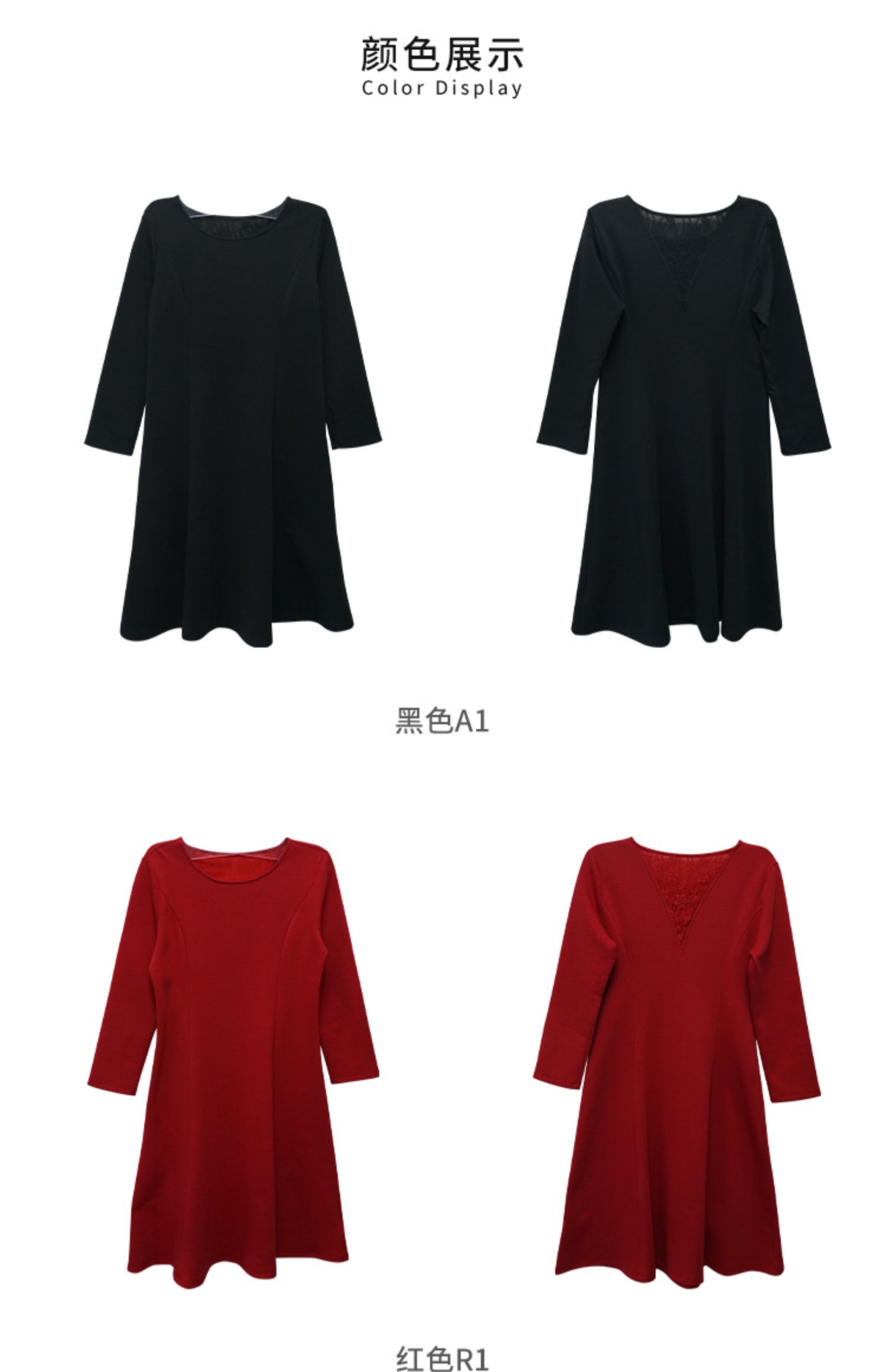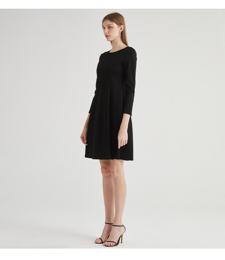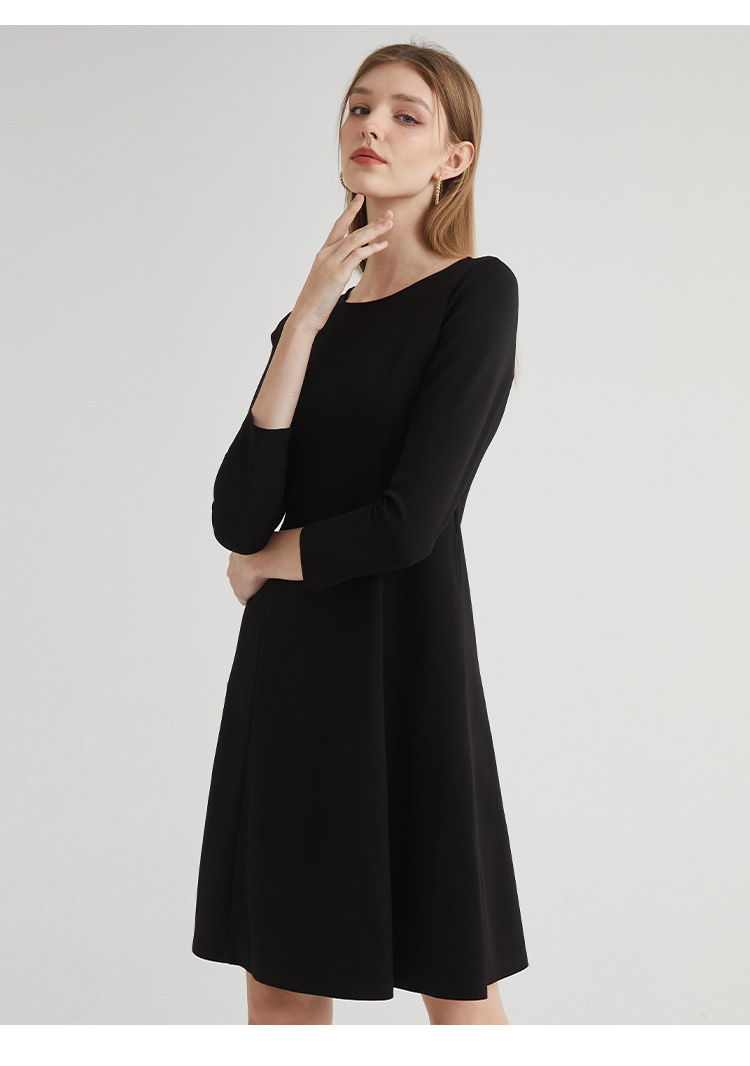 VIVIAN LIU R2317403春新款女装弹力圆领修身优雅长袖连衣裙