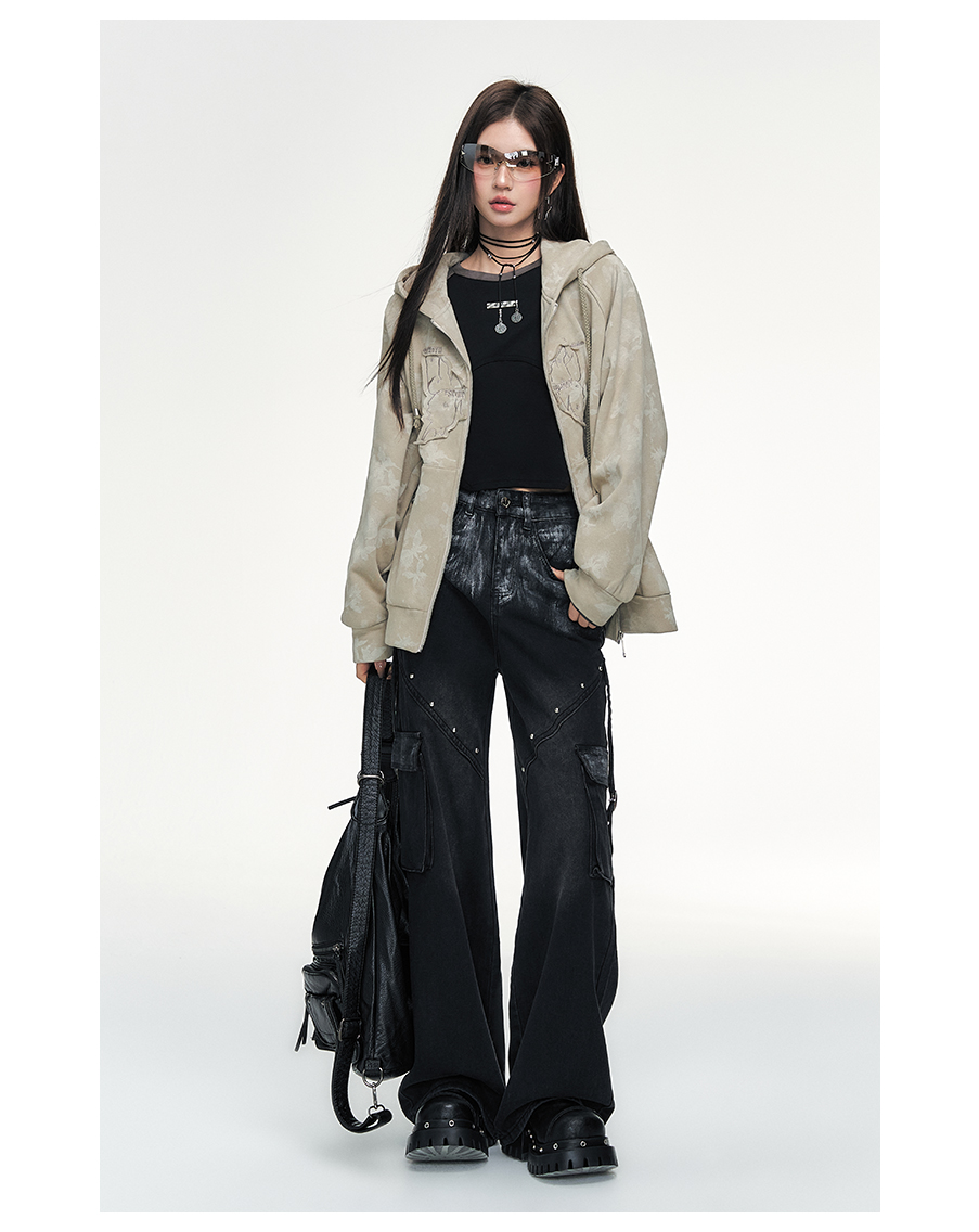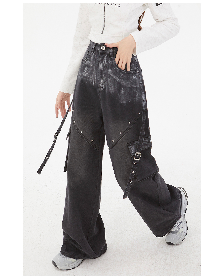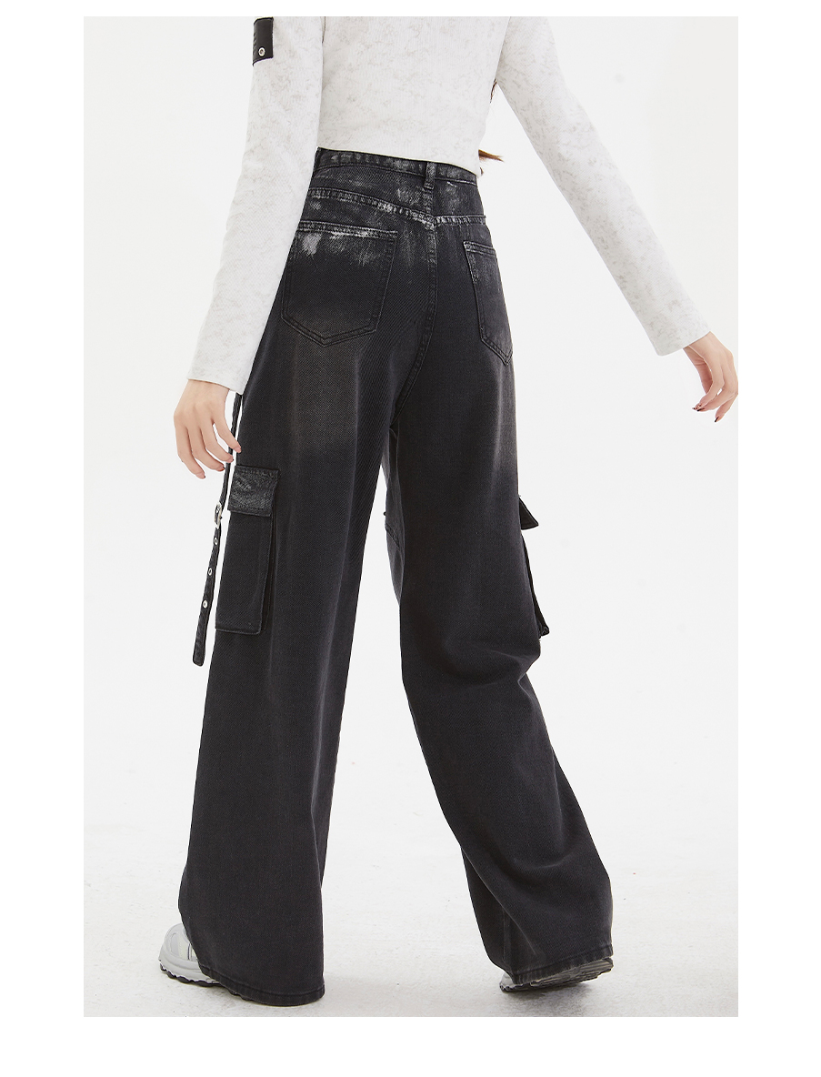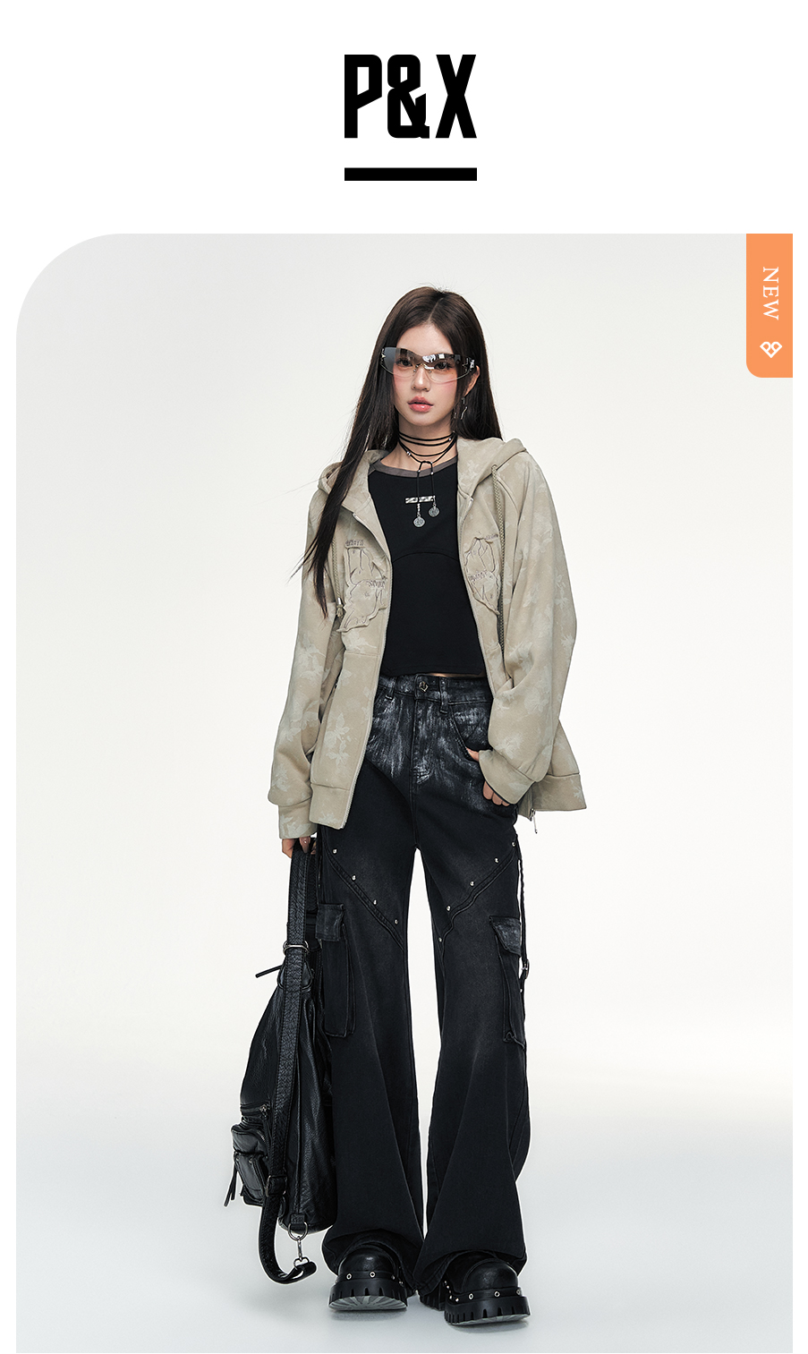 P&X设计师女装春季时尚潮流宽松牛仔长裤825110066 黑色