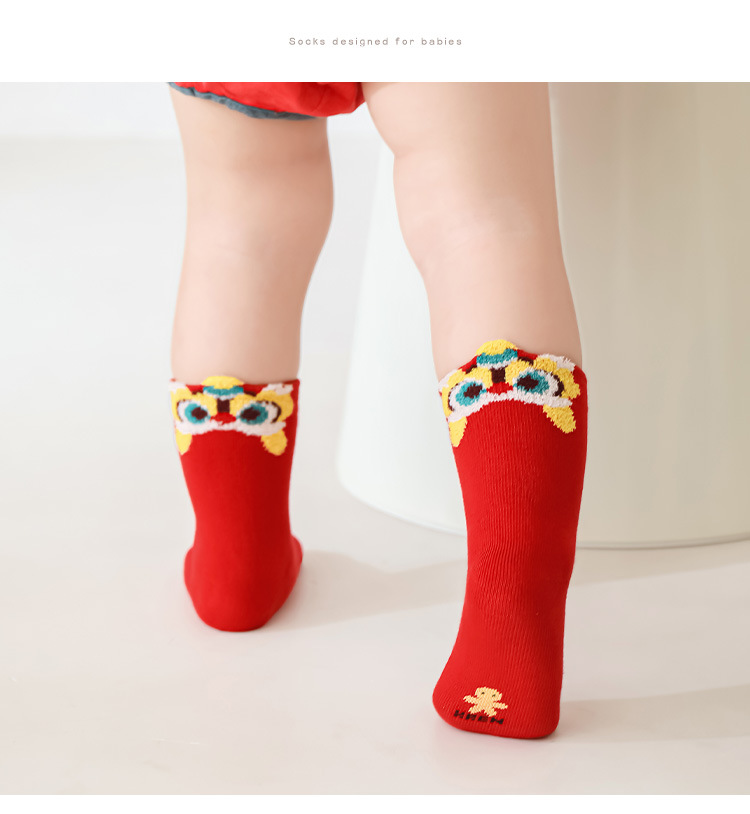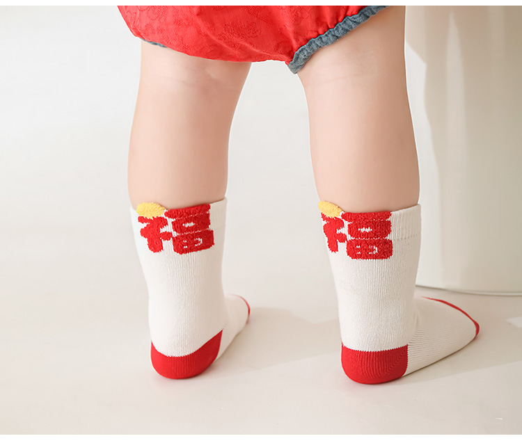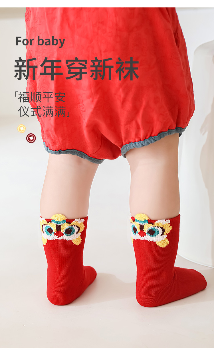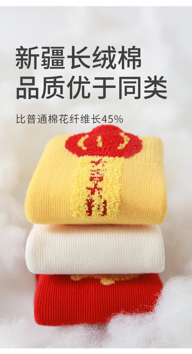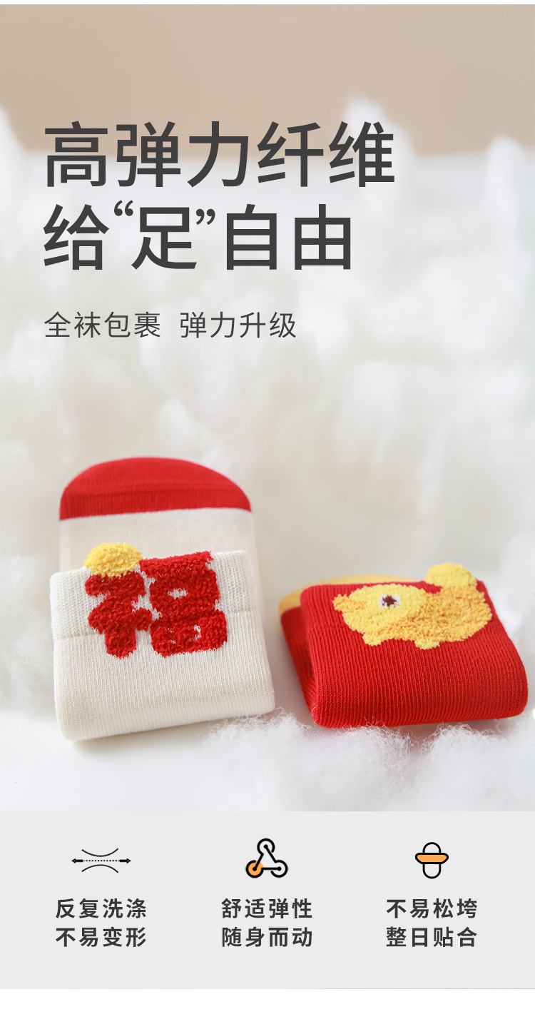 【19.9元3双包邮】2026马年新年红本命年宝宝袜子秋冬精梳棉A类无骨缝制透气大红袜福气新年袜百天周岁袜子中筒袜0-5岁★