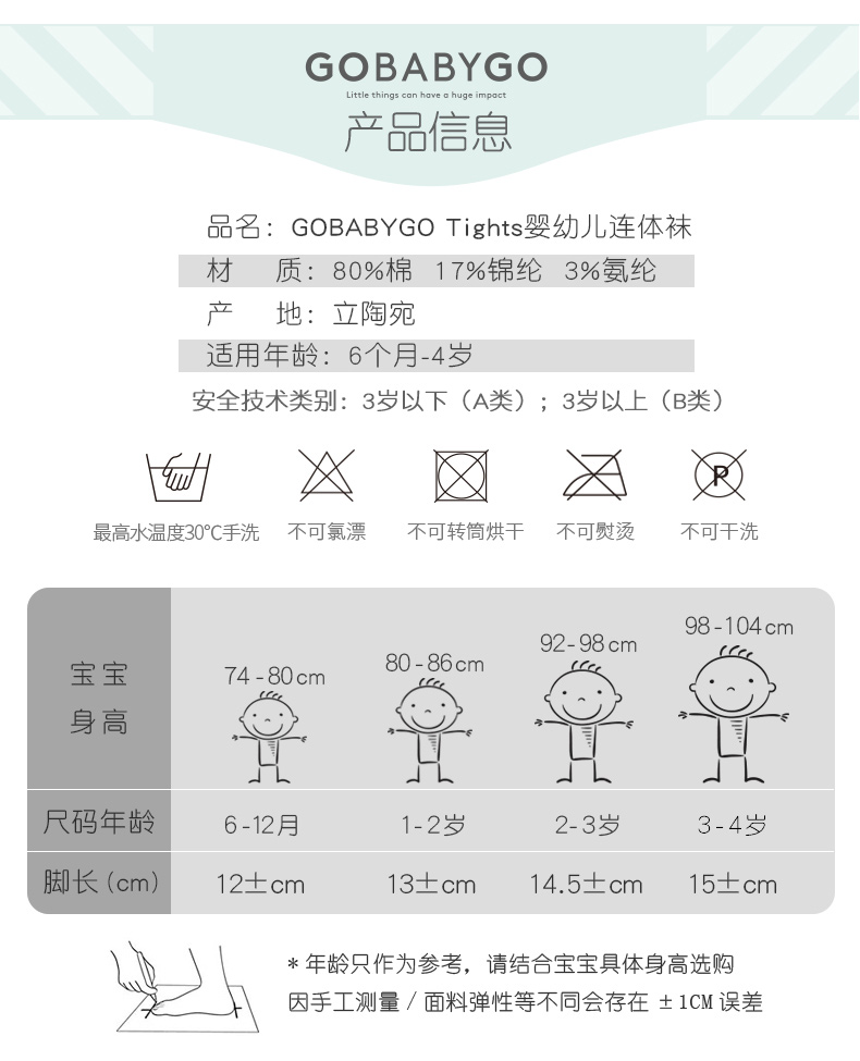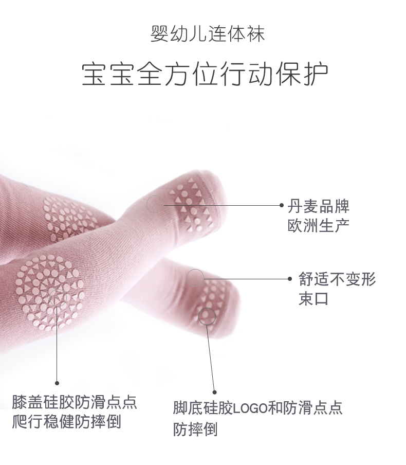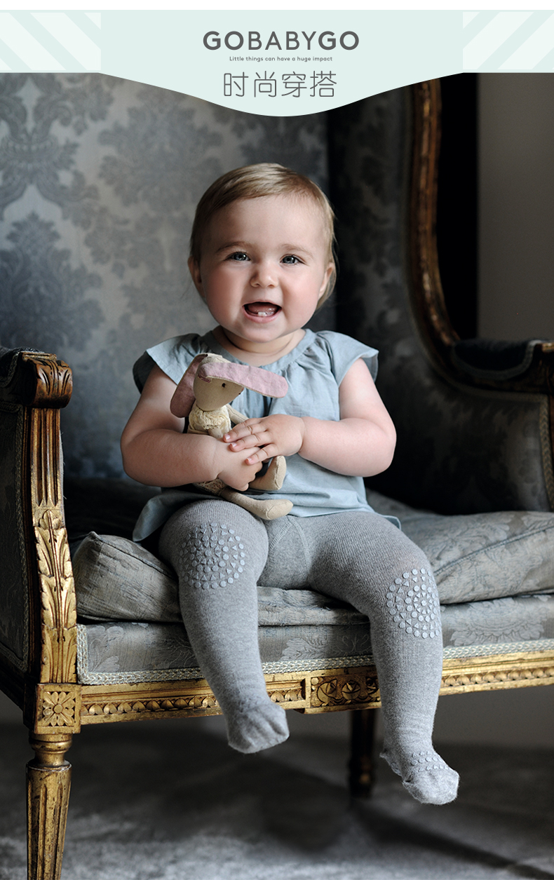 丹麦Gobabygo秋冬季薄款宝宝婴幼儿紧身打底裤连体裤袜防滑棉袜