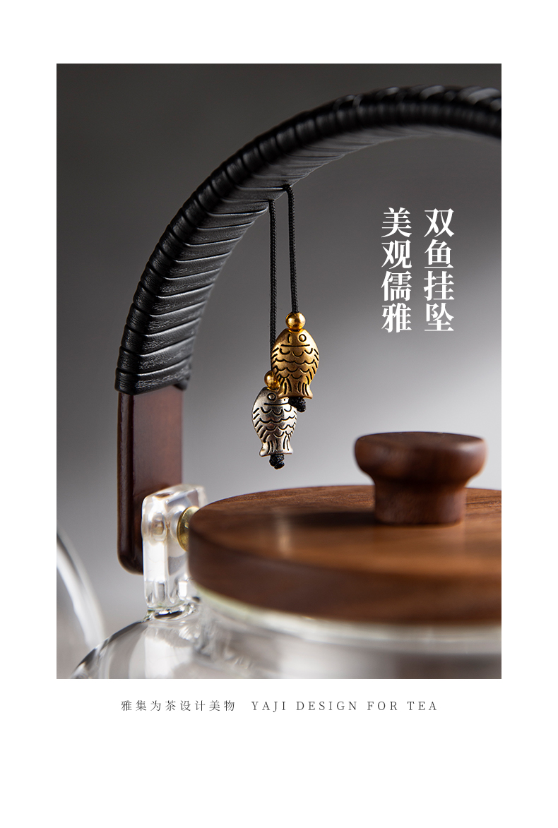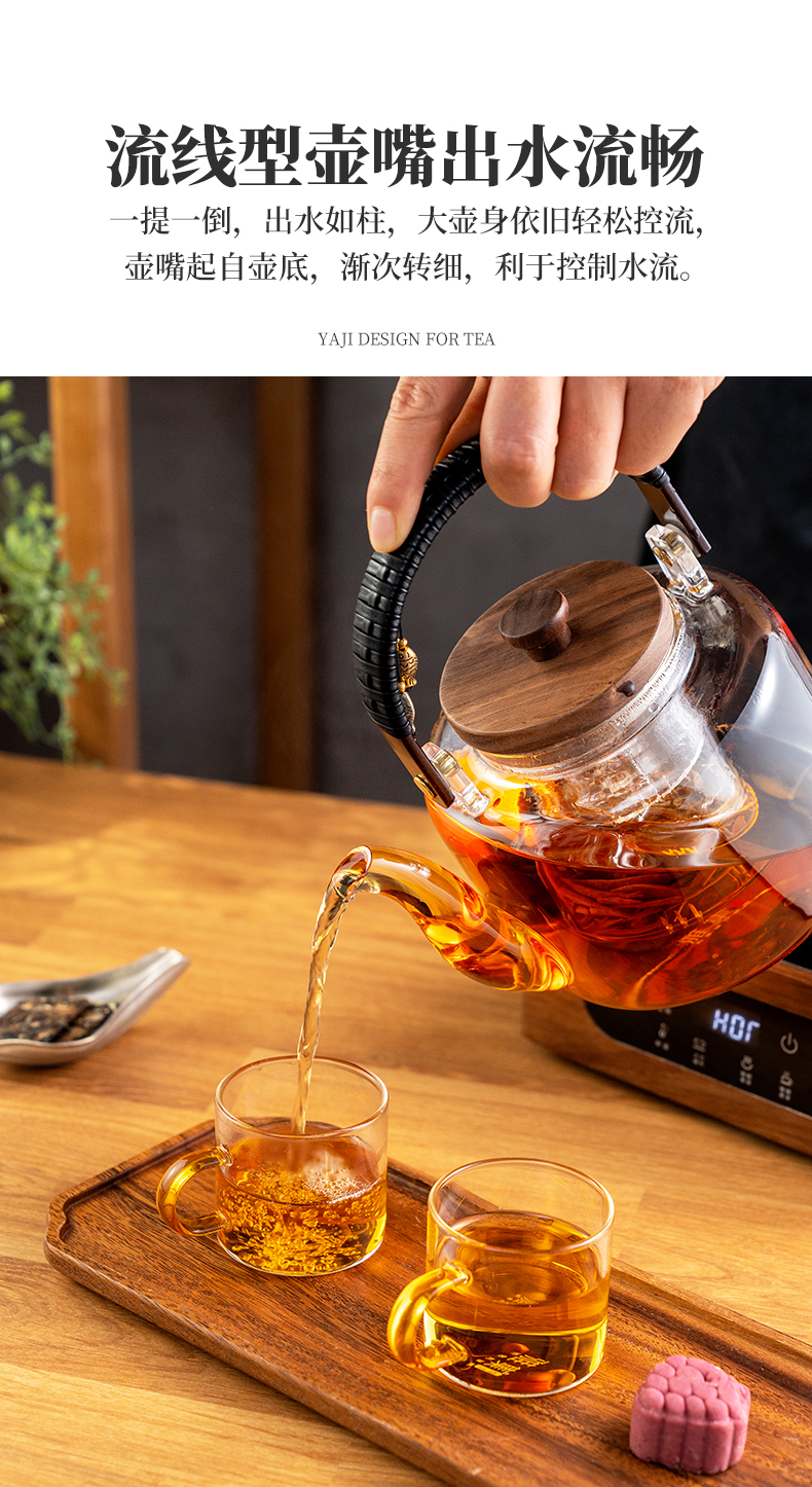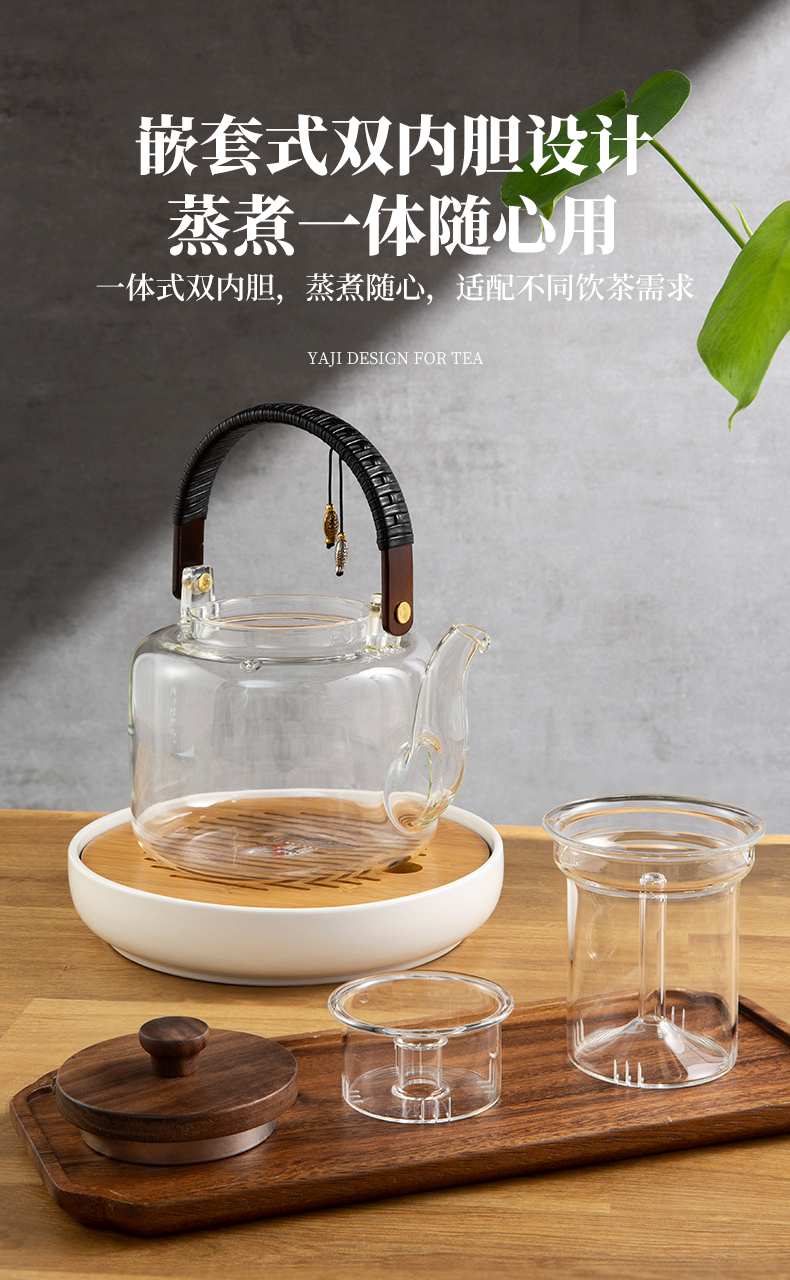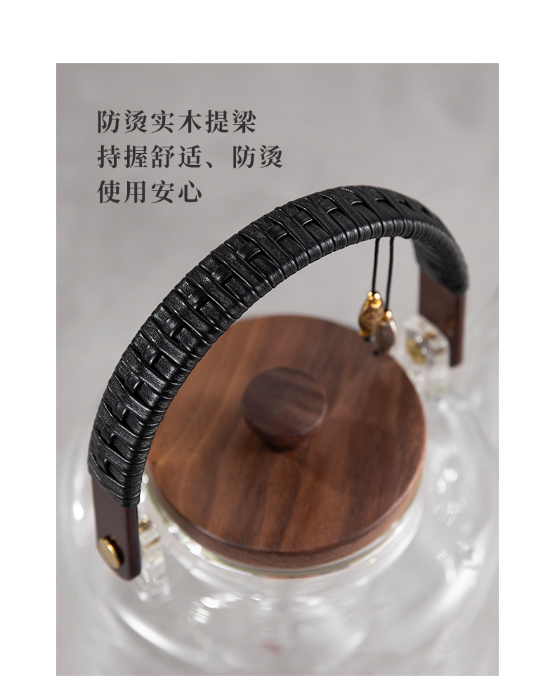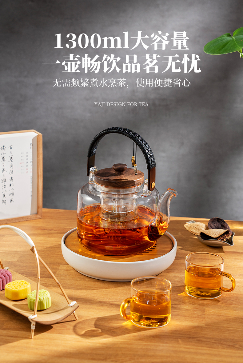 雅集玻璃壶木盖蒸煮二用提梁壶1300ml