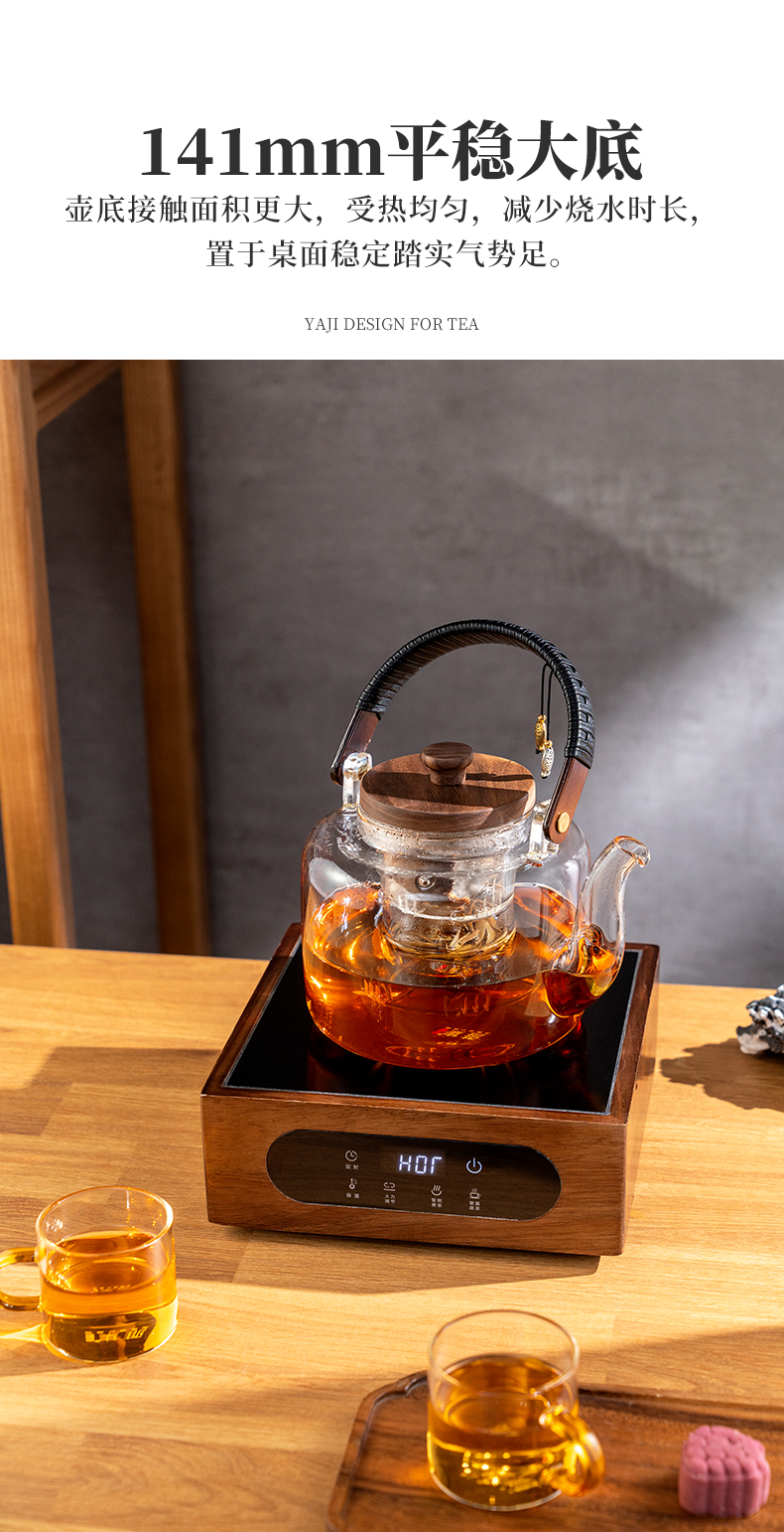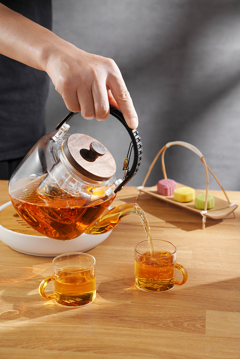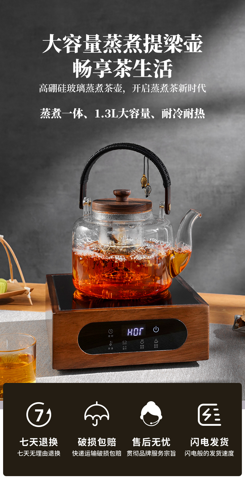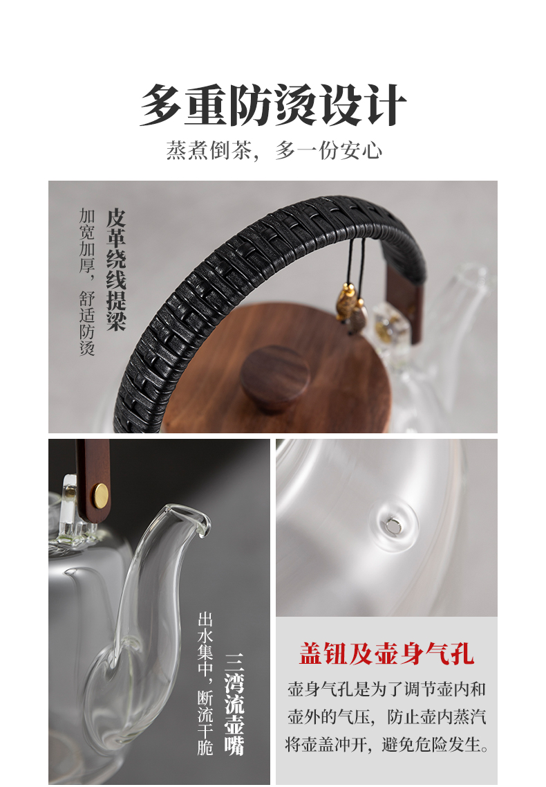 雅集玻璃壶木盖蒸煮二用提梁壶1300ml