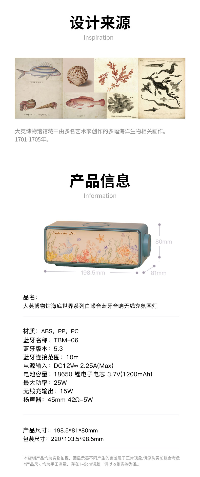 大英博物馆 海底世界系列 白噪音蓝牙音响无线充氛围灯