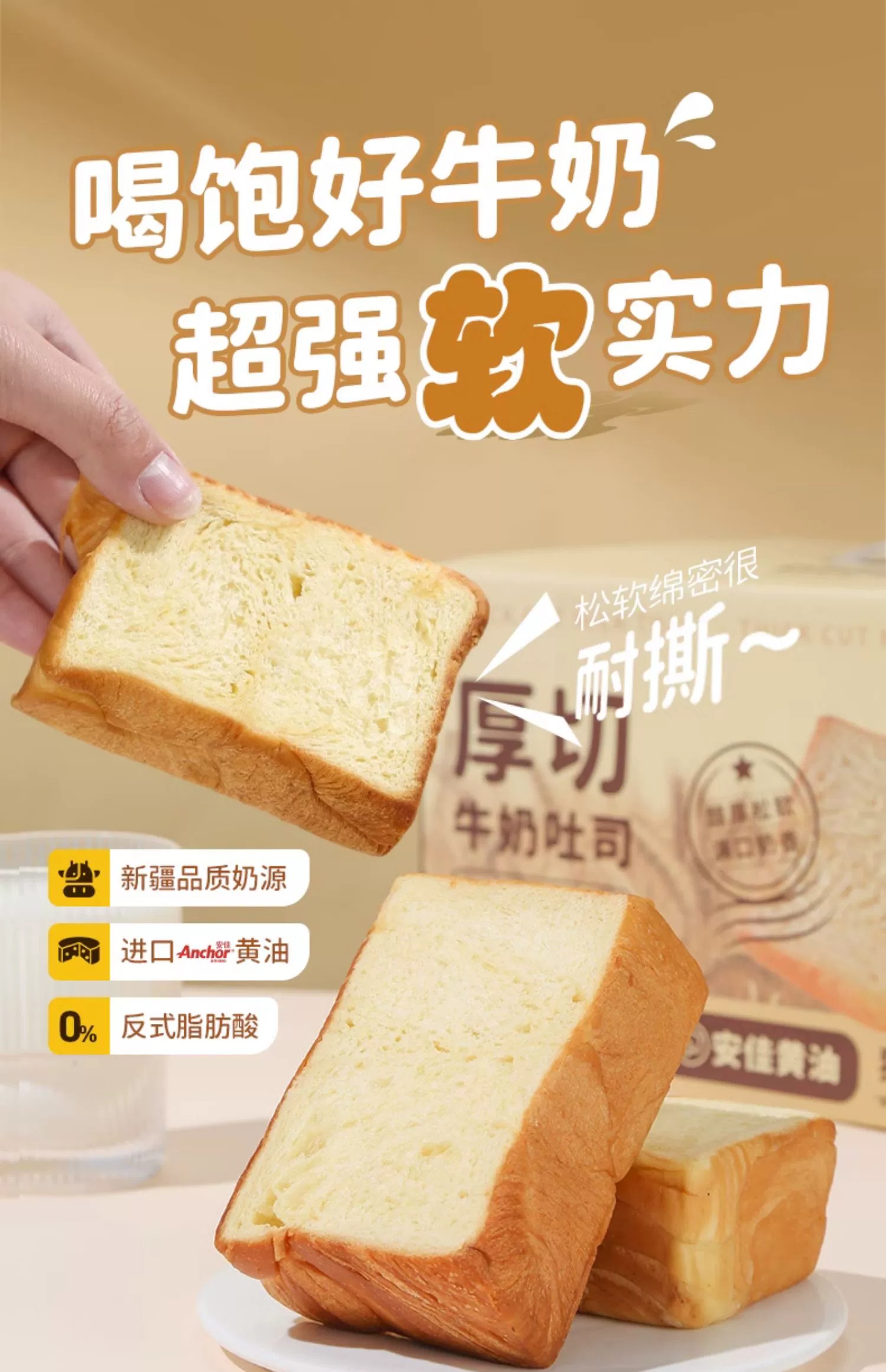 【切糕王子厚切牛奶吐司】选用新疆纯牛奶&新西兰进口安佳黄油,奶香浓郁,口感超软超饱腹