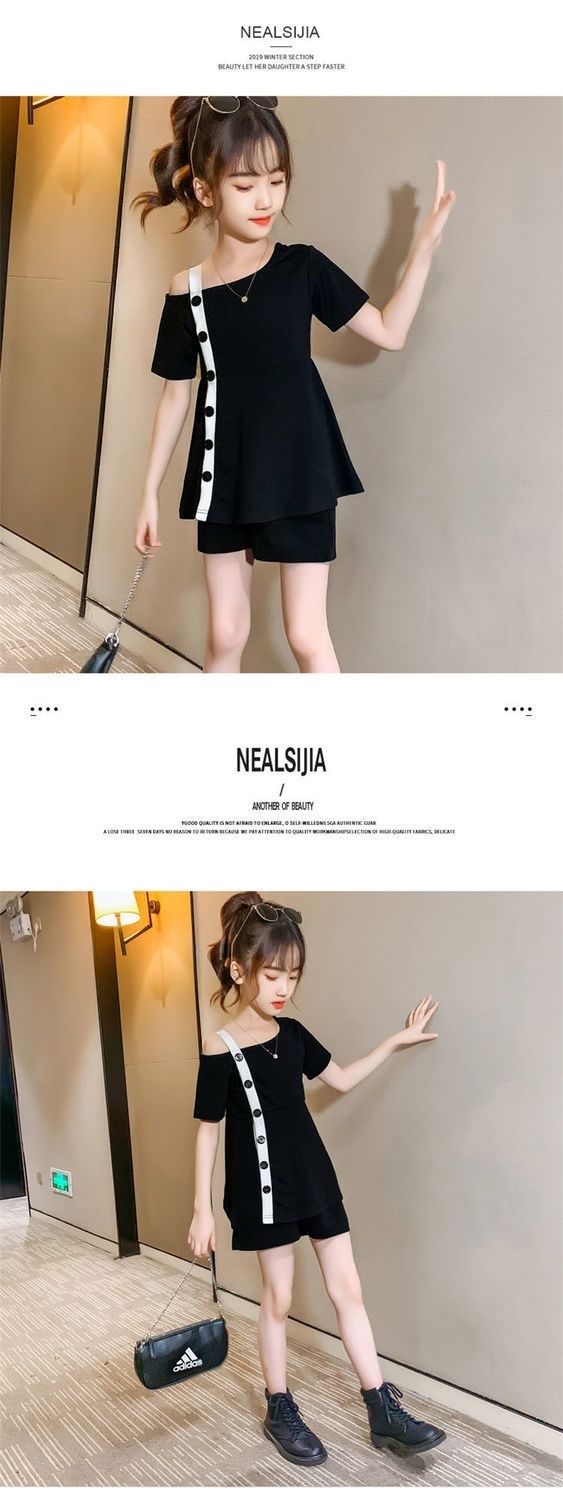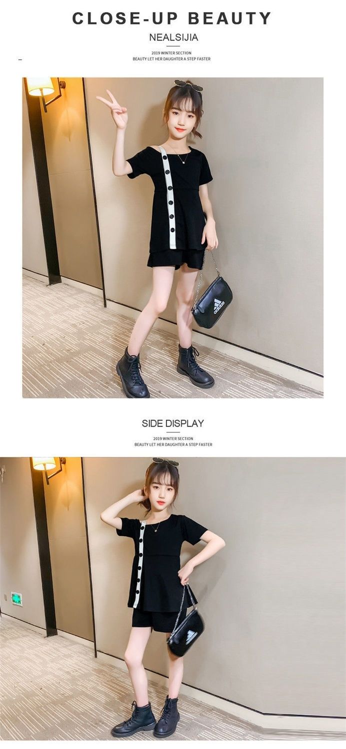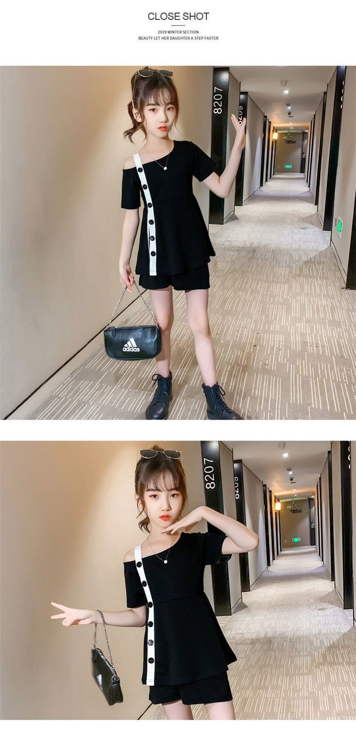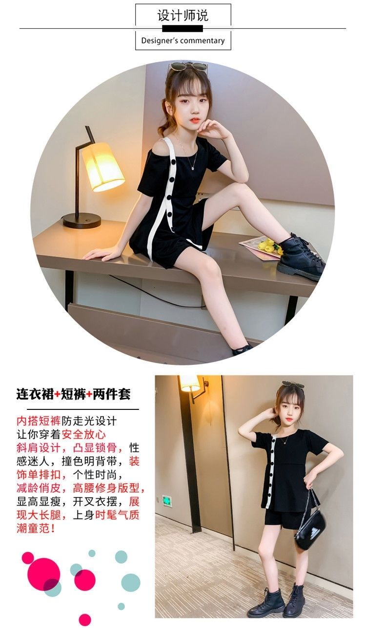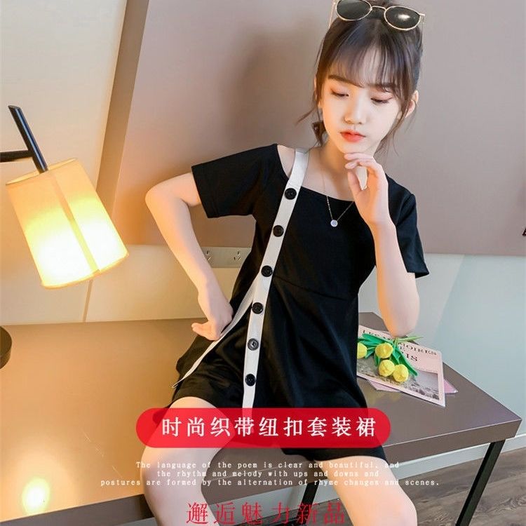 黛唯梵 女童套装夏装2022年夏季新款洋气时髦吊带连衣裙儿童短袖两件套潮国庆出游
