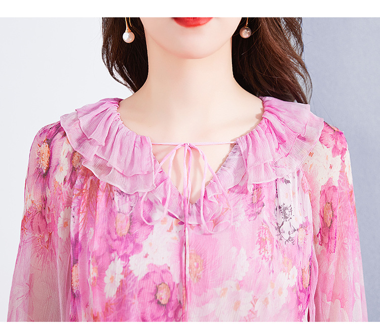 V领荷叶边洋气修身,显瘦丝绒长袖小衫KQL-2365