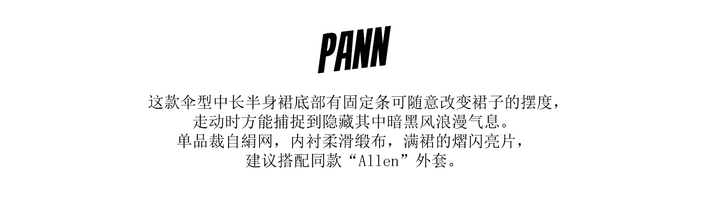 PANN审美基于街头文化, 品牌风格轻松乐观精致充满着浪漫女人味体现着时尚又些许叛逆的风格,主要专注于混合经典的细节和街头流行风格,轻松轮廓打造现代造型便有了PANN.