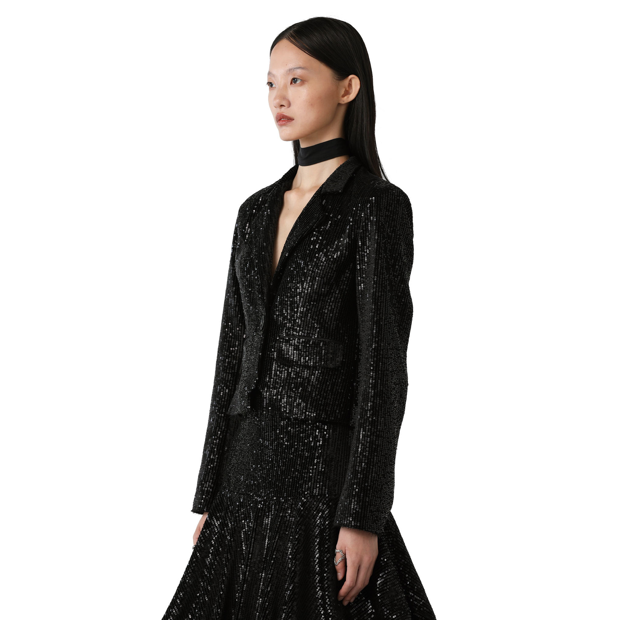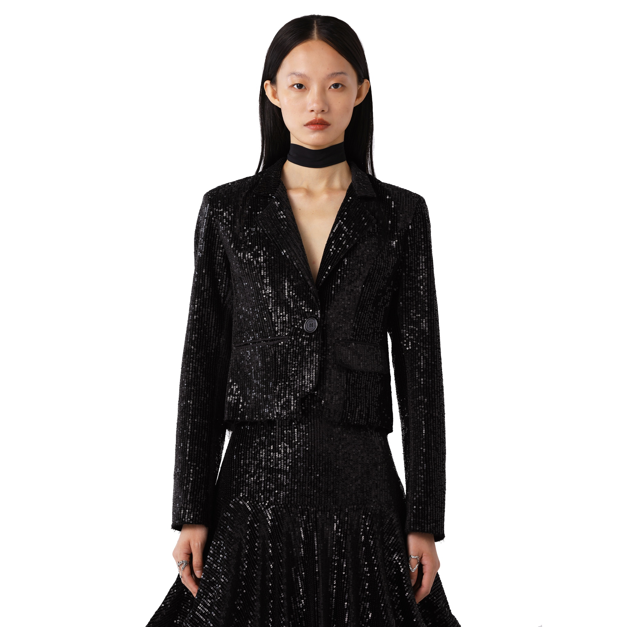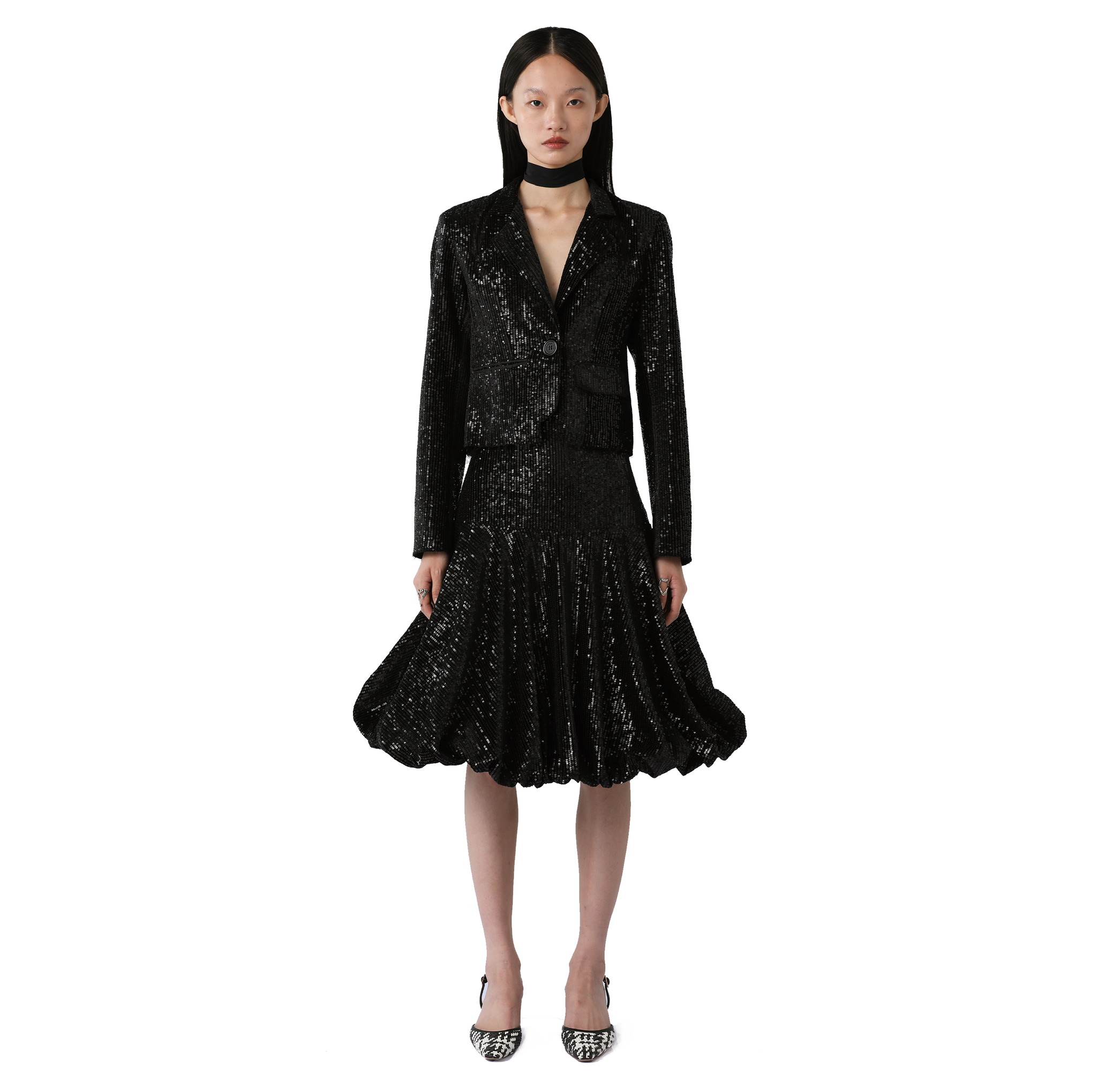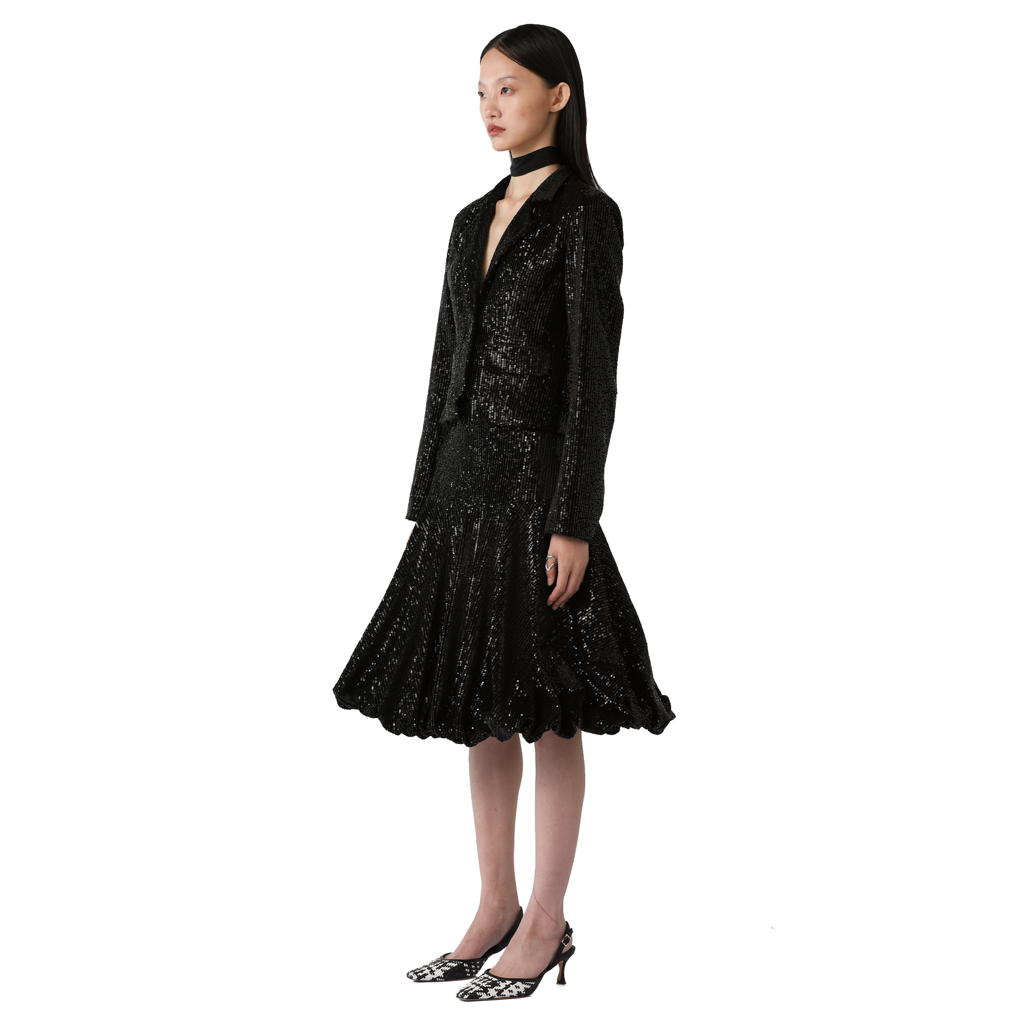 Allen 黑色丝绒亮片伞裙