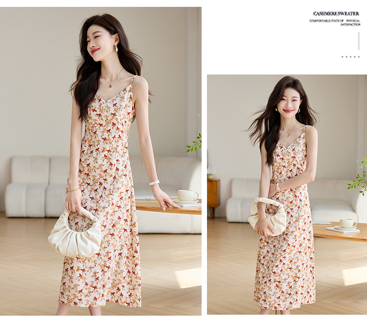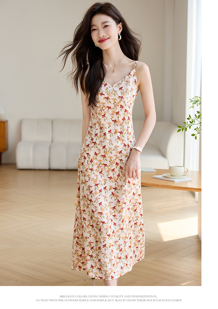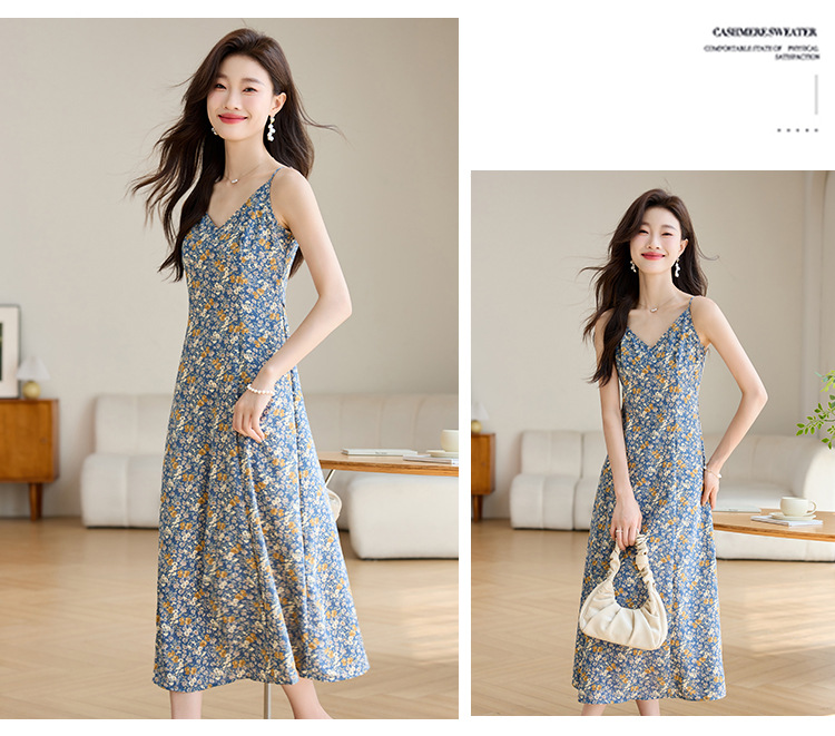 小性感度假好看绝美,碎花吊带连衣裙CC-J720
