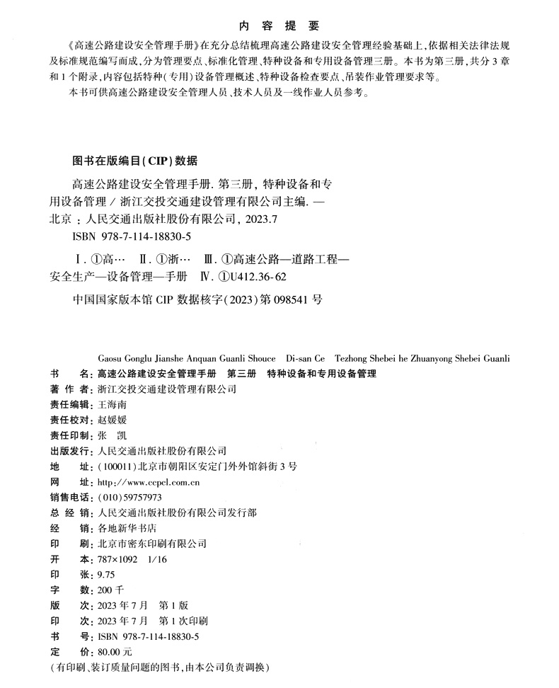 书名:高速公路建设安全管理手册 第三册 特种设备和专用设备管理