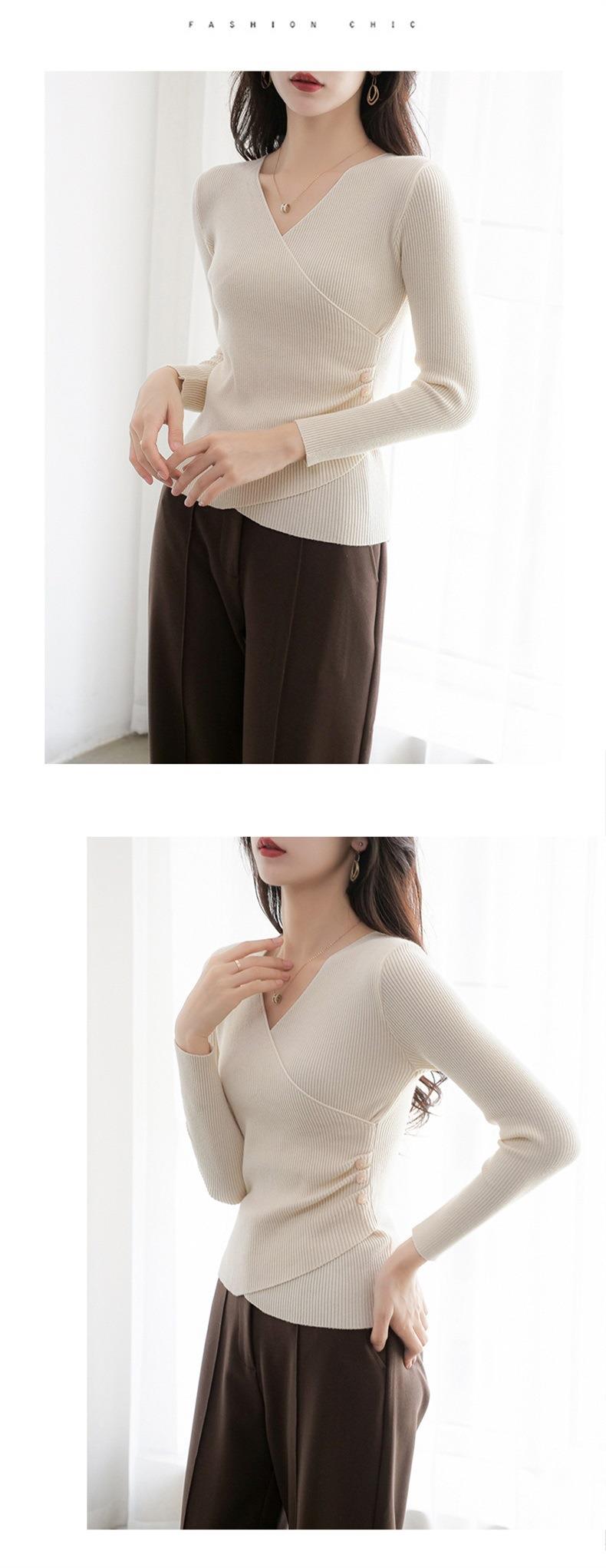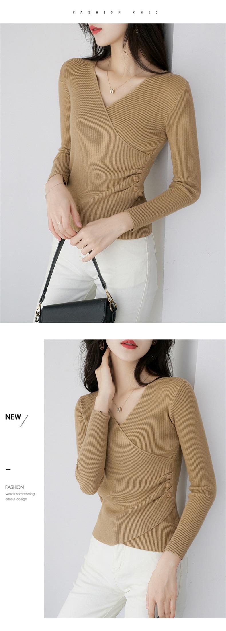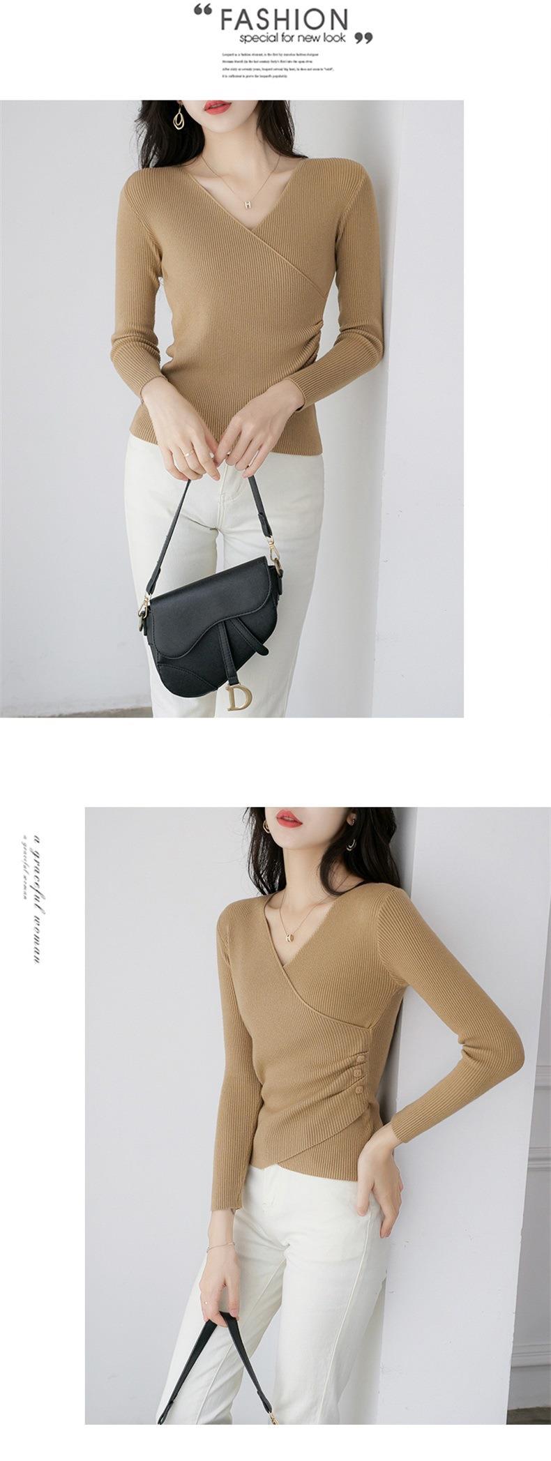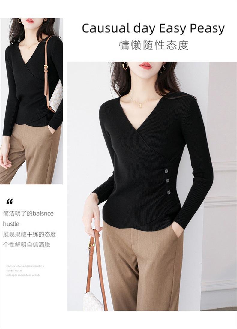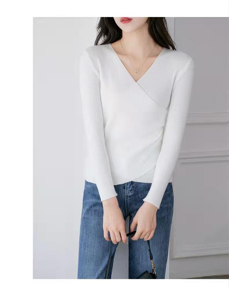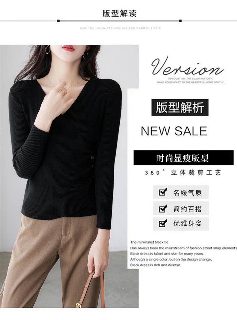 春秋装气质v领薄款毛衣女装内搭针织衫修身套头长袖针织打底衫潮