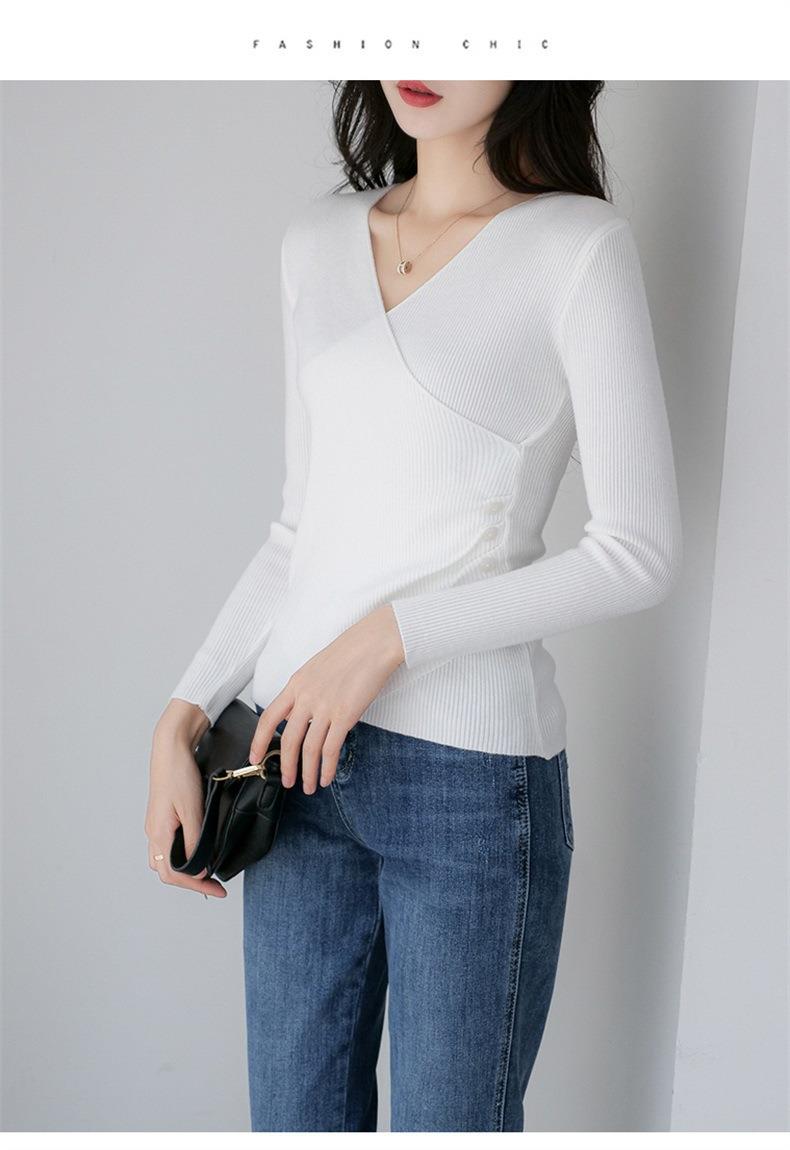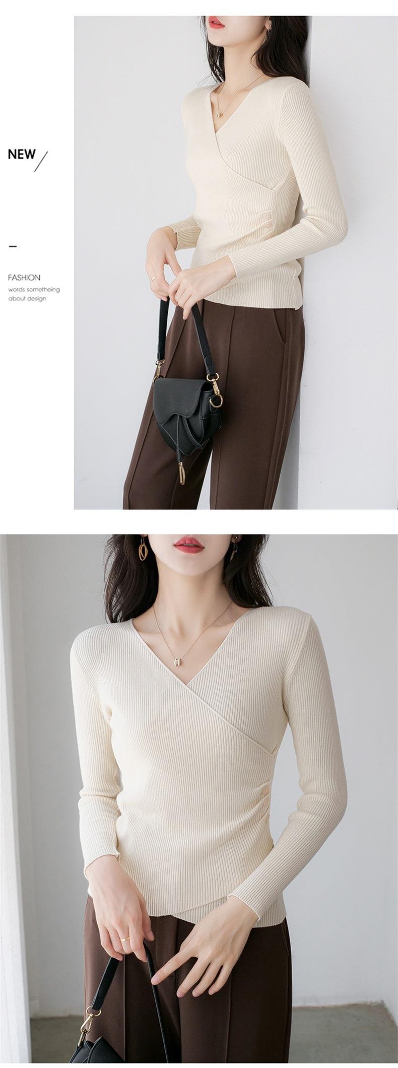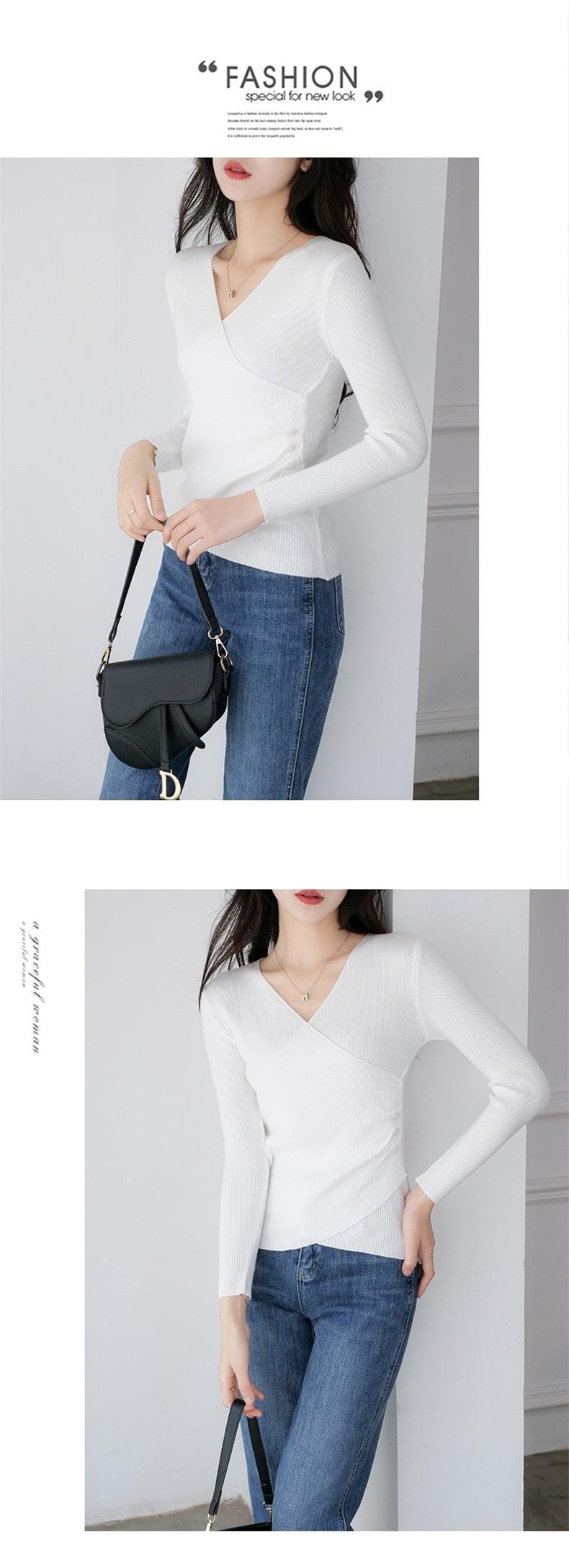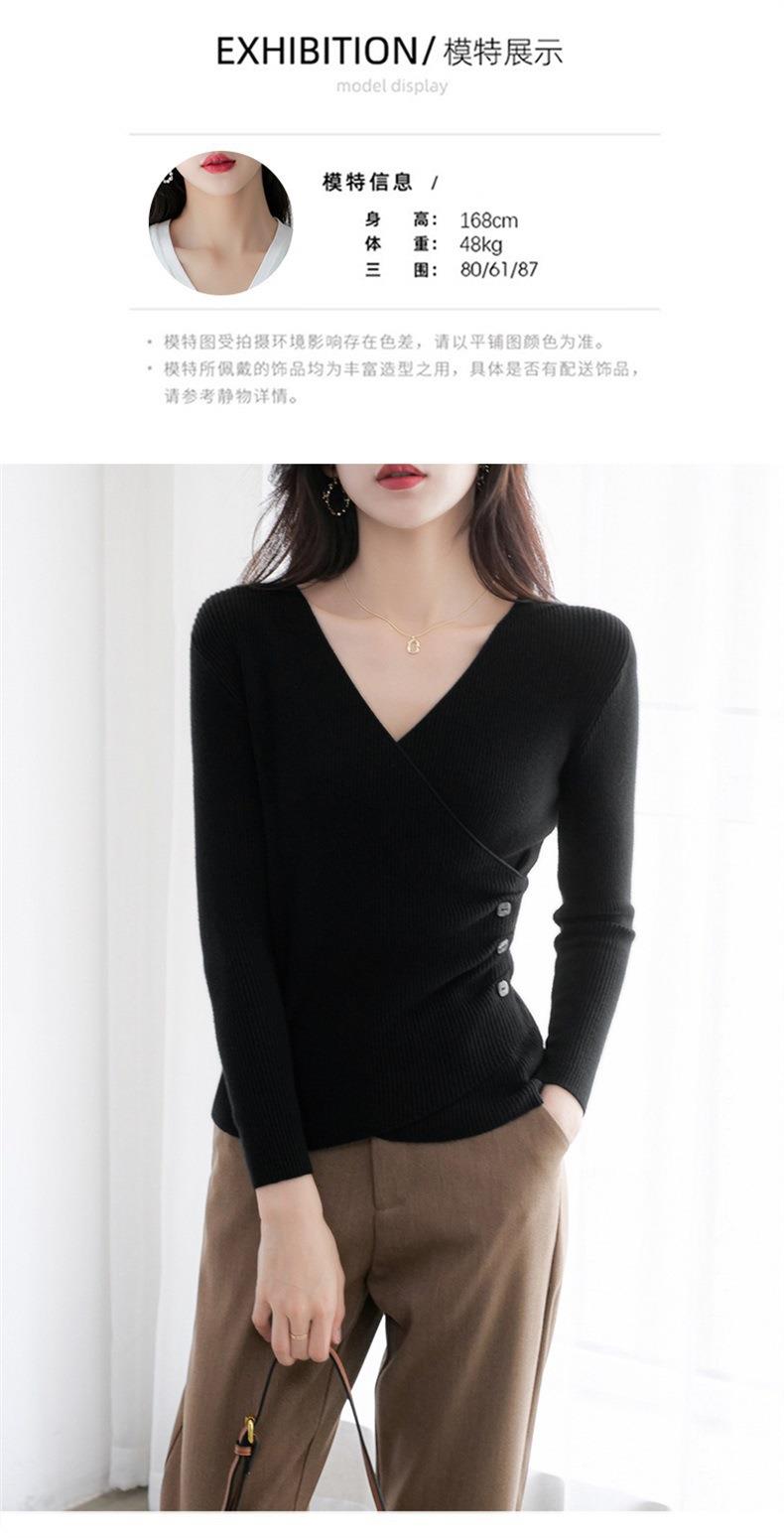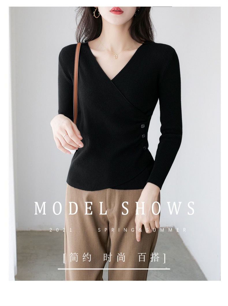 春秋装气质v领薄款毛衣女装内搭针织衫修身套头长袖针织打底衫潮