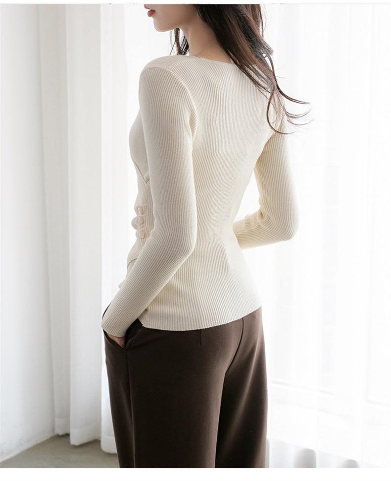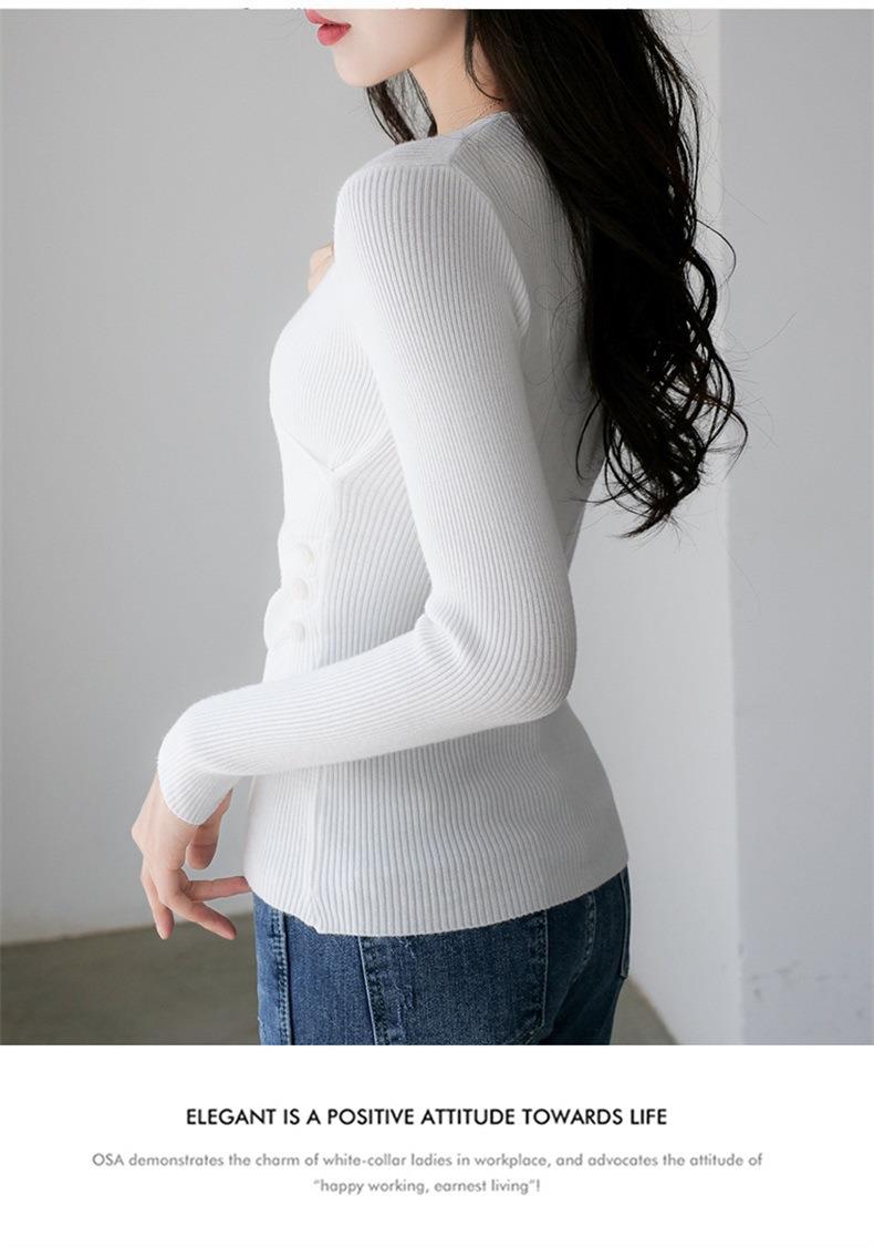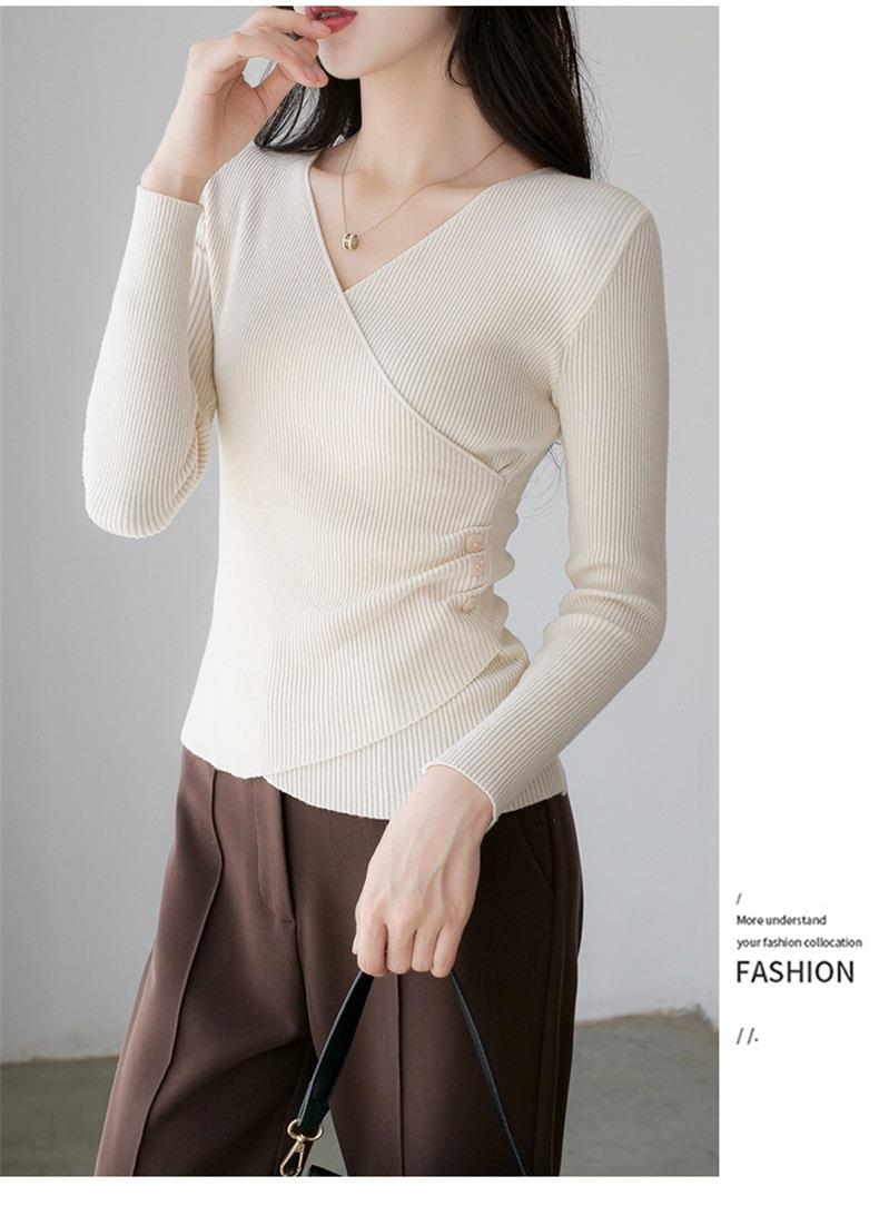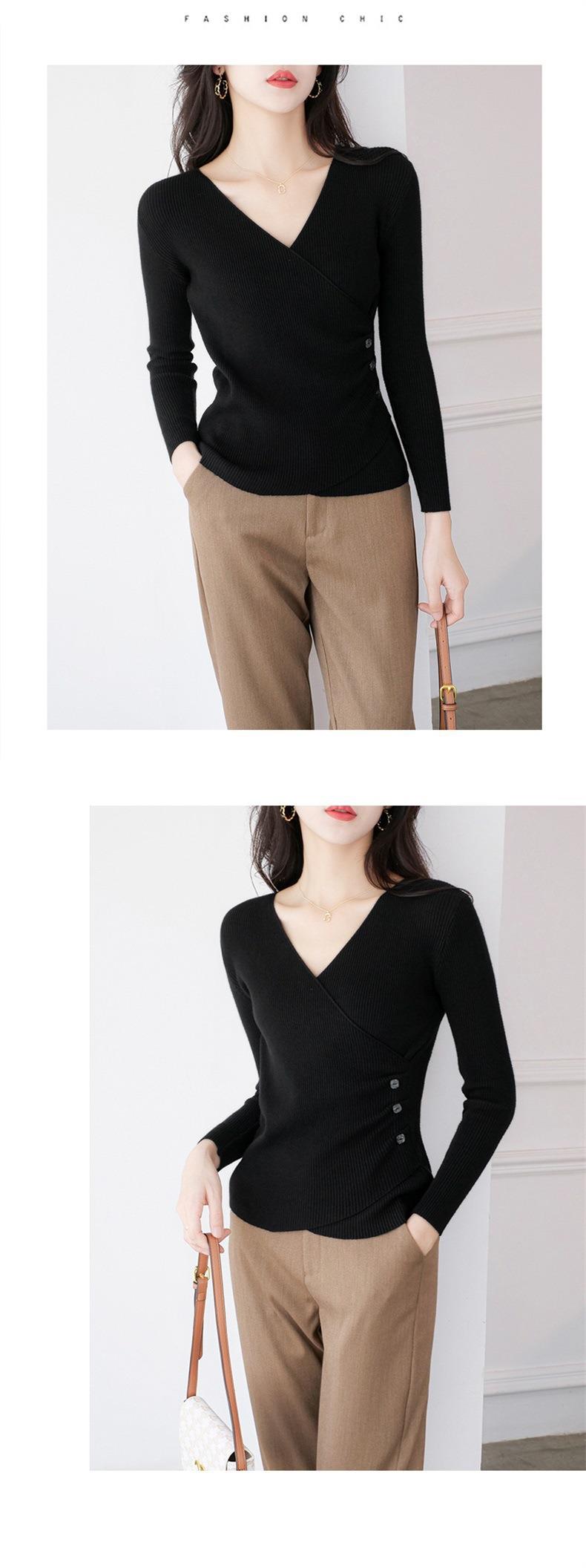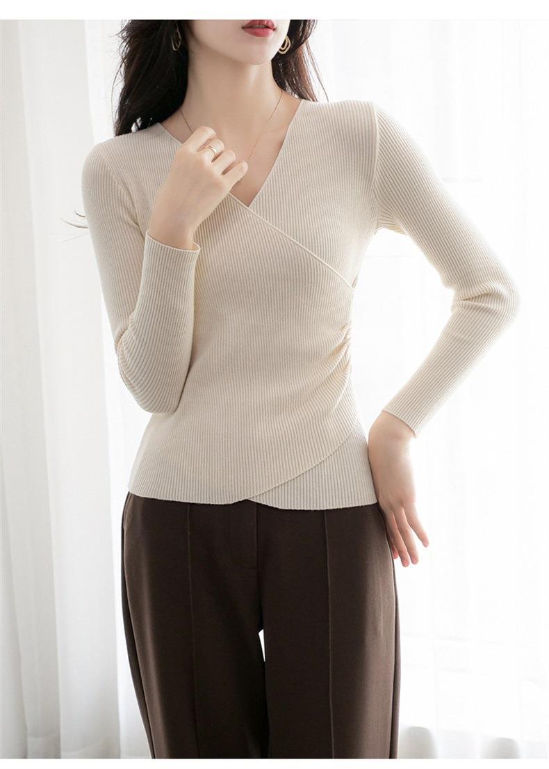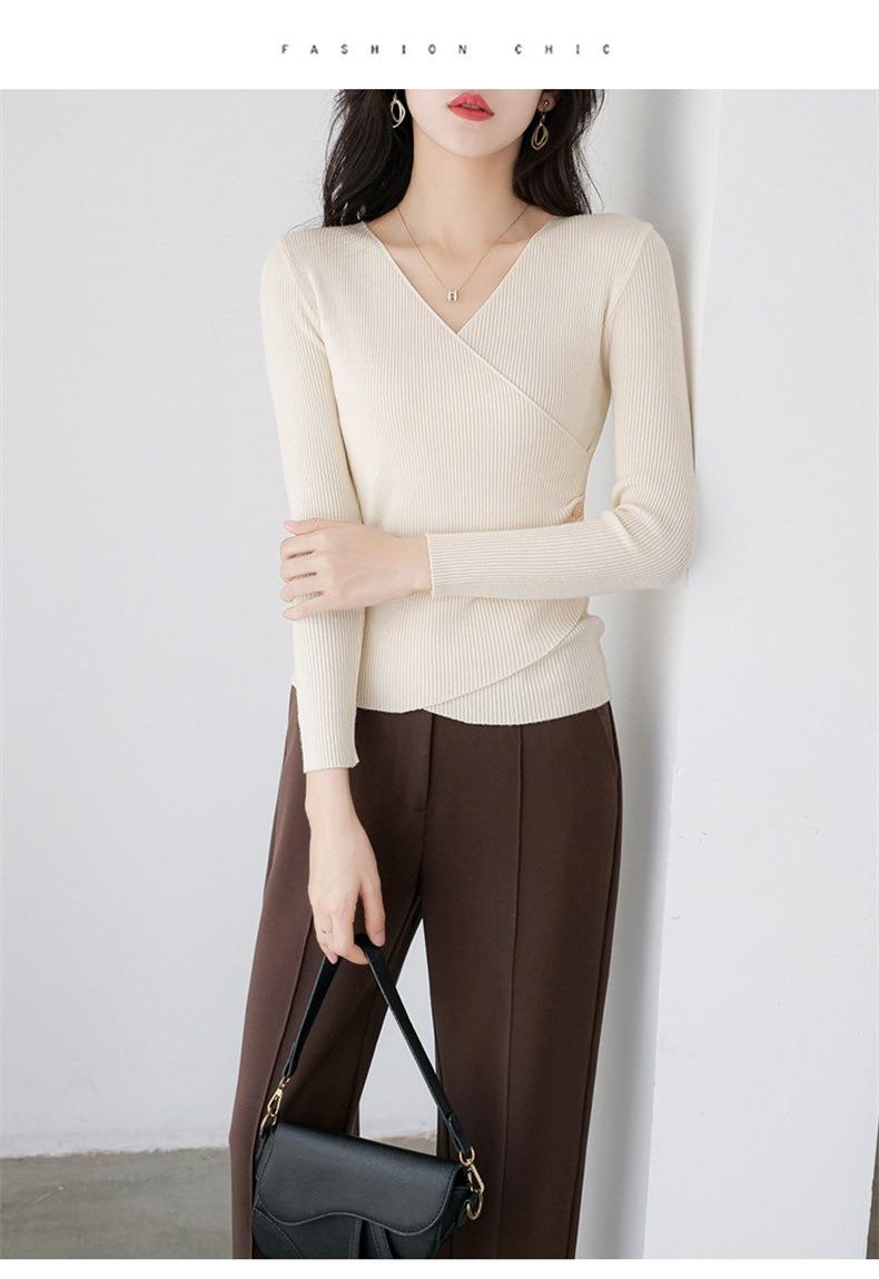 春秋装气质v领薄款毛衣女装内搭针织衫修身套头长袖针织打底衫潮