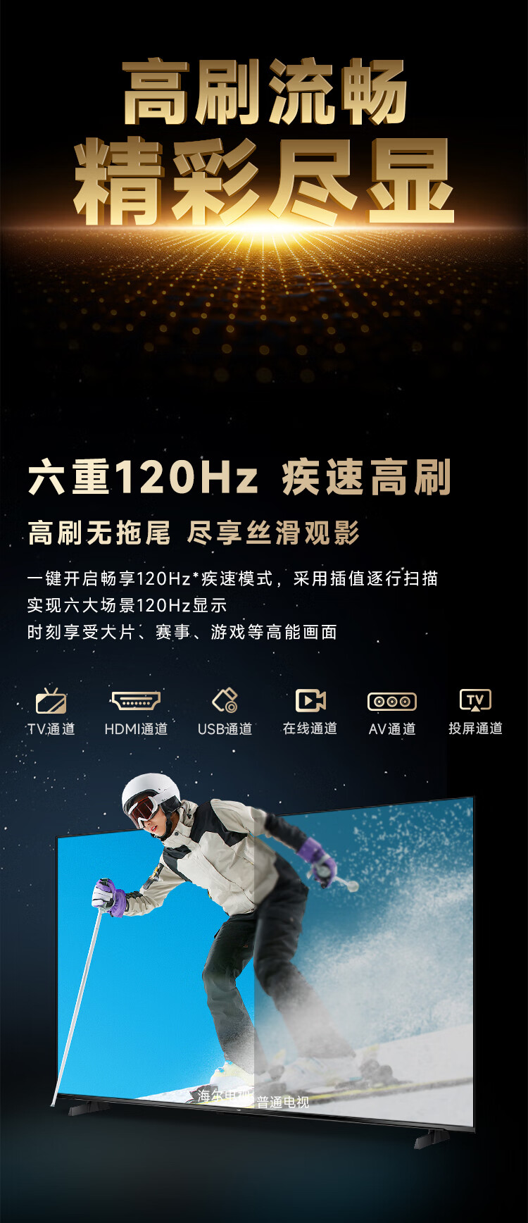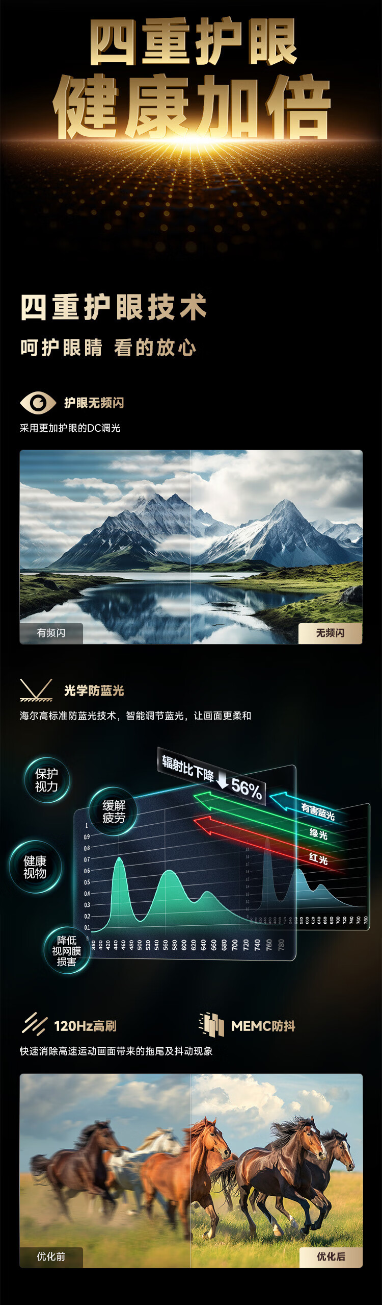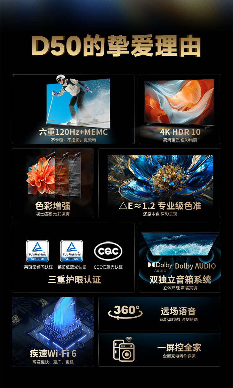 海尔 65英寸 4K超高清 智能电视120Hz高刷 2+32GB大内存 智能液晶 平板电视机 疾速WiFi 6 护眼电视65D50