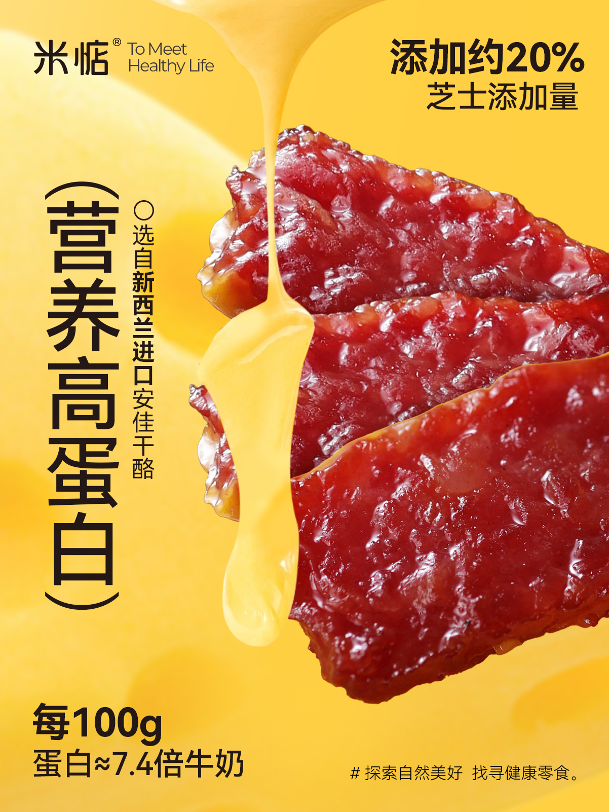 介绍链接丨【米惦炭烧芝士猪肉片】芝士控🧀🧀快看过来!猪肉片新吃法、芝香浓郁、咸甜咸甜的,越嚼越香😋精选新鲜原切肉,拒绝肉糜和淀粉 ✅20%的进口安佳干酪,高蛋白,为健康加分✅配料表超干净!