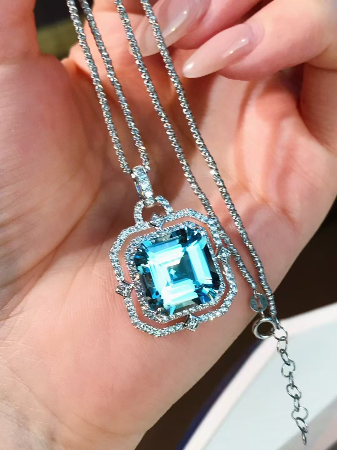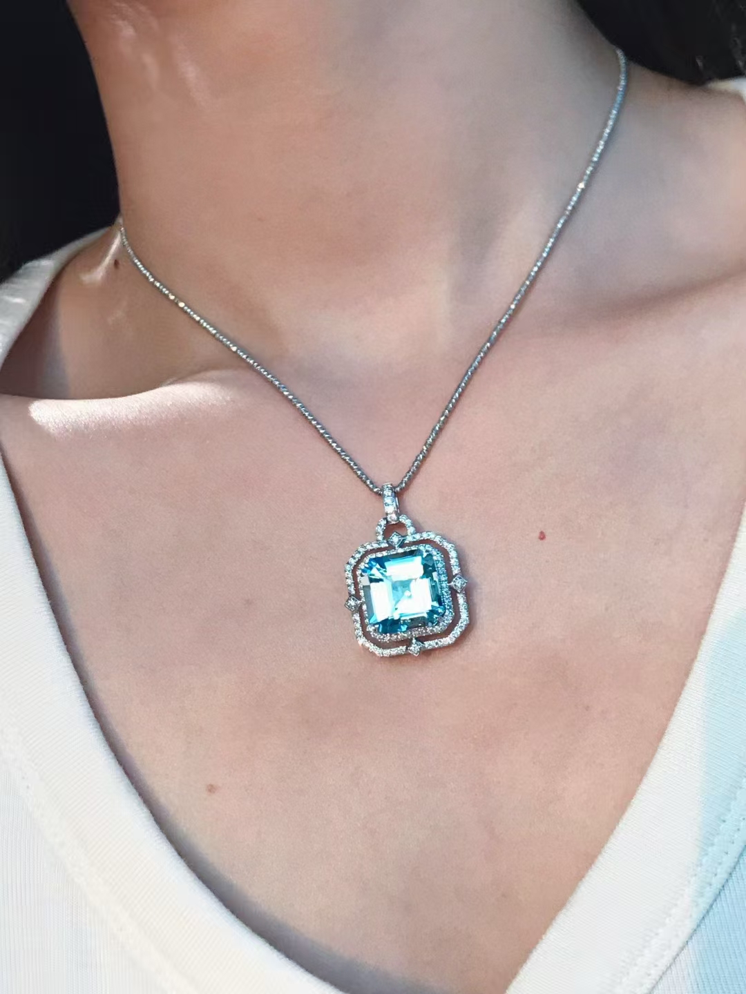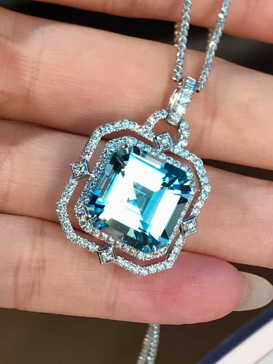 12克拉海蓝宝鸽子蛋吊坠!这个真的绝美!全通透玻璃体,阿斯切形状💎搭配大气的几何设计💎18K金钻石镶嵌