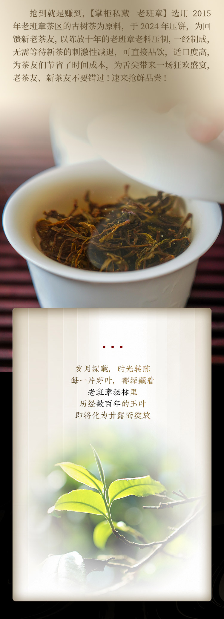 【掌柜私藏老班章】2015年头春勐海普洱茶生茶超大古树‘茶中劳斯莱斯’山头茶的顶峰 357克/饼茶 单饼铁盒装 5饼/提高端礼盒装 拍5发6拍20发25
