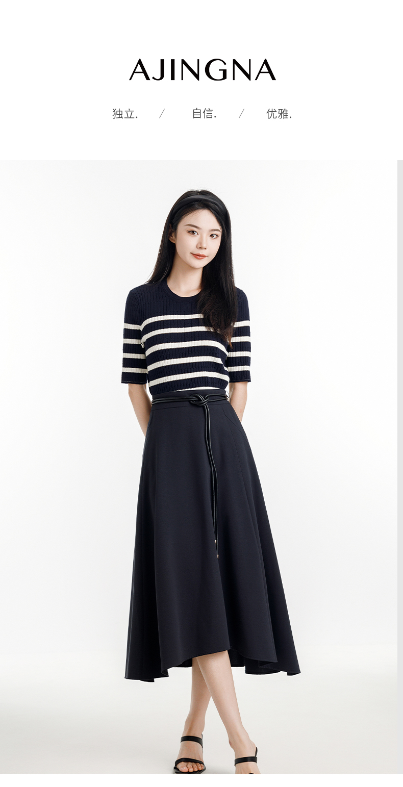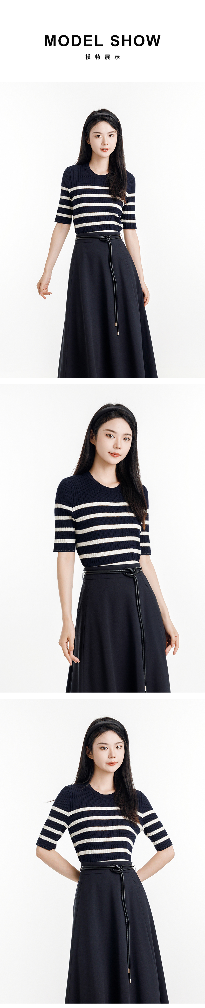 【商场同款】阿菁娜2024秋季新款圆领条纹短袖针织衫A29Q301009
