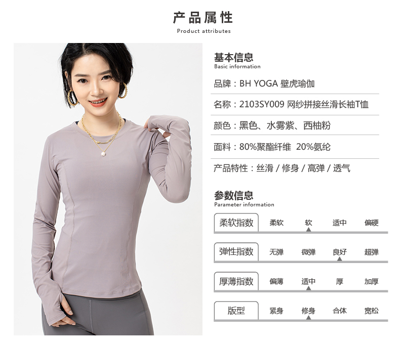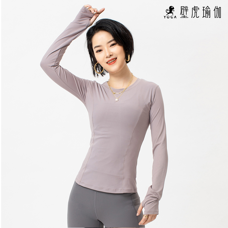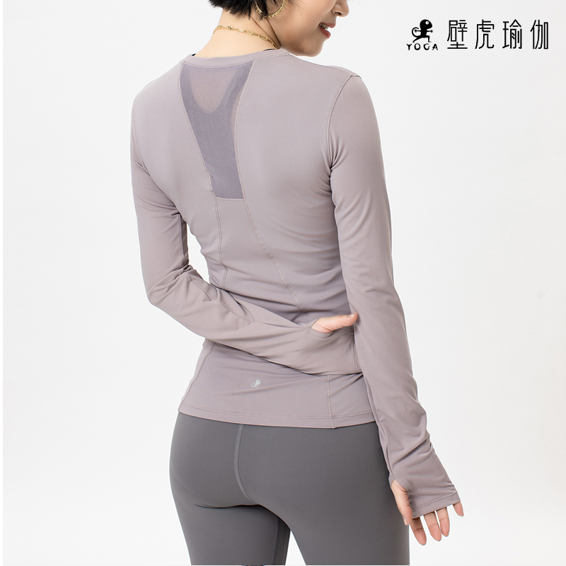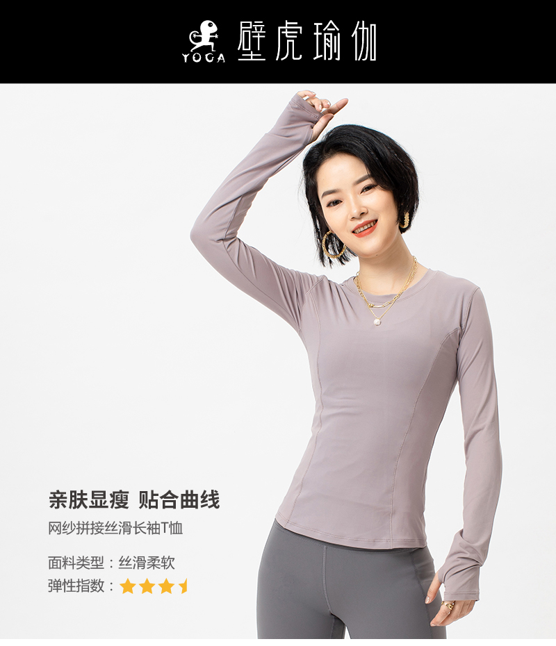 壁虎瑜伽《2103SY009》网纱拼接丝滑长袖T恤(无胸垫)【七十二小时发货】