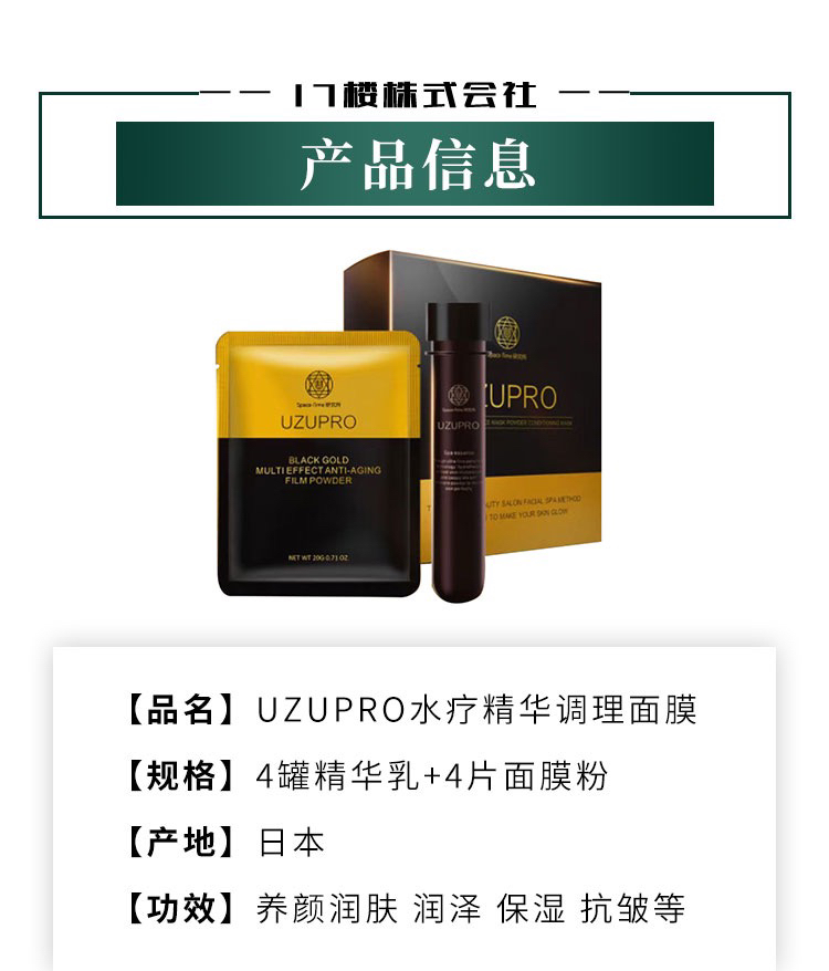 日本 UZU 水疗精华黑金软膜面膜 4组/盒