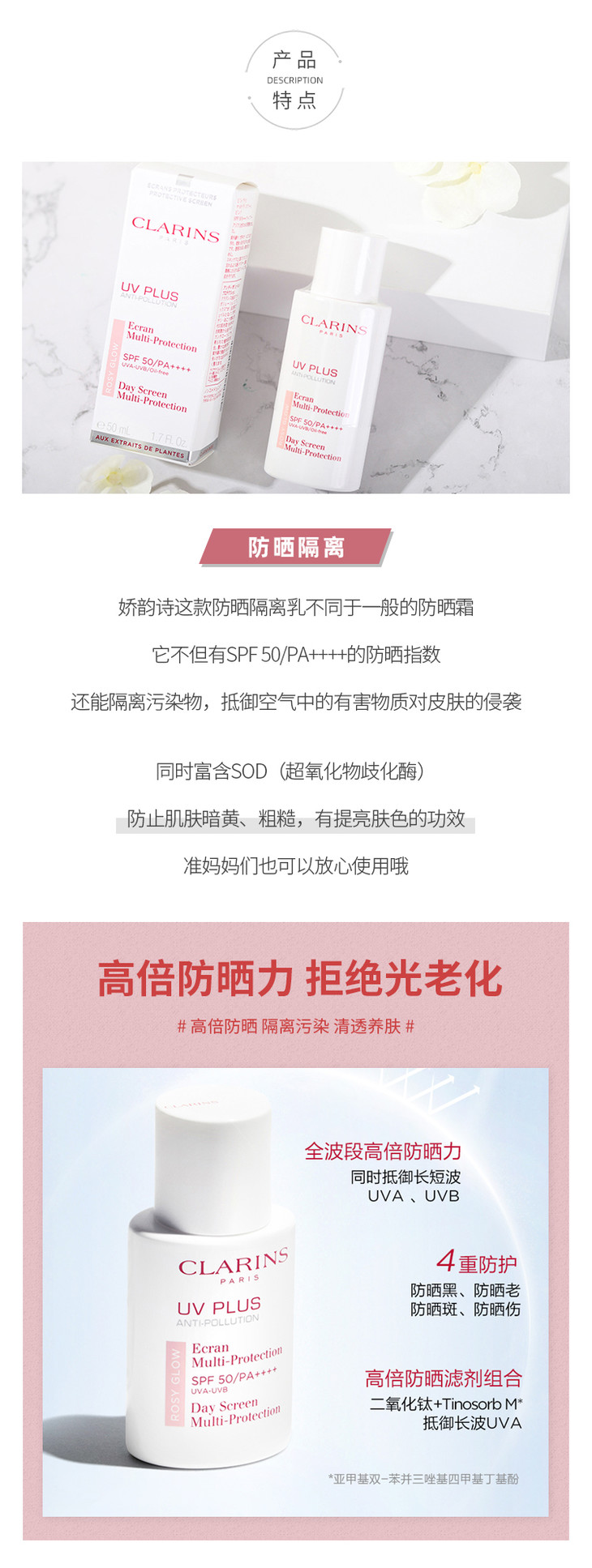 娇韵诗清透美白防晒霜CLARINS/clarins 隔离乳粉色SPF50防晒孕可用 50ml/30ml【CDF】