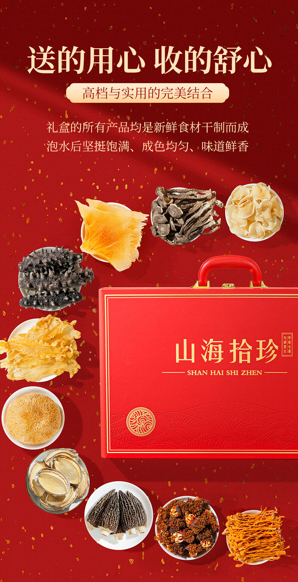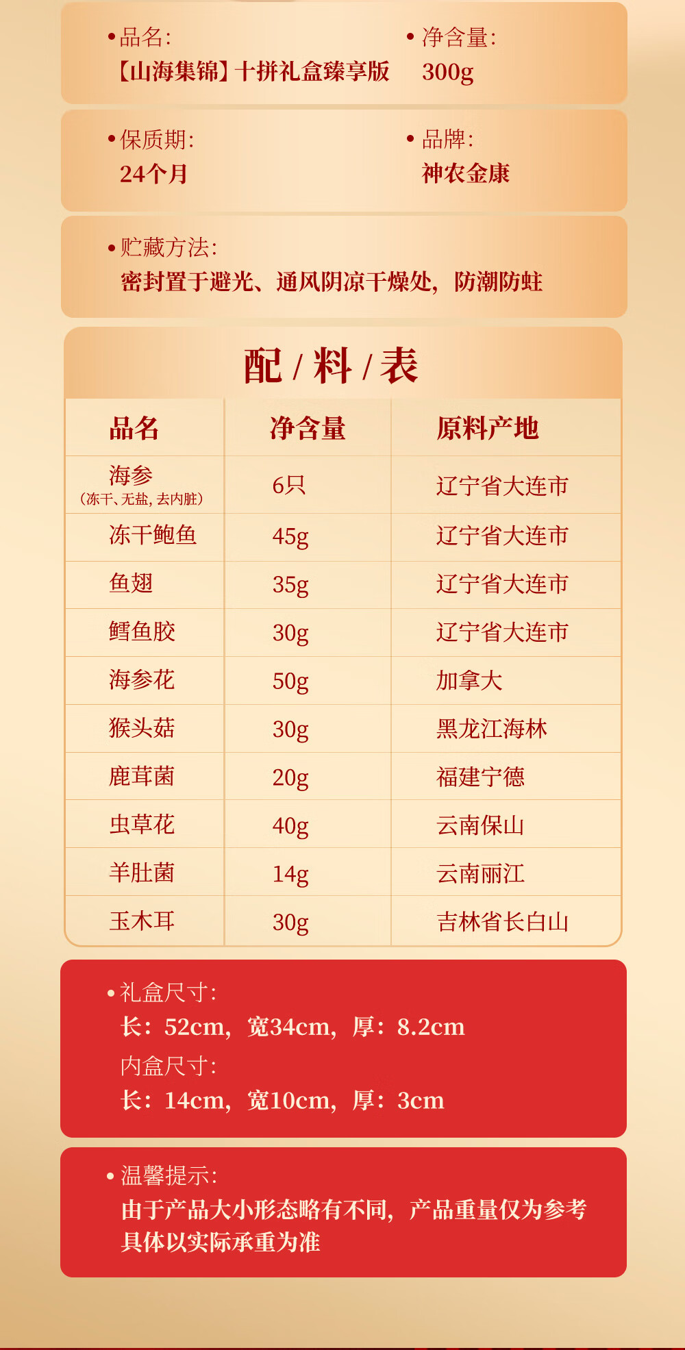 神农金康 山珍海味十拼礼盒【十全食美300克】海参鲍鱼羊肚菌 年货节礼盒礼物送父母长辈
