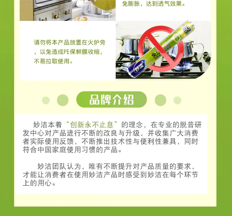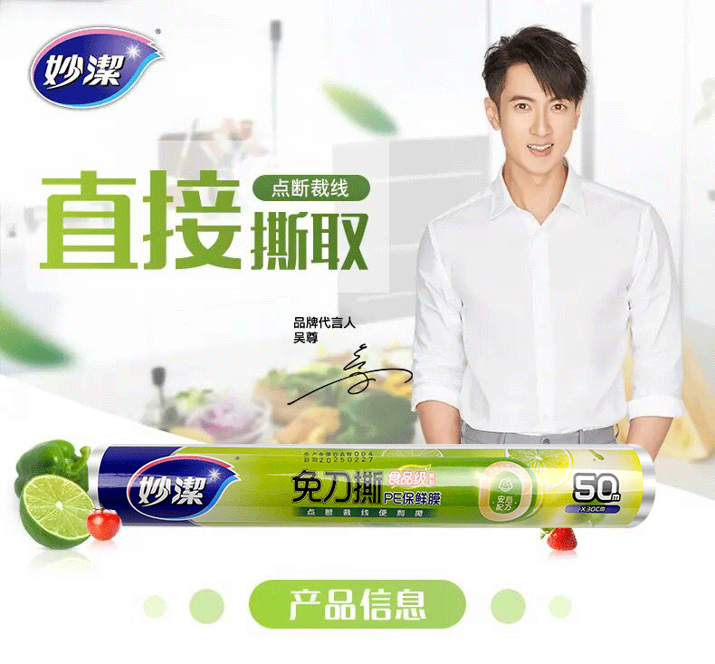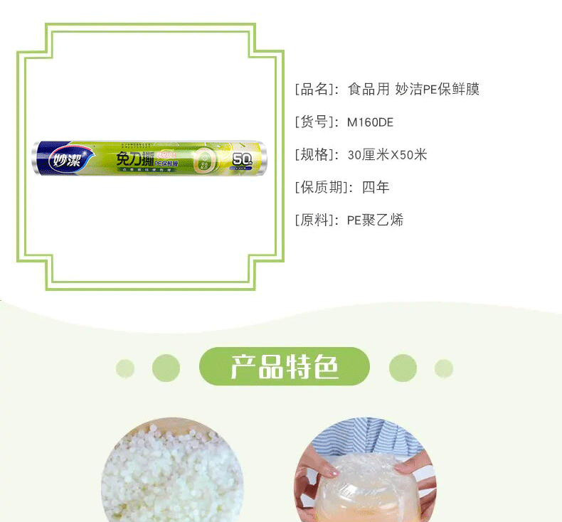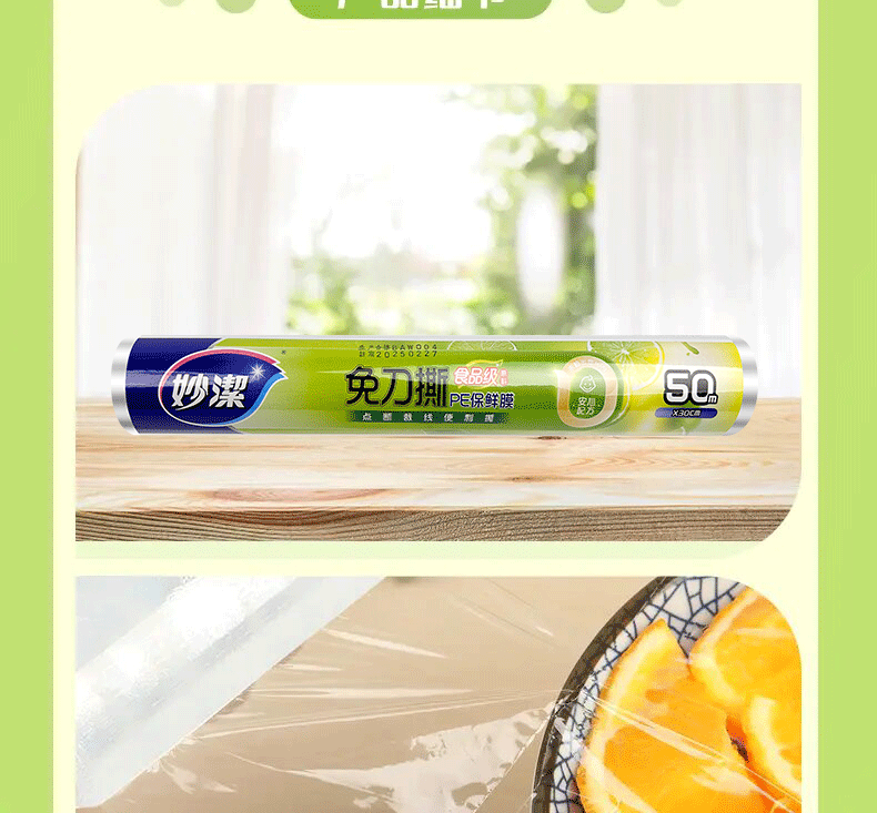 妙洁免刀撕PE保鲜膜50米大碗经济装30cm*50m