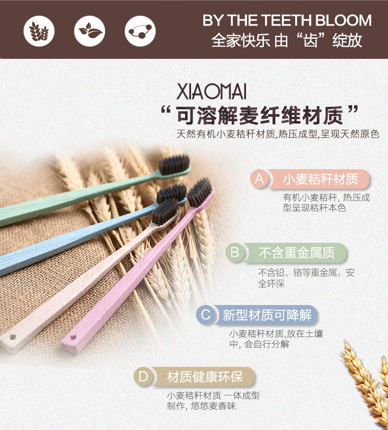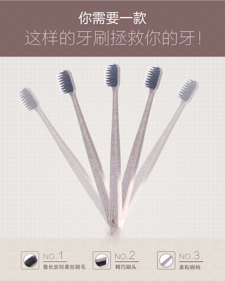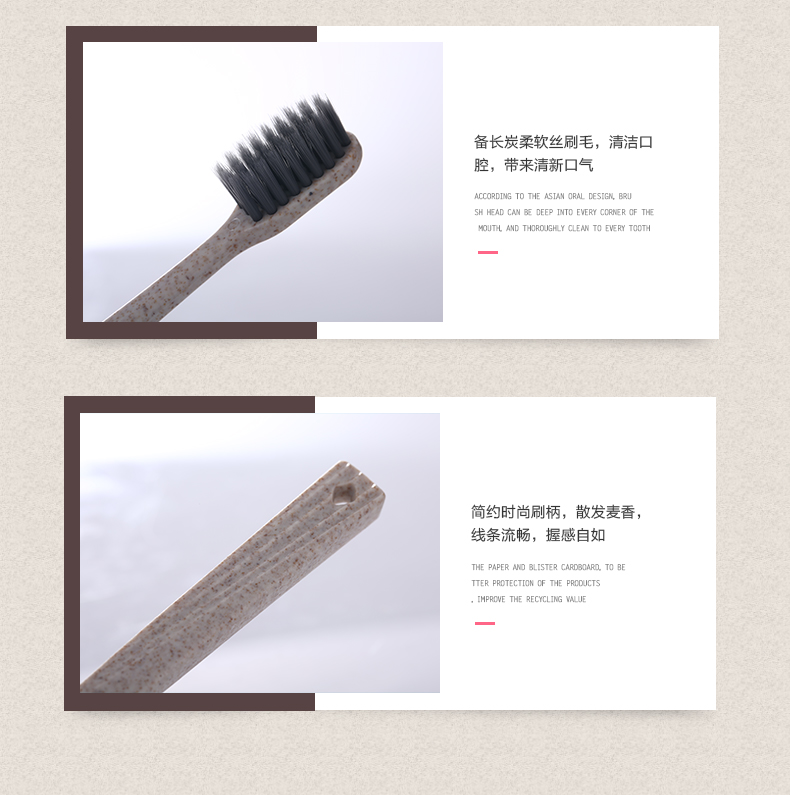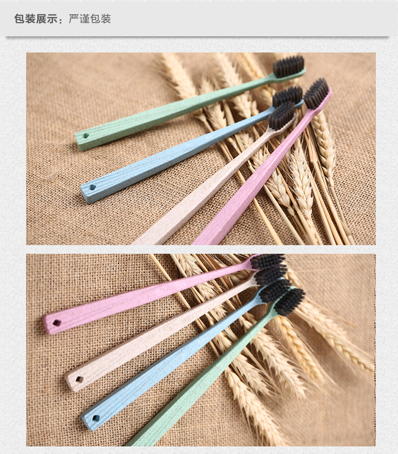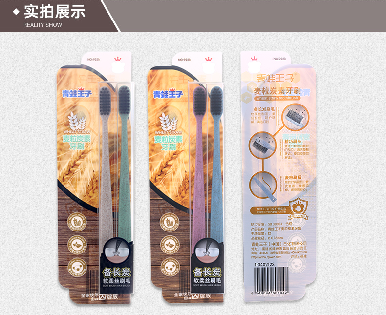 青蛙王子麦粒炭素小头软毛成人家用牙刷小麦秸秆2支装