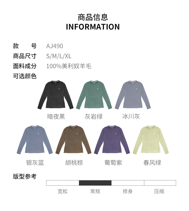 灰壳GP100%美利奴羊毛17.5微米速干长袖(女款)