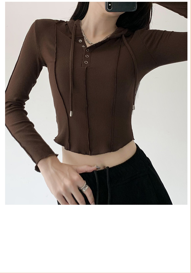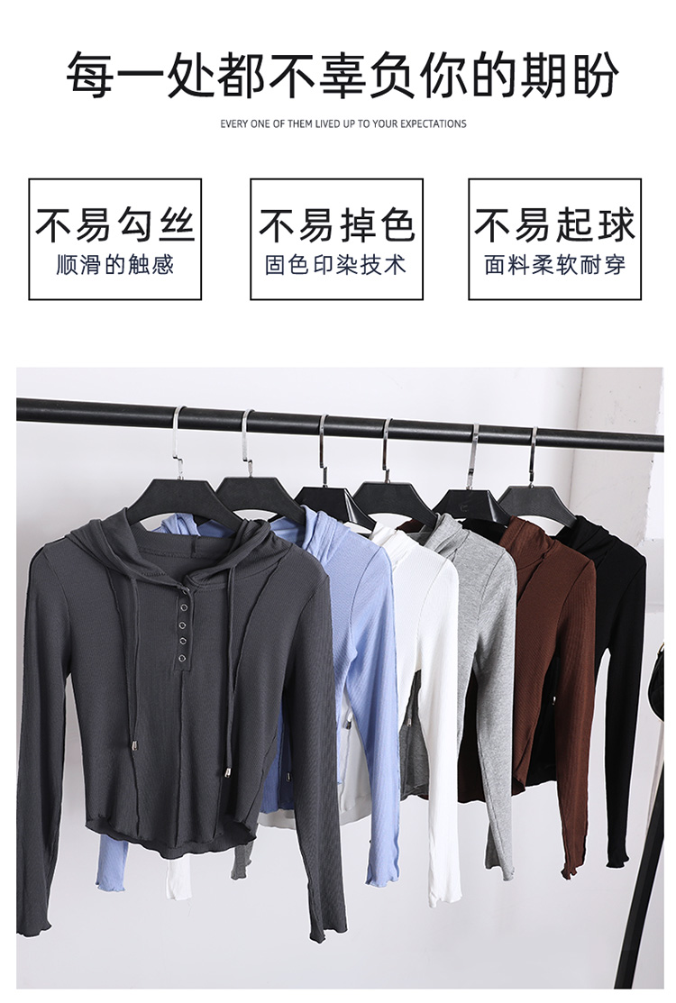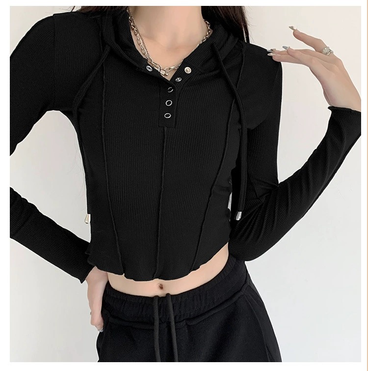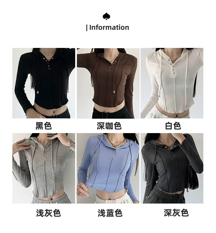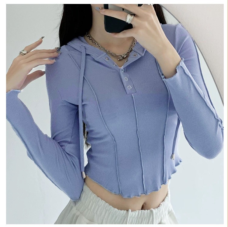 【YW】无忧购韩系ins修身百搭压褶拼缝连帽长袖上衣T011(截单后7天发货)