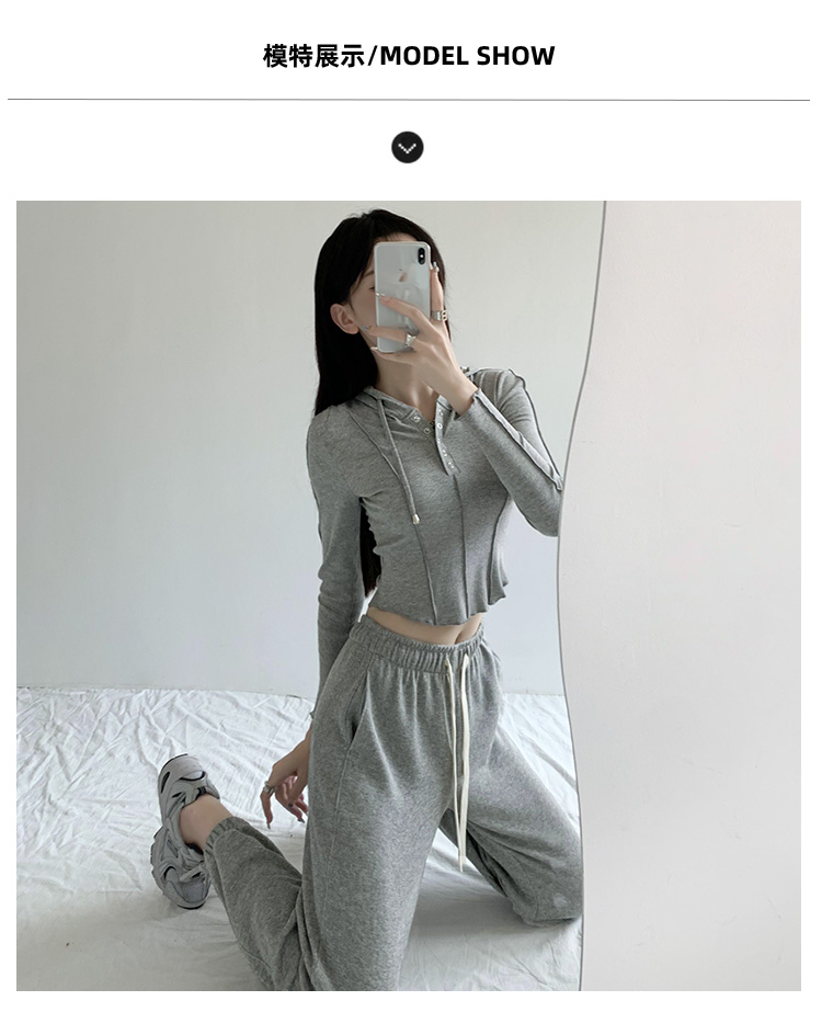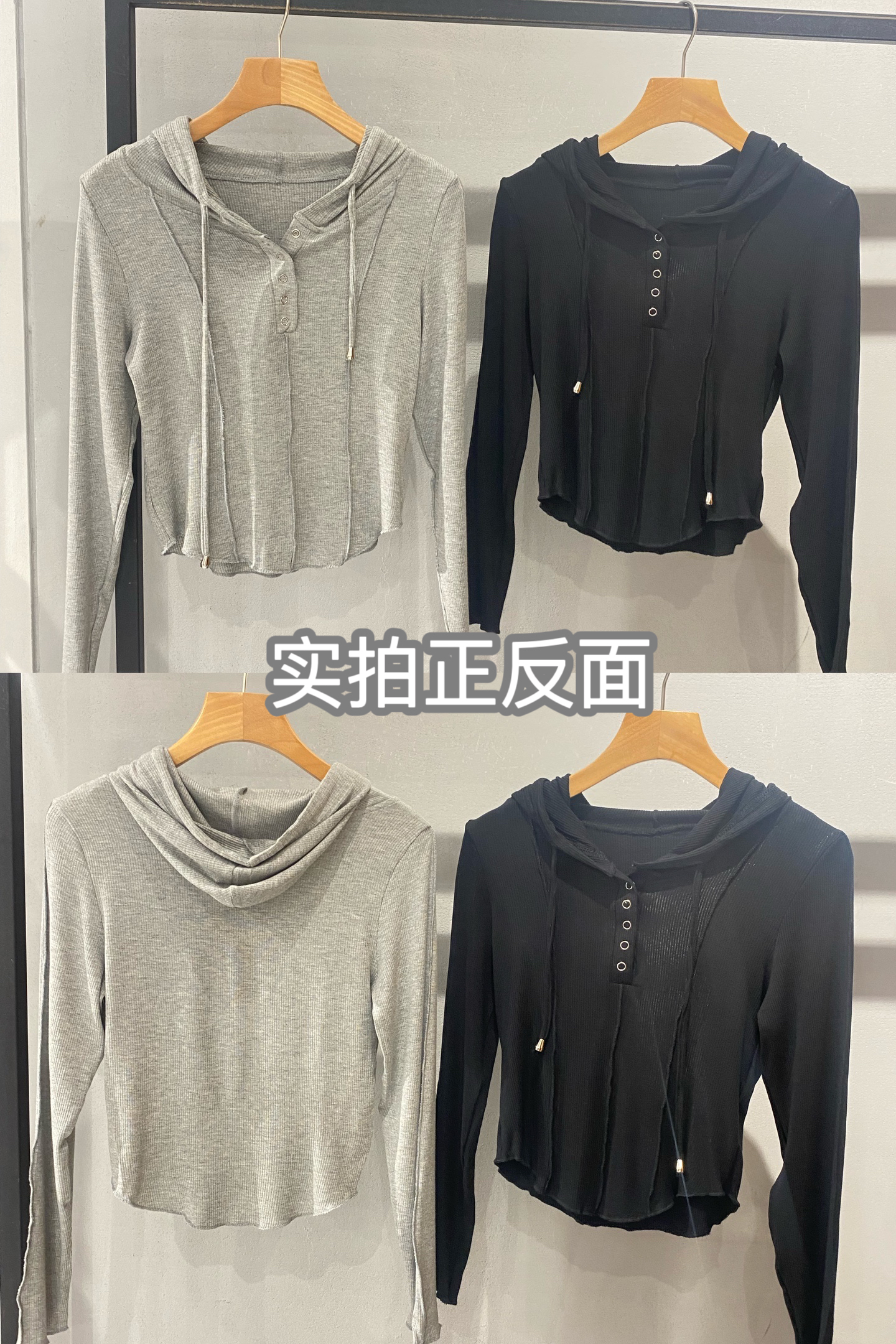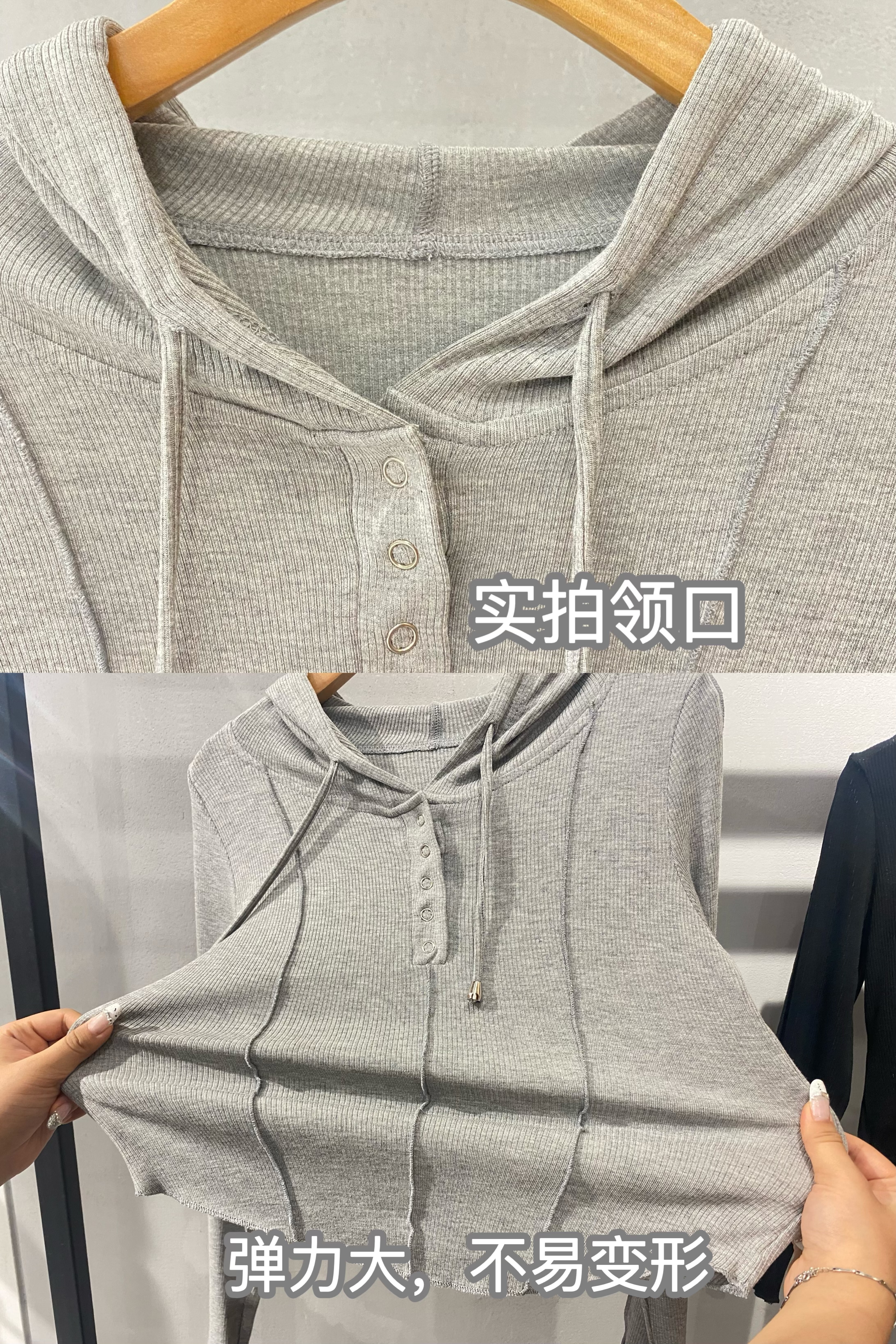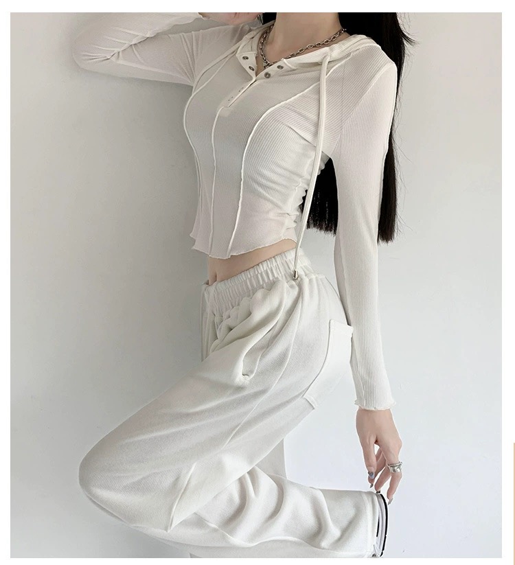 【YW】无忧购韩系ins修身百搭压褶拼缝连帽长袖上衣T011(截单后7天发货)